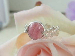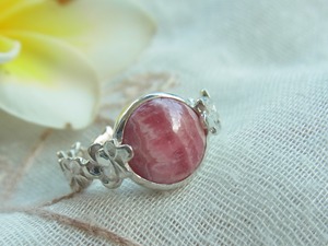 プルメリアとインカローズ リング指輪 花びら 可愛い フリーサイズ Bali シルバー925 天然石アクセサリーG91①