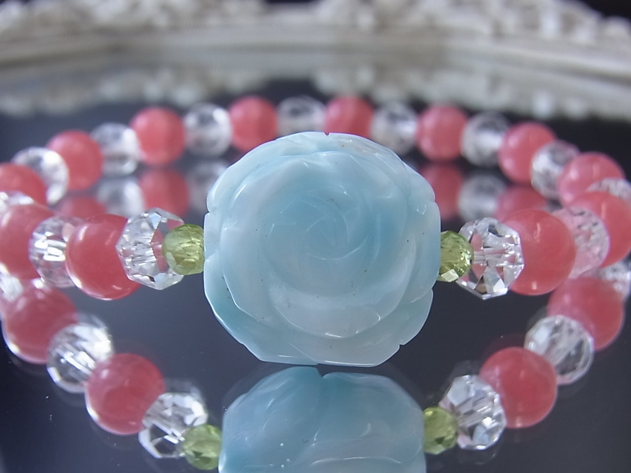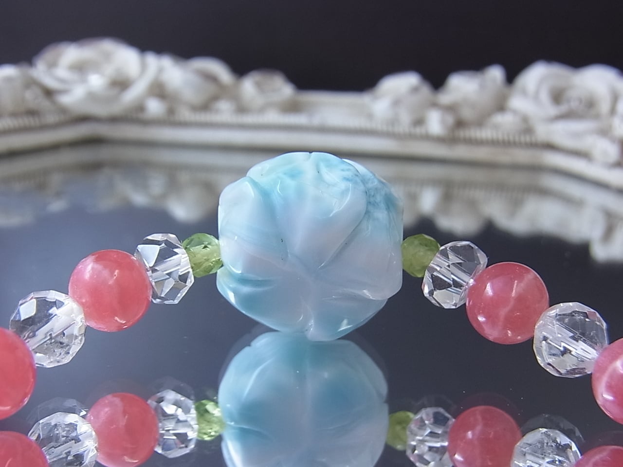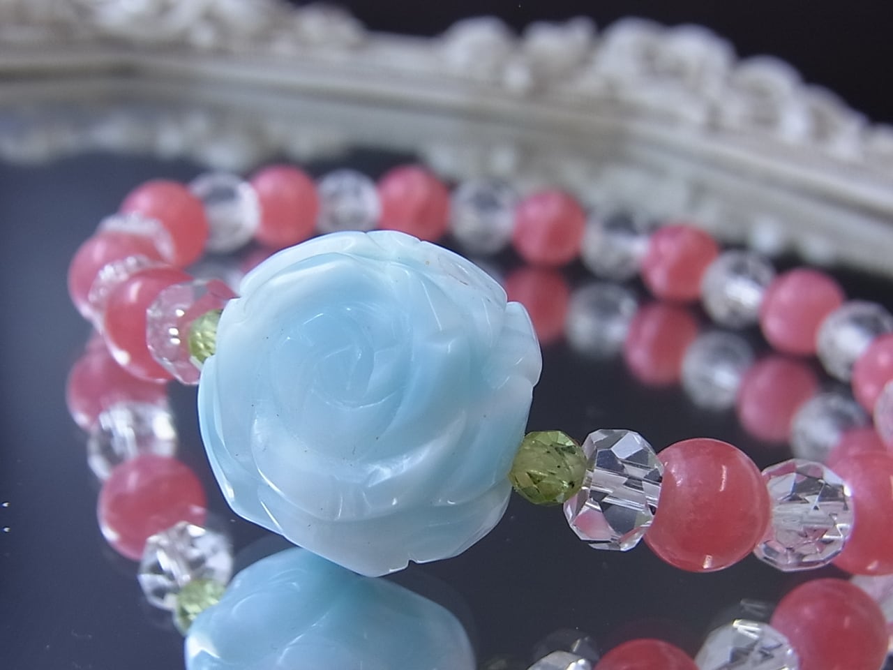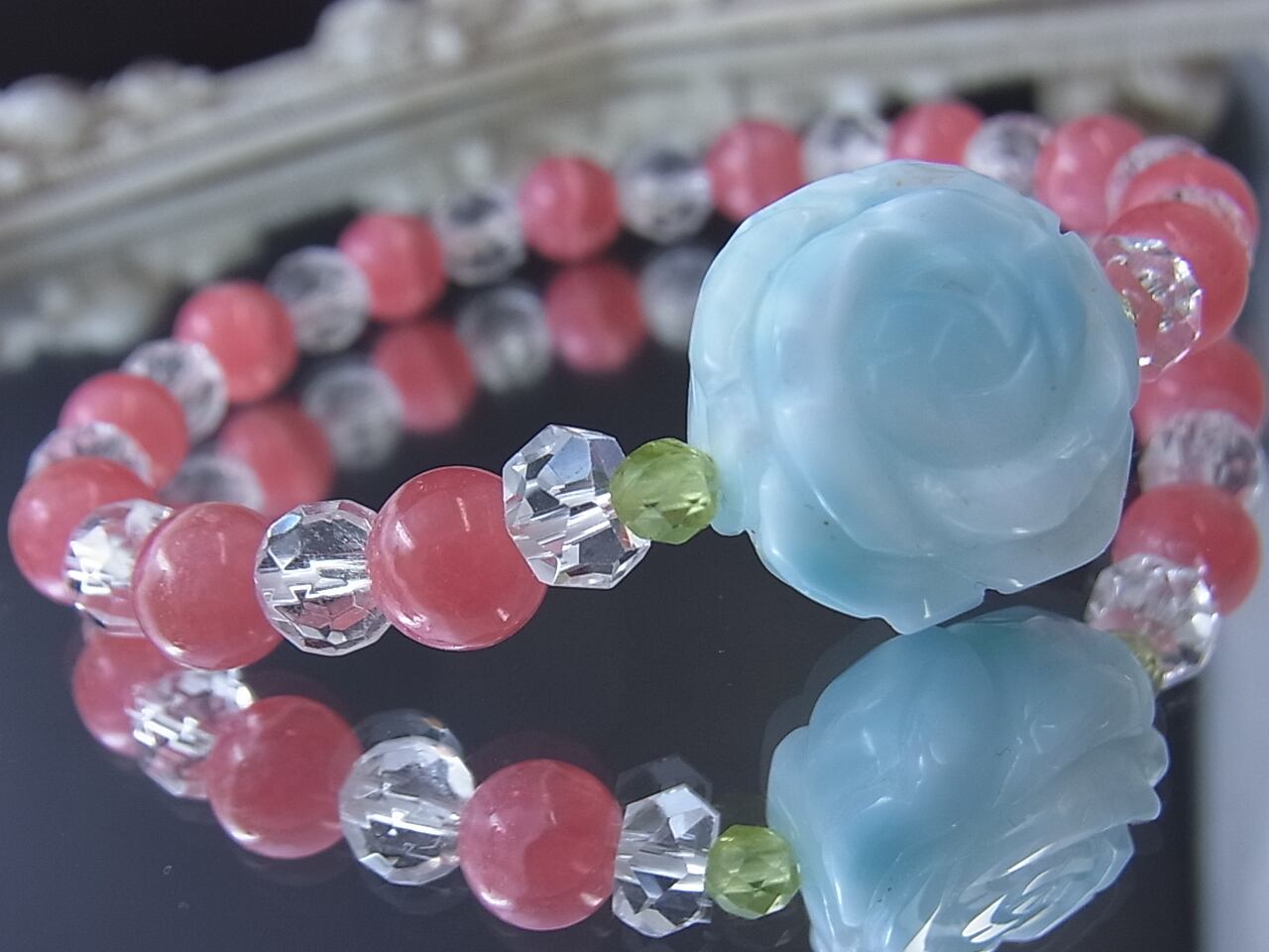 #ラリマー #larimar #薔薇ラリマー #インカローズ #ペリドット #天然水晶 #天然石 #ブレスレット #バラ #薔薇 #お花 #ブーケ #豪華 #高品質 #一点もの #ご褒美 #パワー・ストーン #ブルー #波 #海 #大人美しい #大人可愛い #パーティー #フォーマル #希少 #愛と平和 #心の安らぎ #癒し #リラックス #ギフト #プレゼント #LarimarMJ #ねこの夢