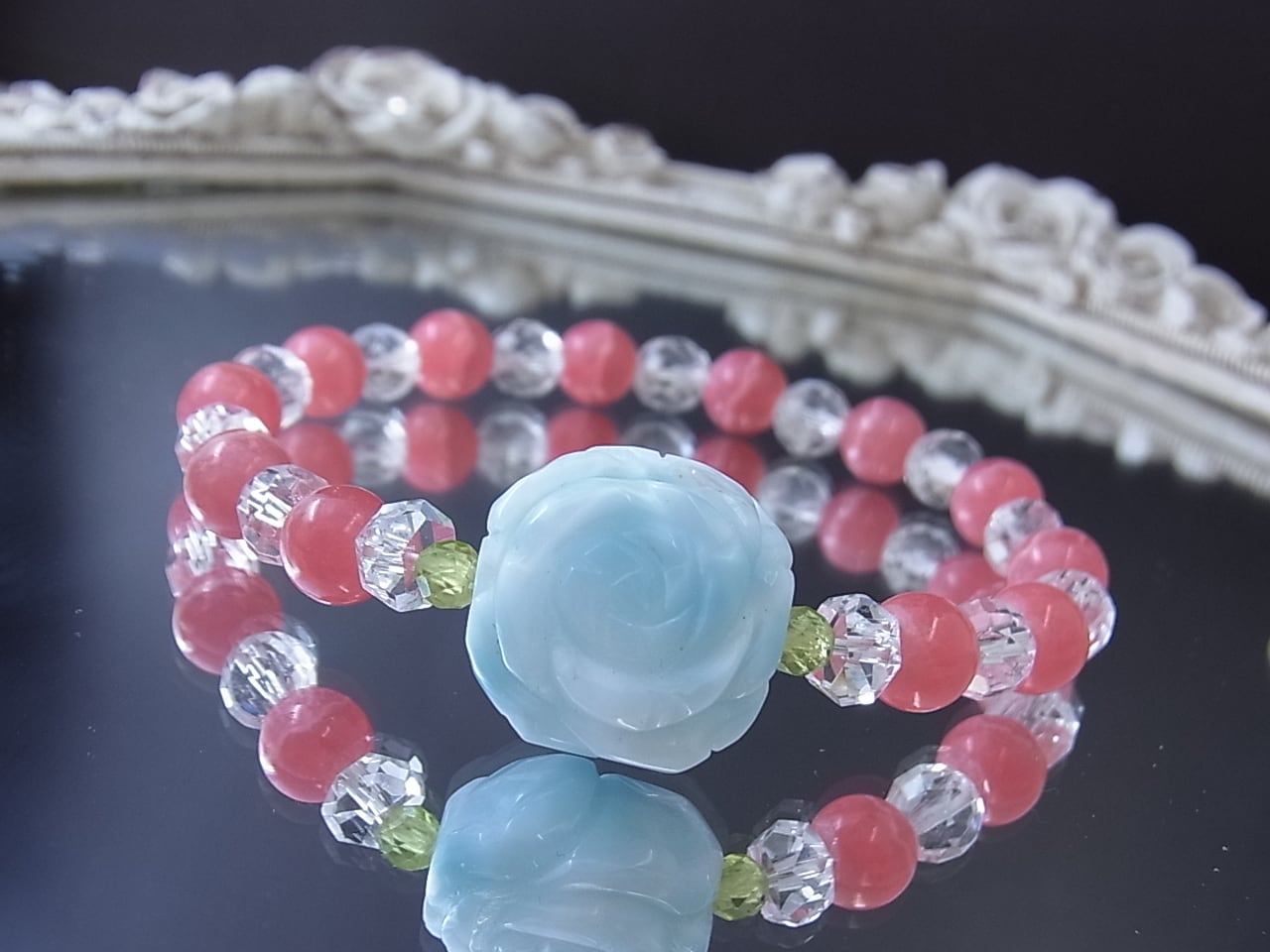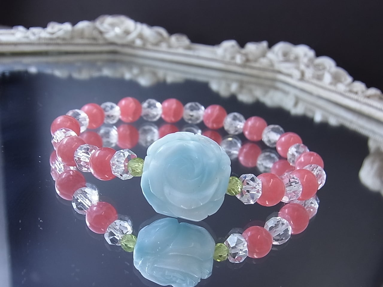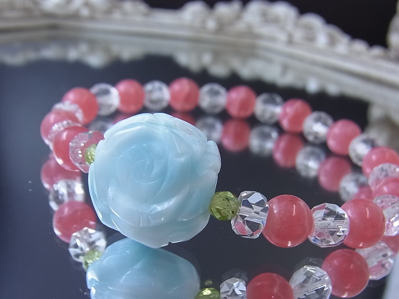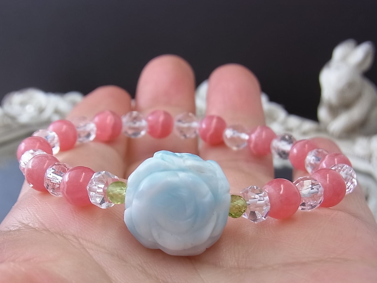 #ラリマー #larimar #薔薇ラリマー #インカローズ #ペリドット #天然水晶 #天然石 #ブレスレット #バラ #薔薇 #お花 #ブーケ #豪華 #高品質 #一点もの #ご褒美 #パワー・ストーン #ブルー #波 #海 #大人美しい #大人可愛い #パーティー #フォーマル #希少 #愛と平和 #心の安らぎ #癒し #リラックス #ギフト #プレゼント #LarimarMJ #ねこの夢
