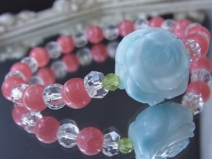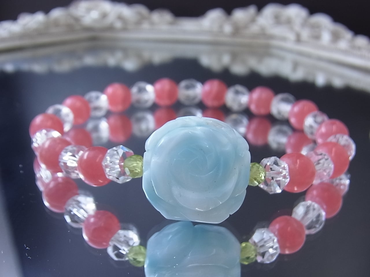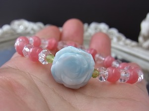 『 大粒 薔薇ラリマー/美しい 花モチーフのブレスレット』