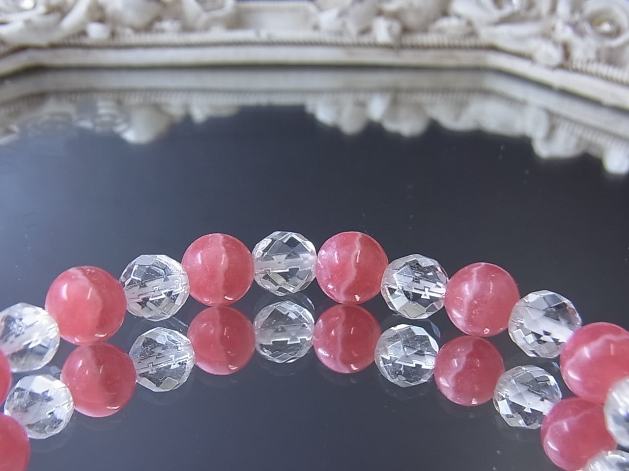 周りは華やかなインカローズと天然水晶を組み合わせてみました。
