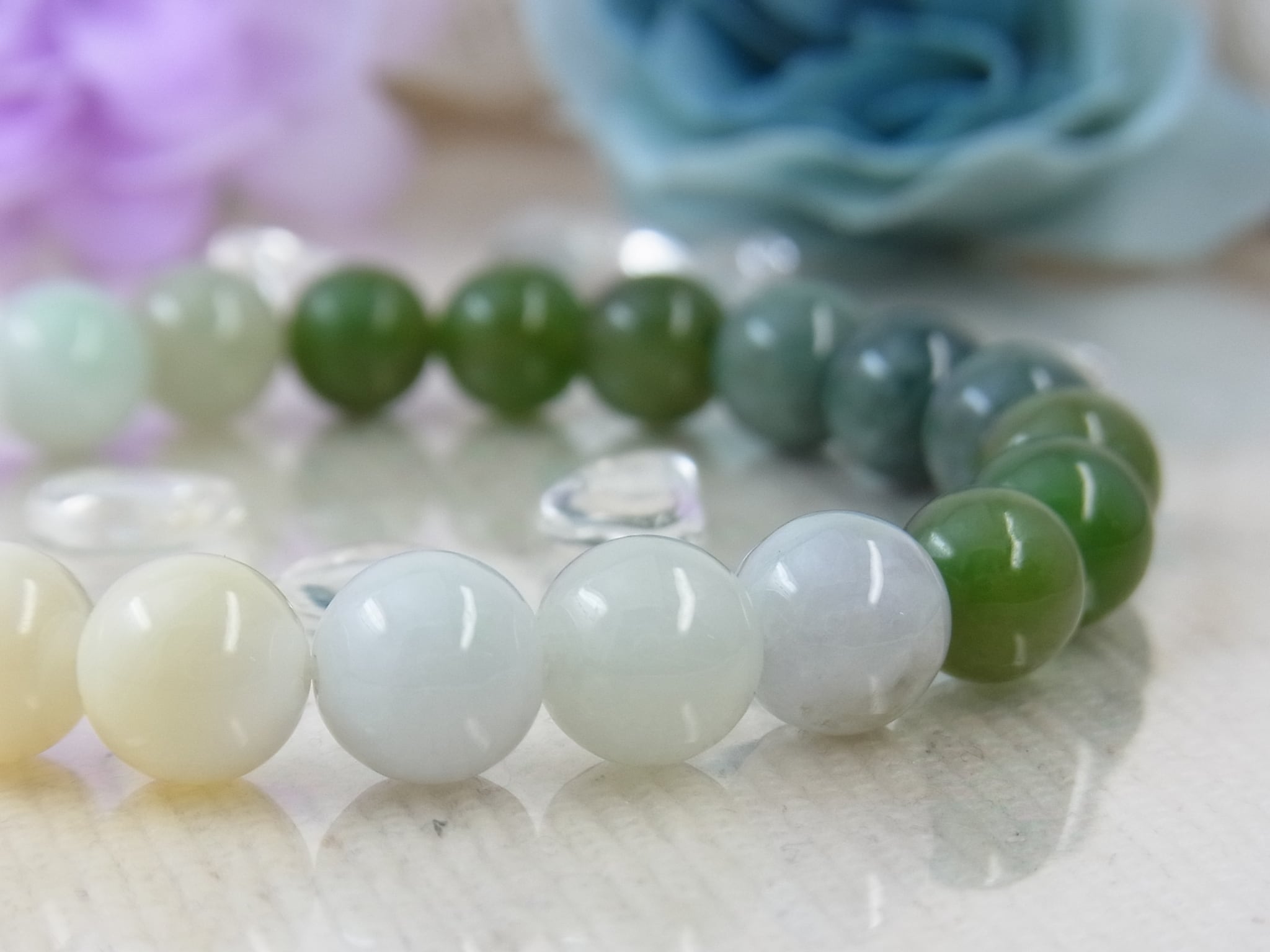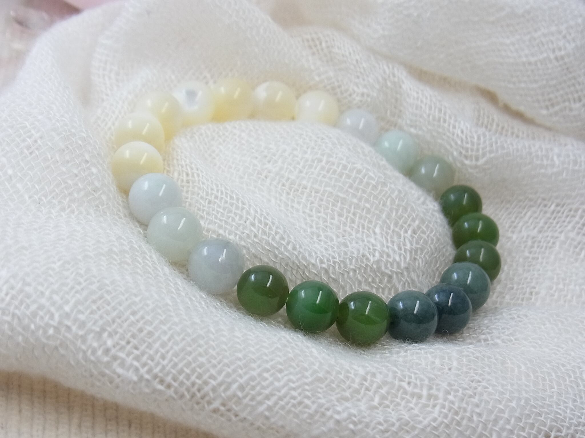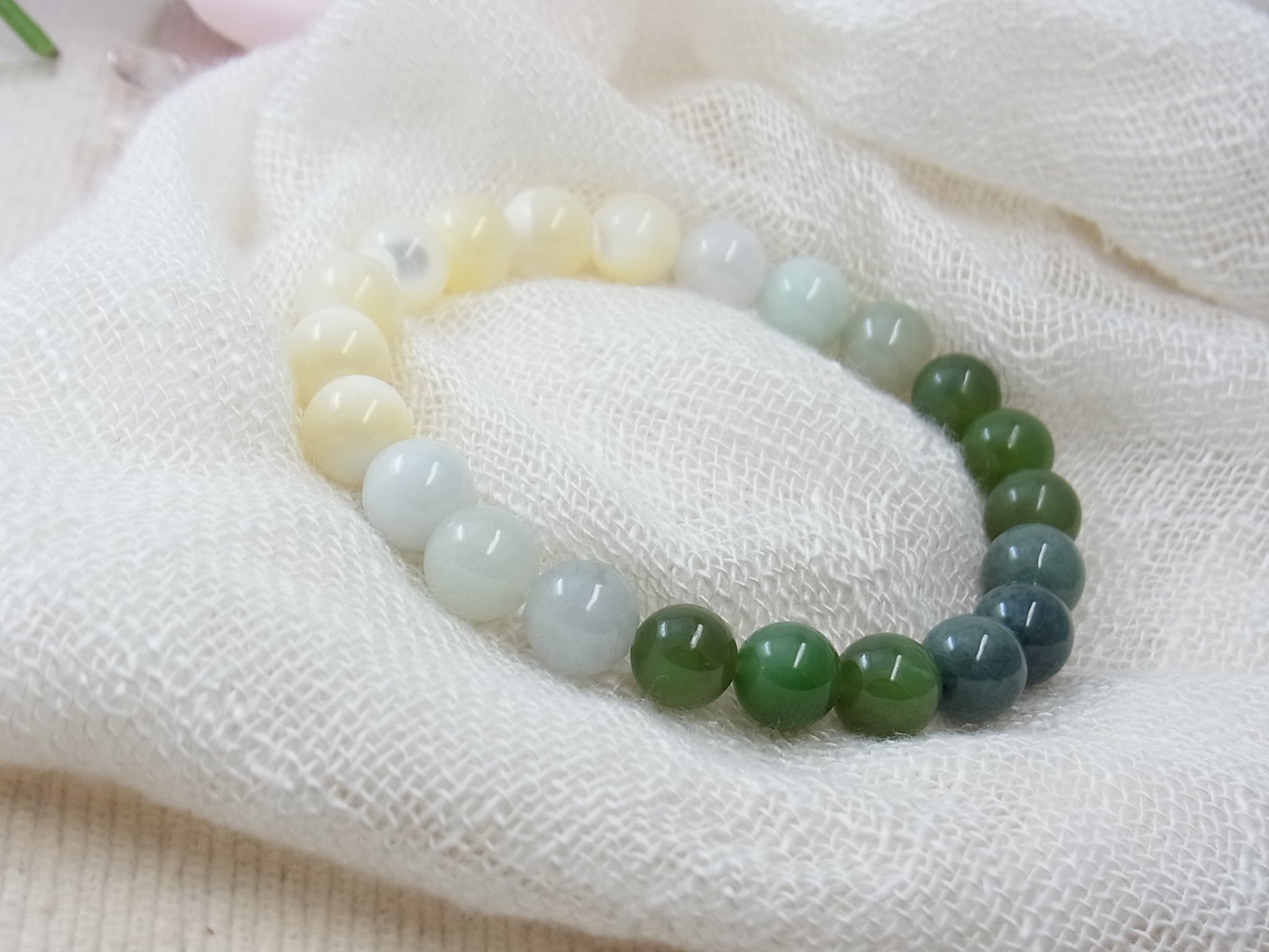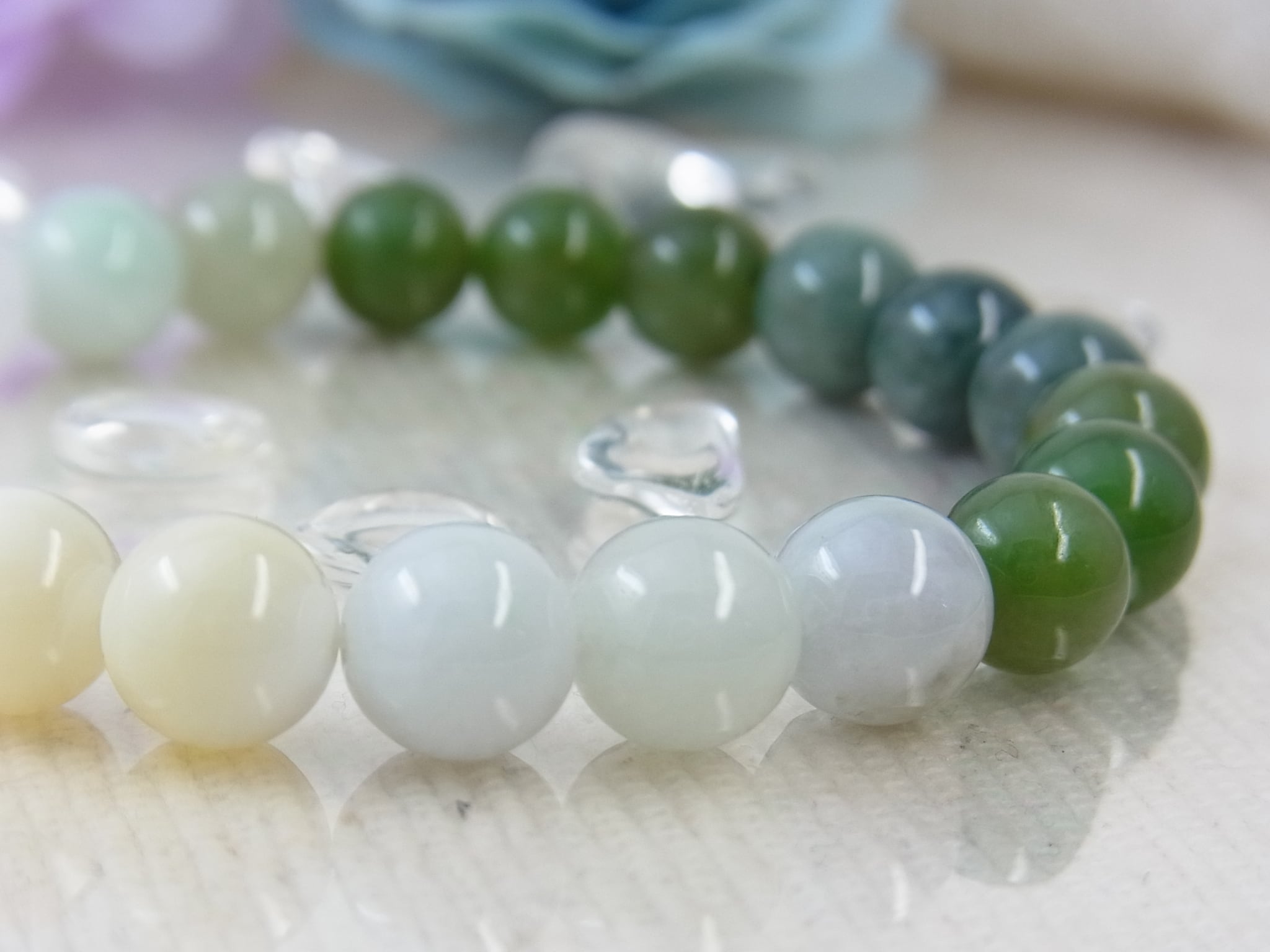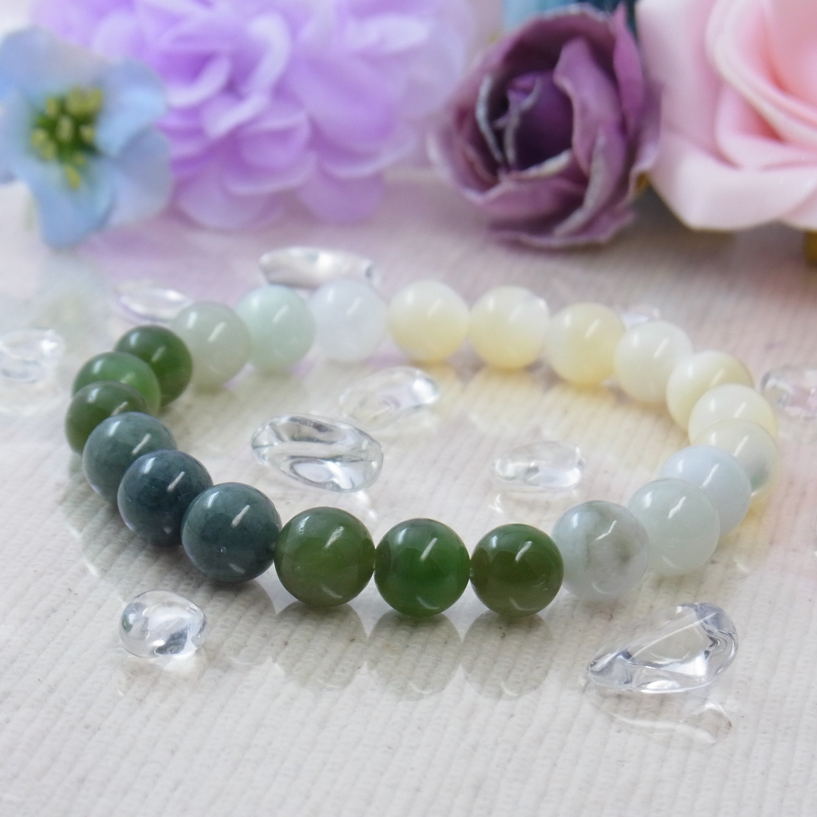 ◆数種類の翡翠(ひすい)と、マザーオブパールで