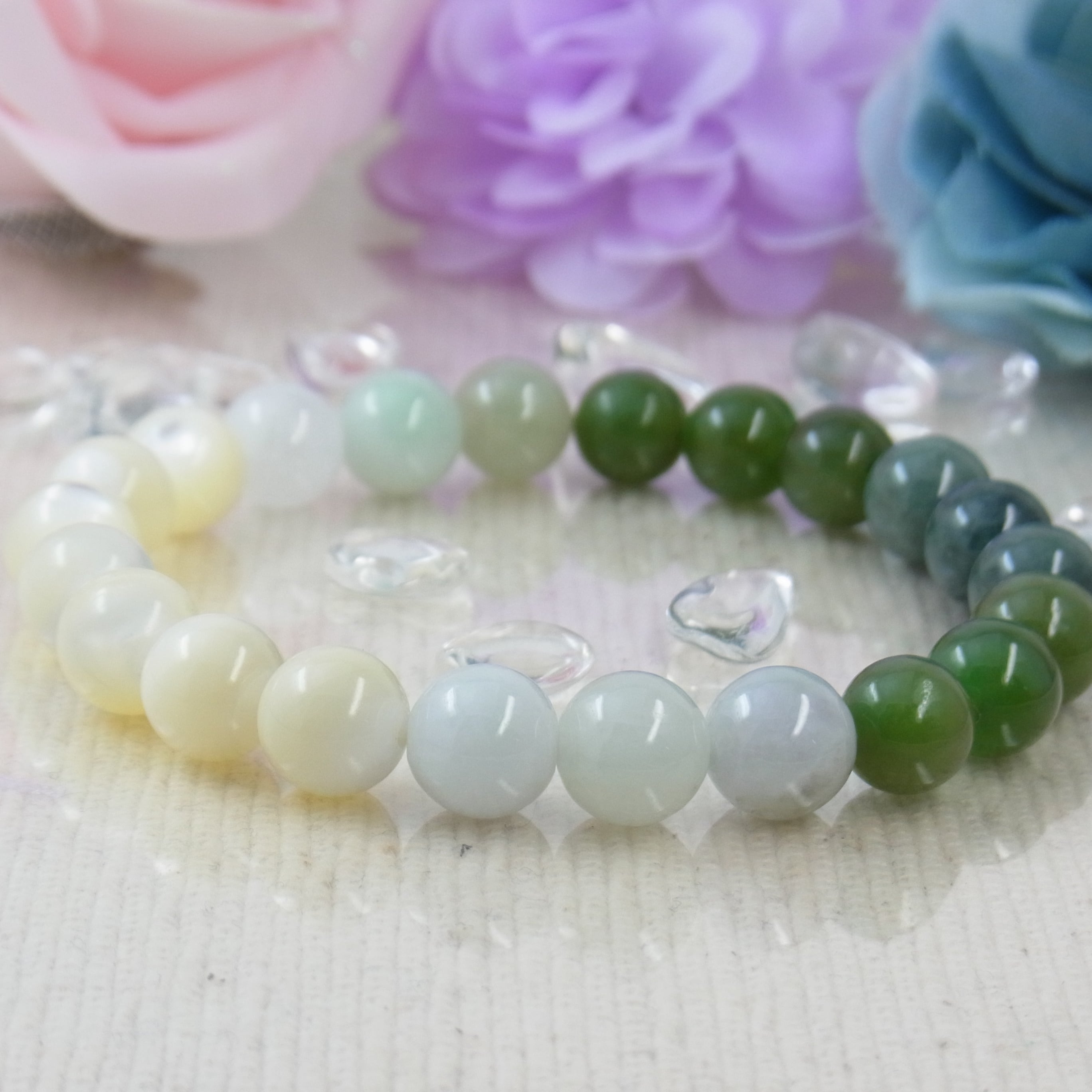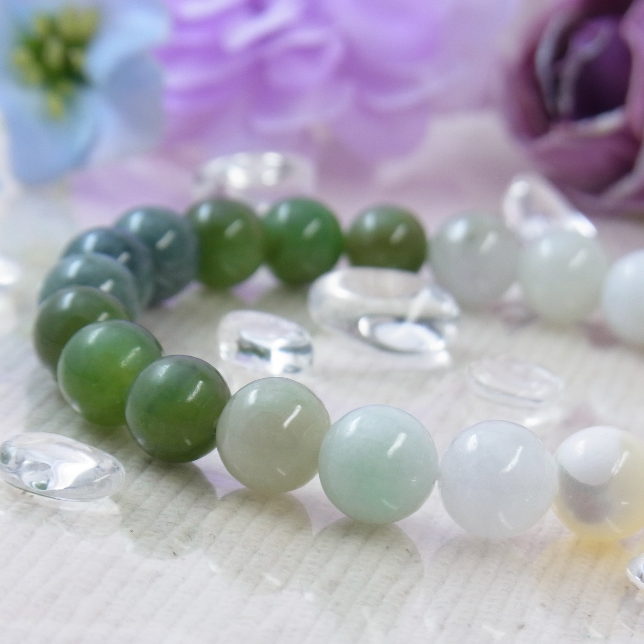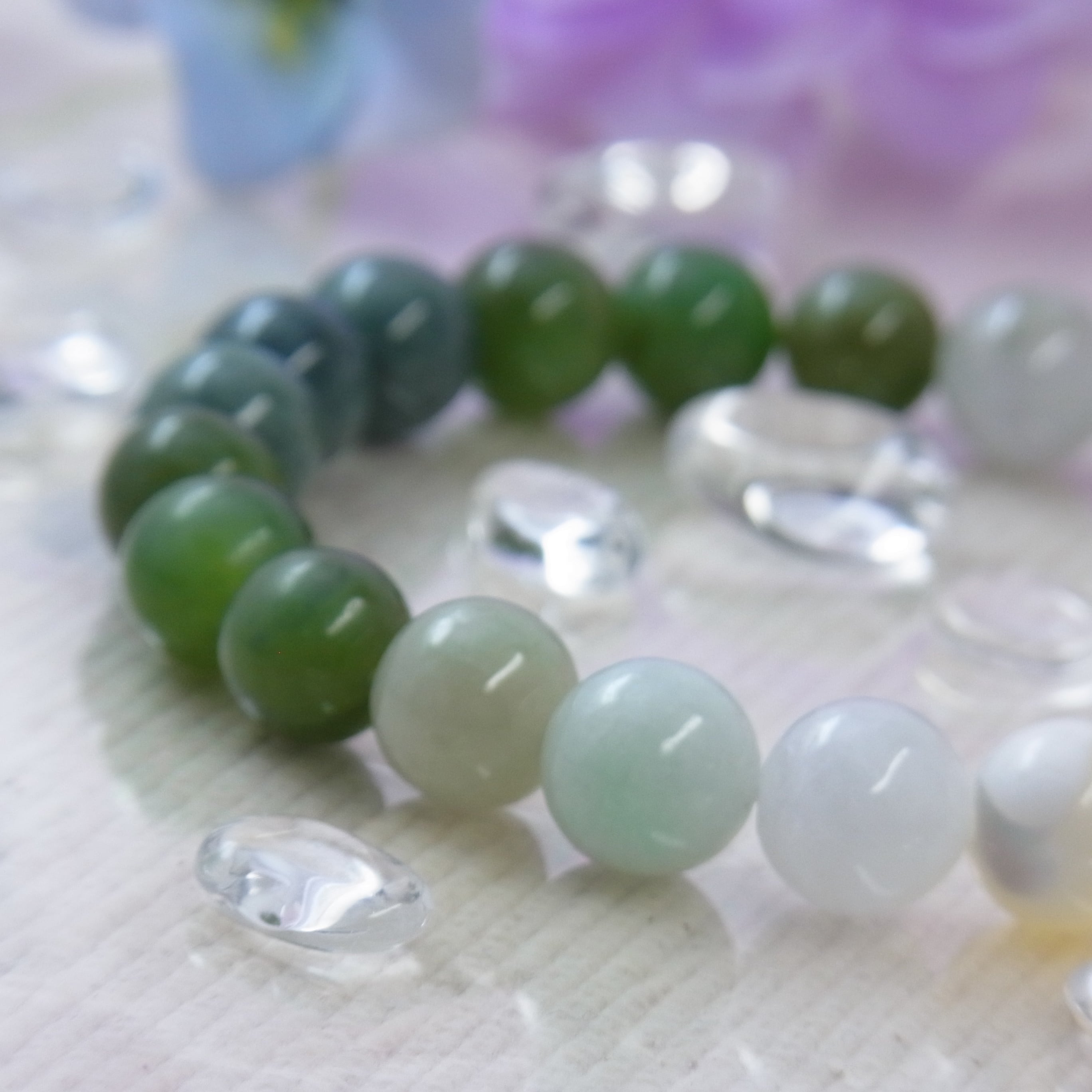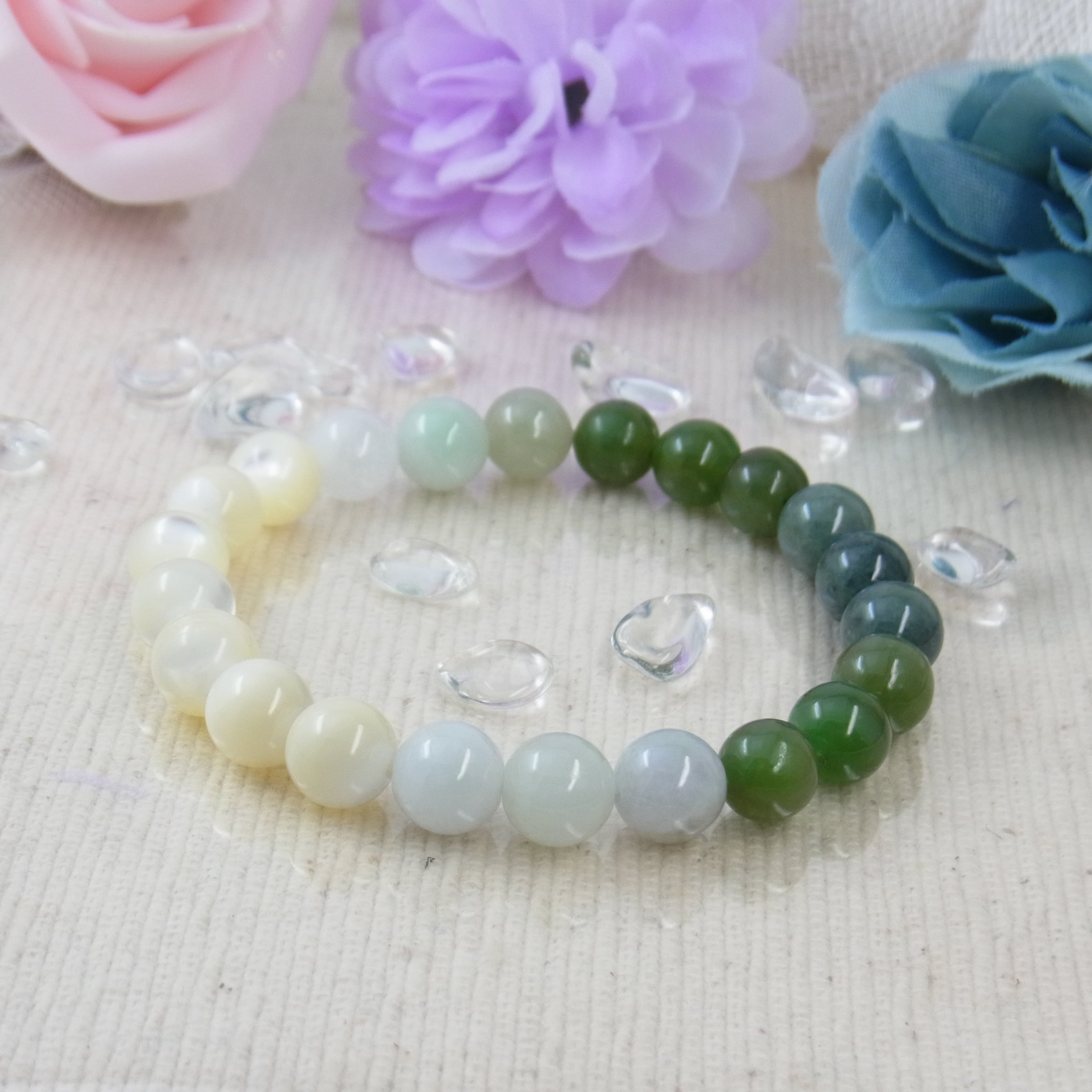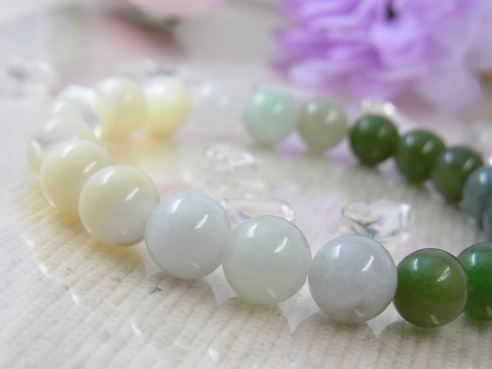 ◆数種類の翡翠(ひすい)と、マザーオブパールで
