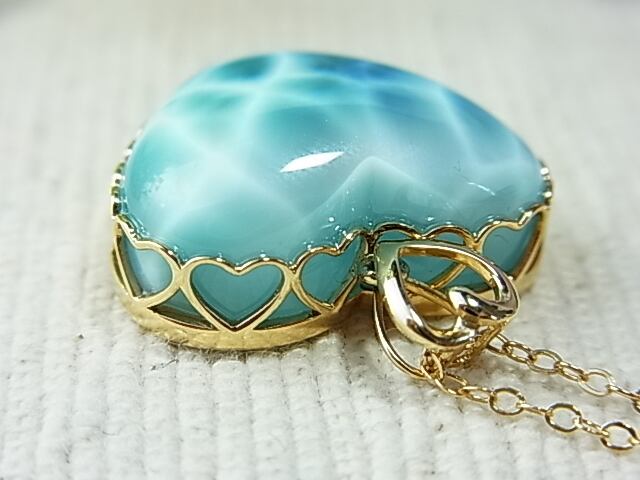 細部まで丁寧なお作りの、とても目を惹くラリマーハートペンダントです。