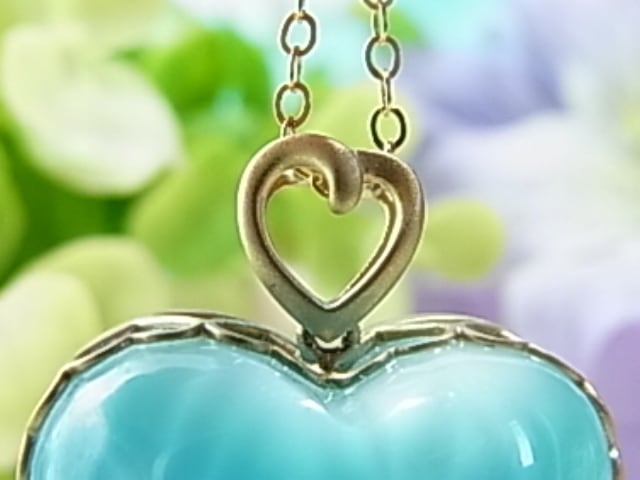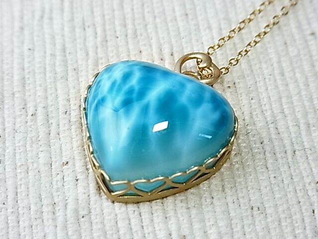 細部まで丁寧なお作りの、とても目を惹くラリマーハートペンダントです。
