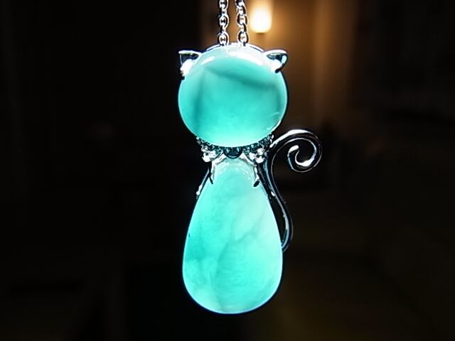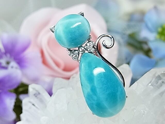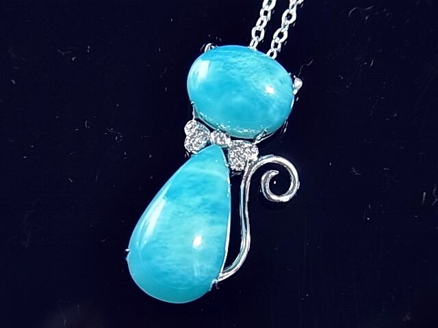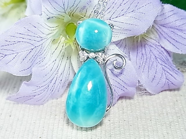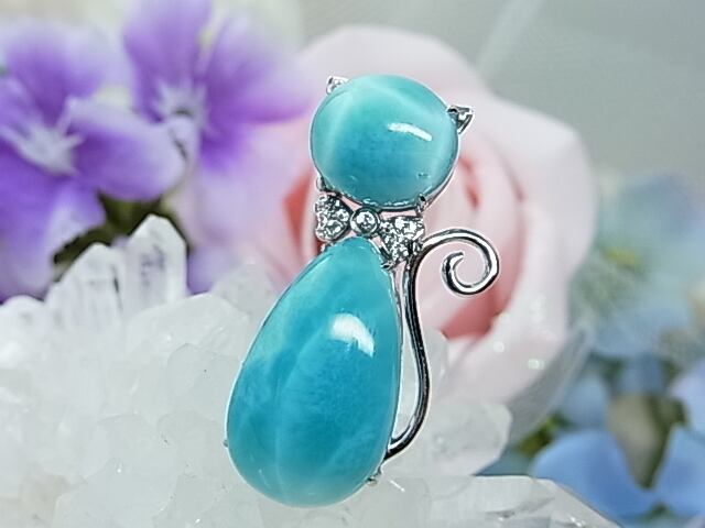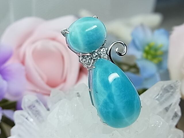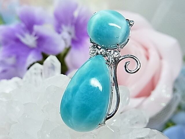 記念に残るプレゼントとして、ご自分へのご褒美として、希少なトップクオリティ『ラリマー 美しい猫のペンダント』いかがでしょうか?