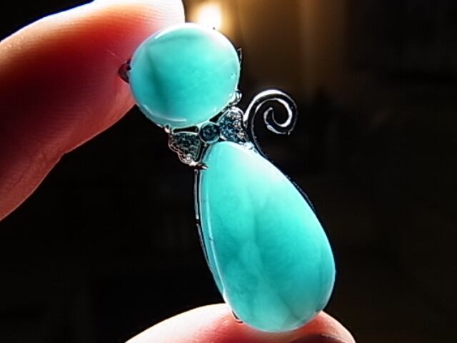 一生の宝石・宝物になりそうな、一点もののラリマー猫ペンダントです。