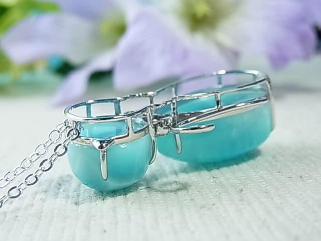 贅沢に二つのラリマールースを配置した、美しい姿の猫モチーフデザインです。