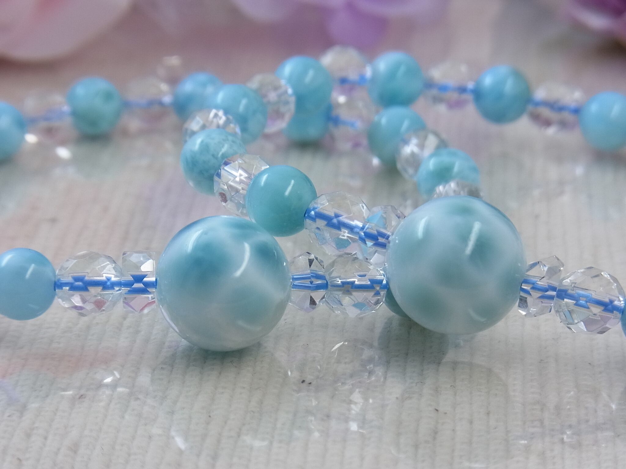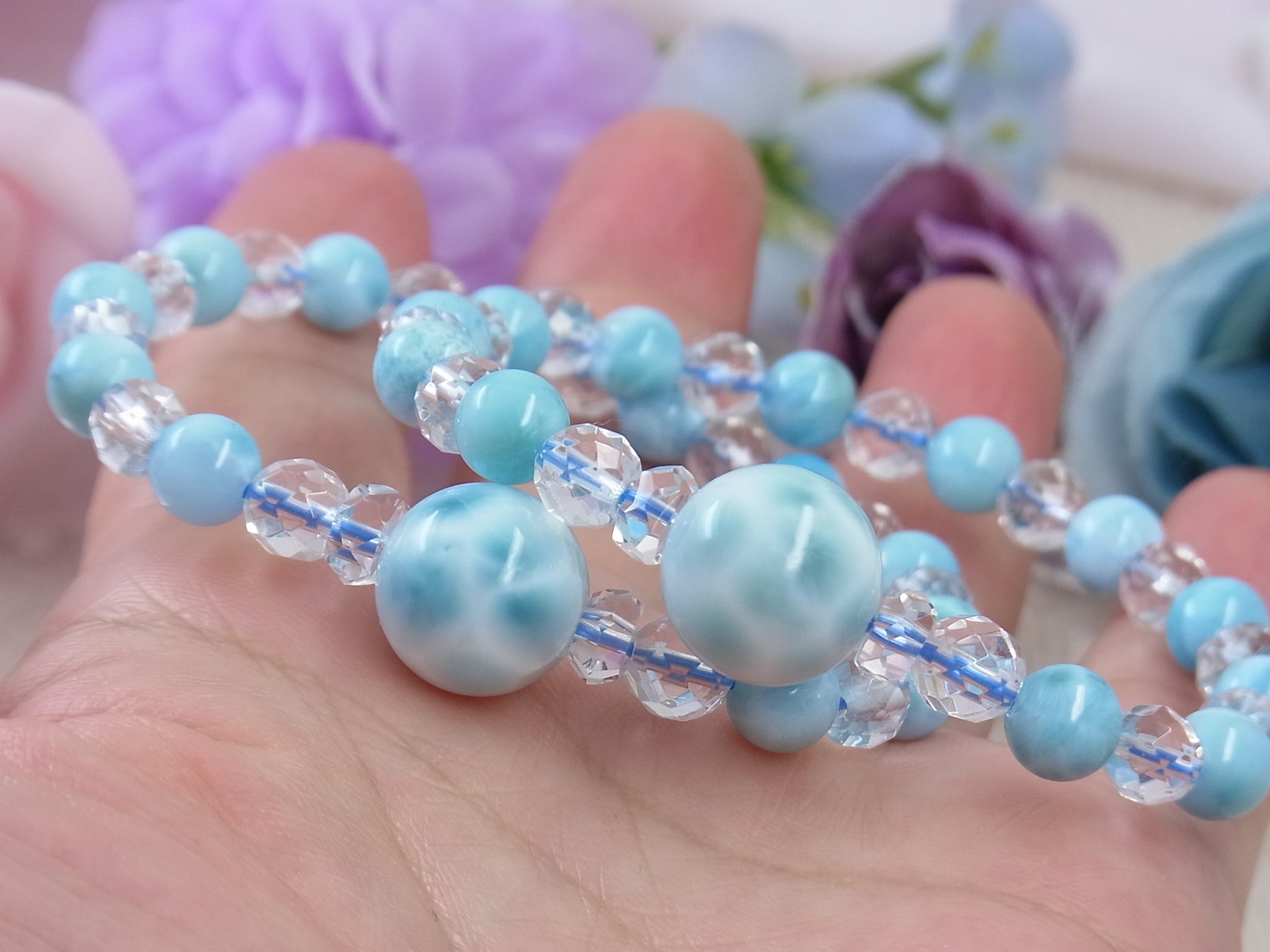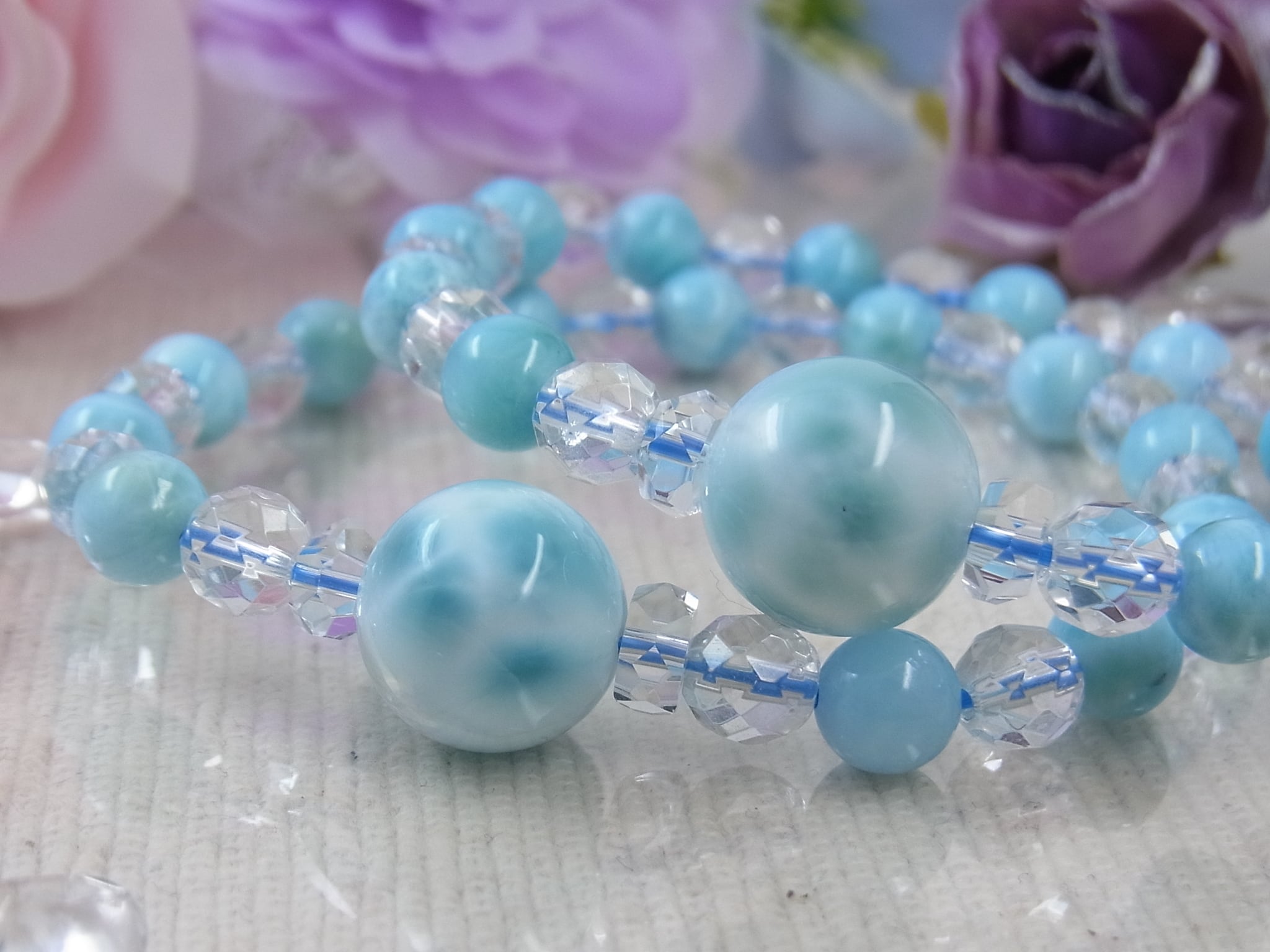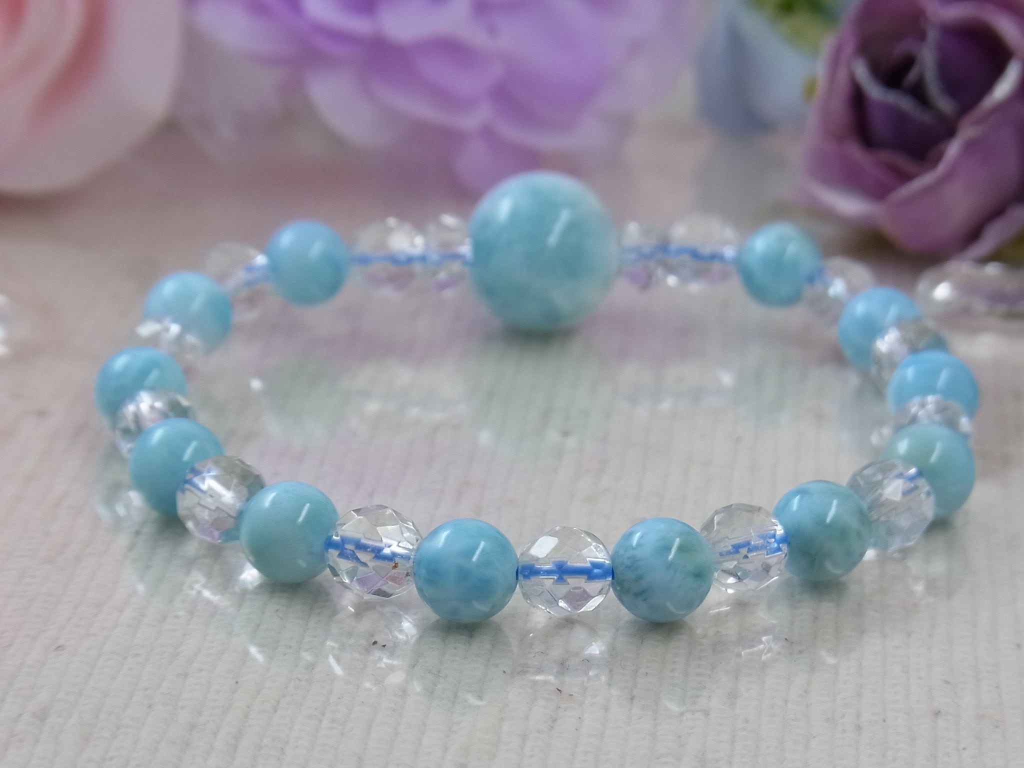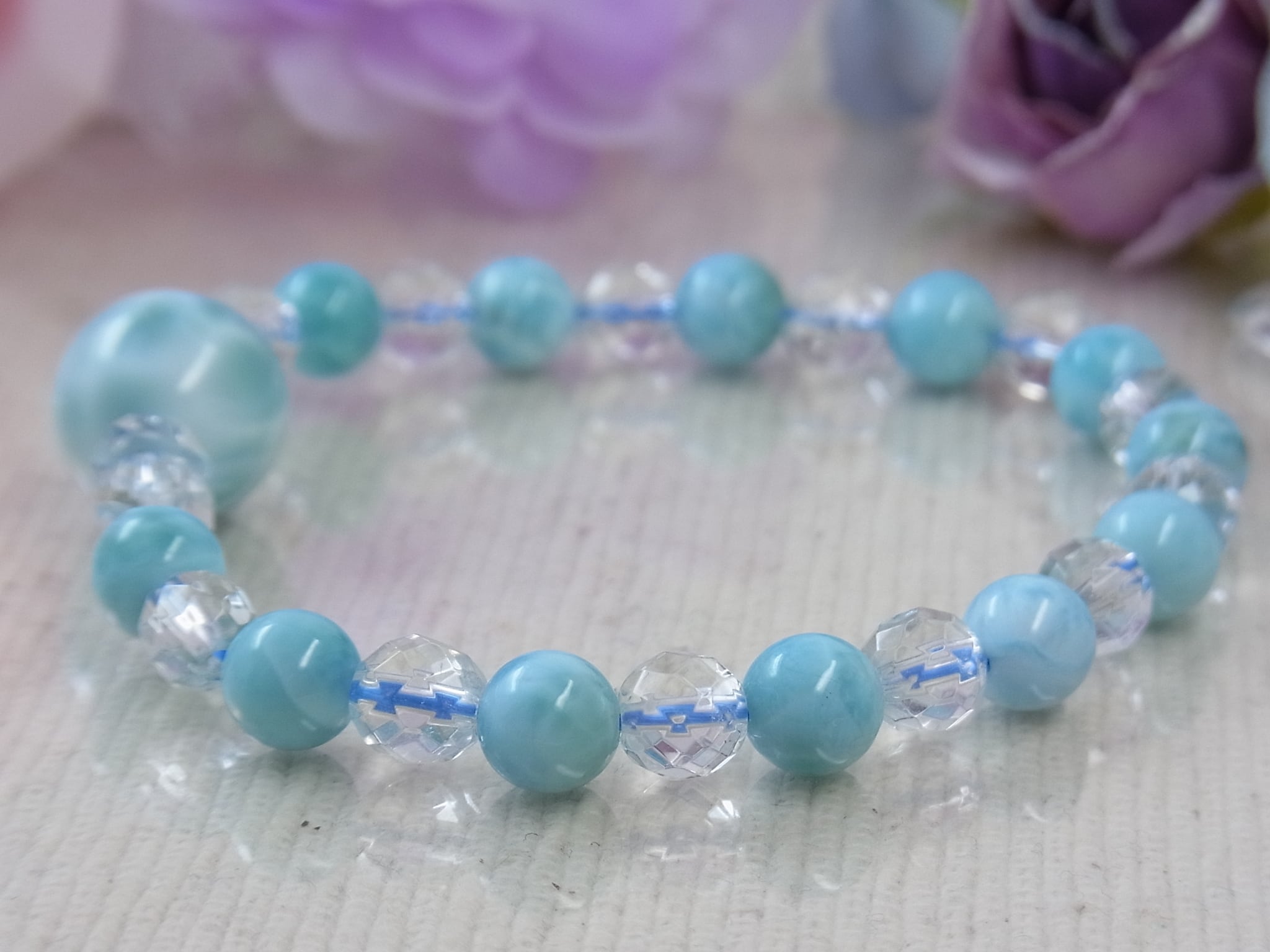 ラリマーとカット天然水晶の 天然石ブレスレット、