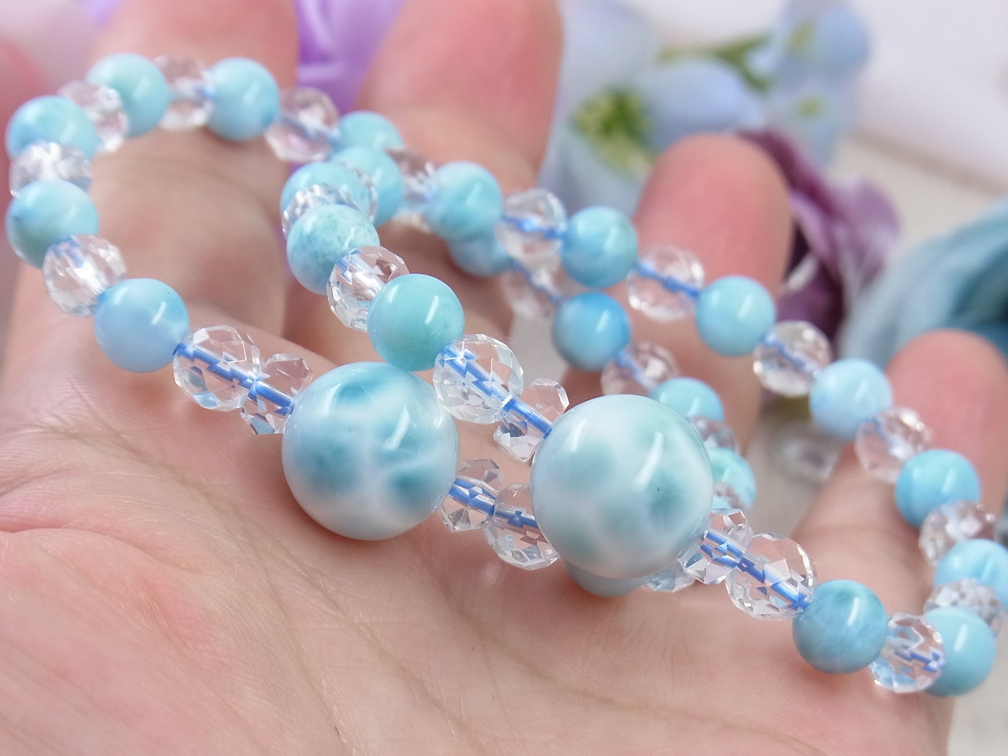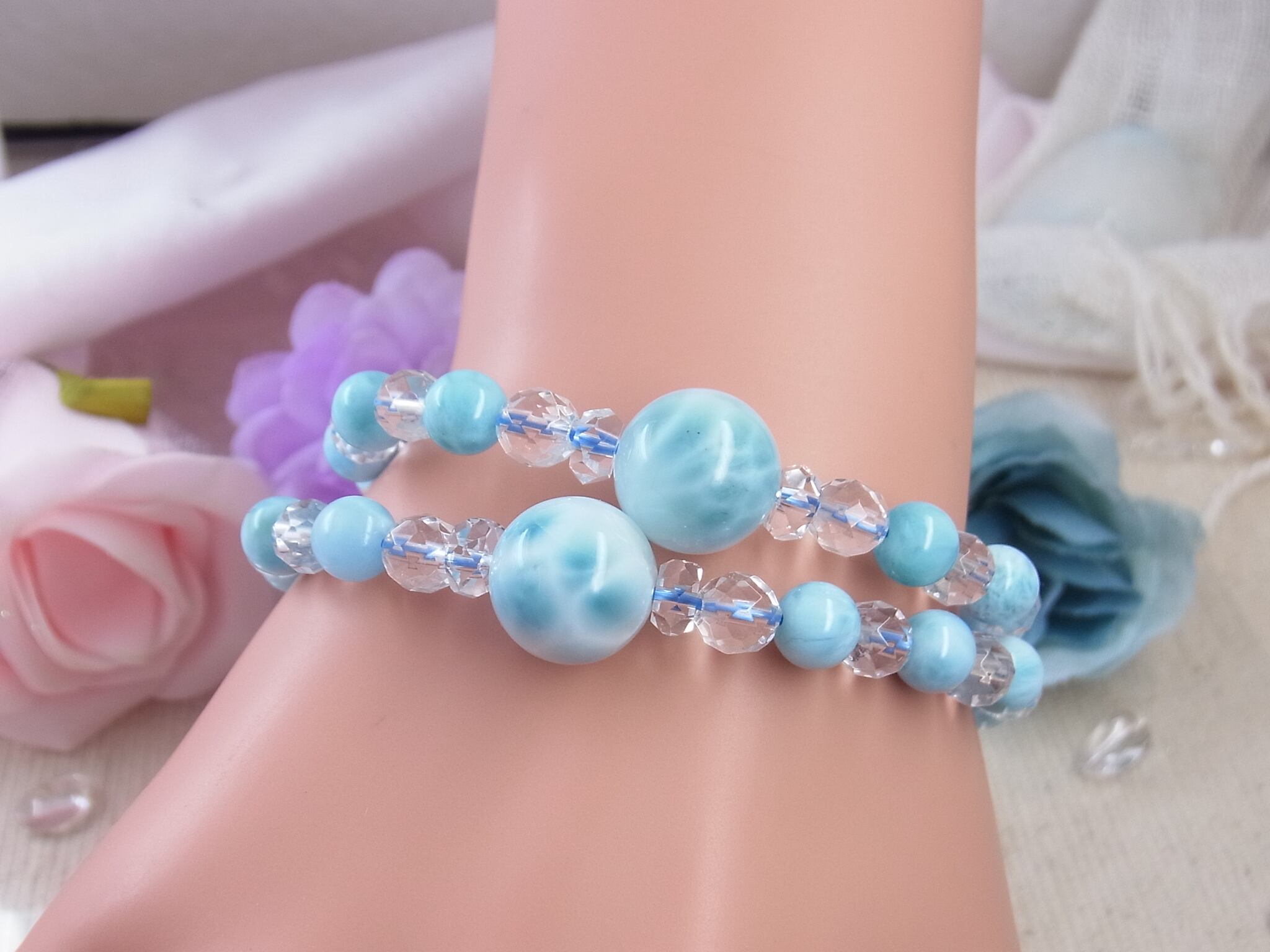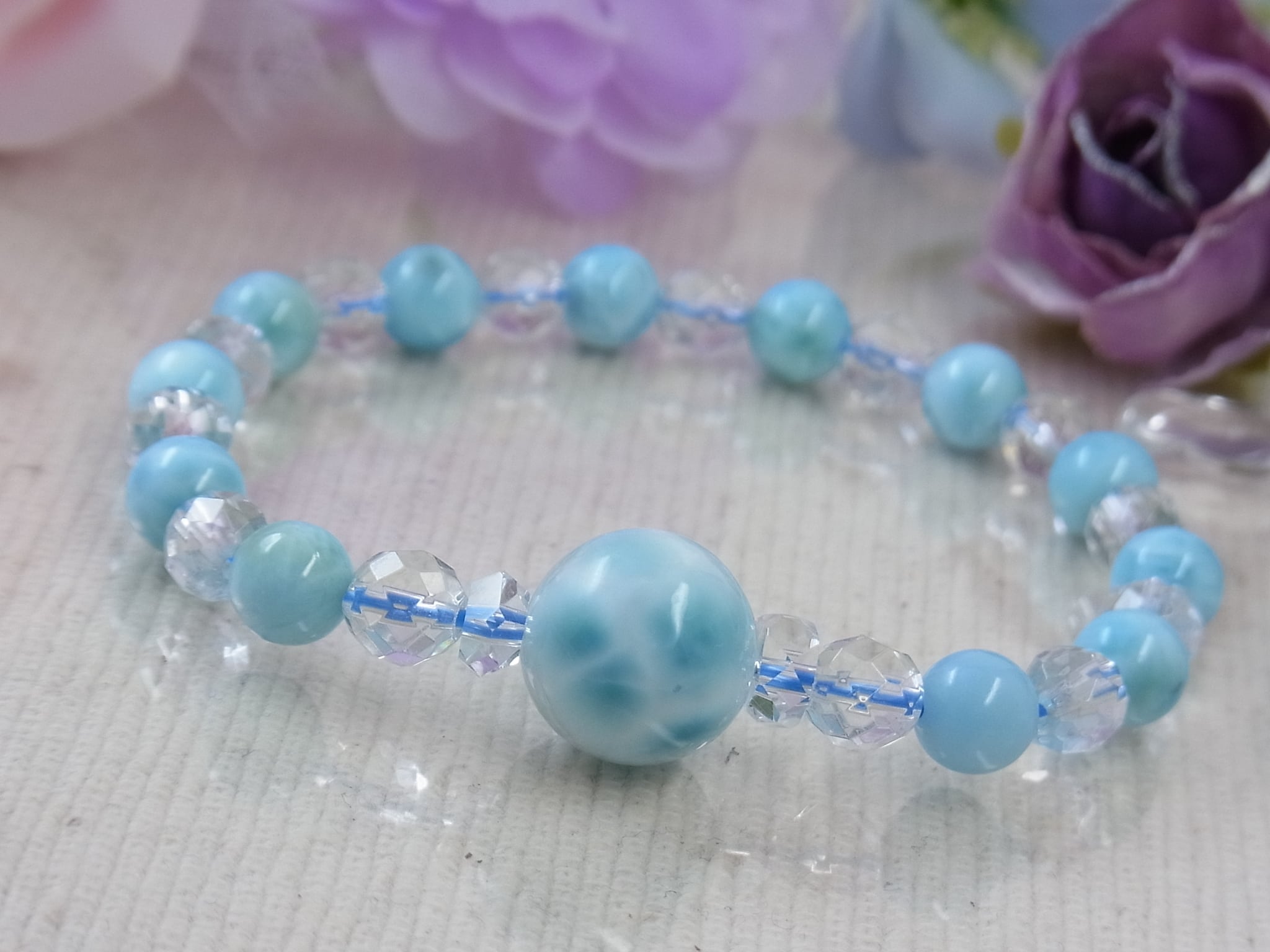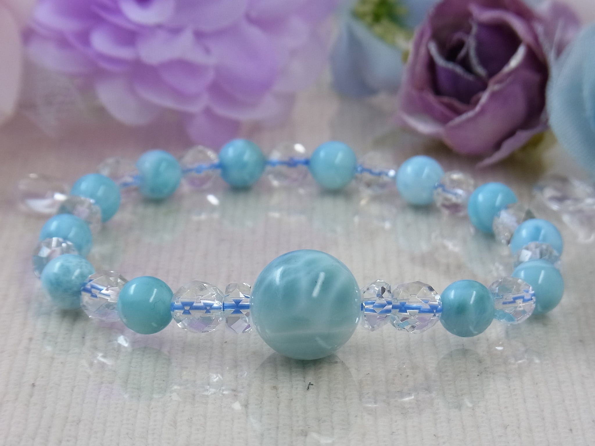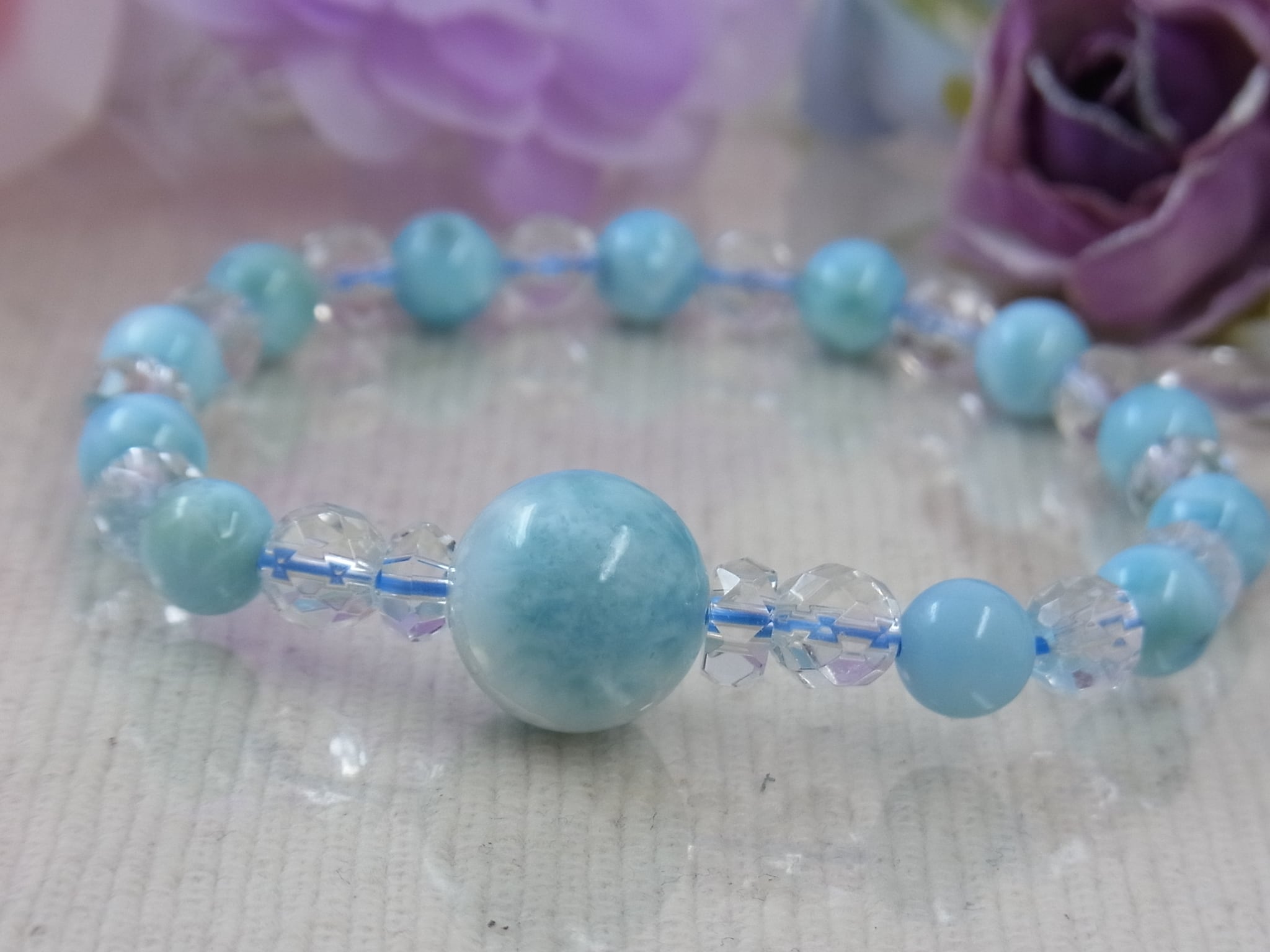 大粒ラリマー&天然水晶のブレスレット、いかがでしょうか?