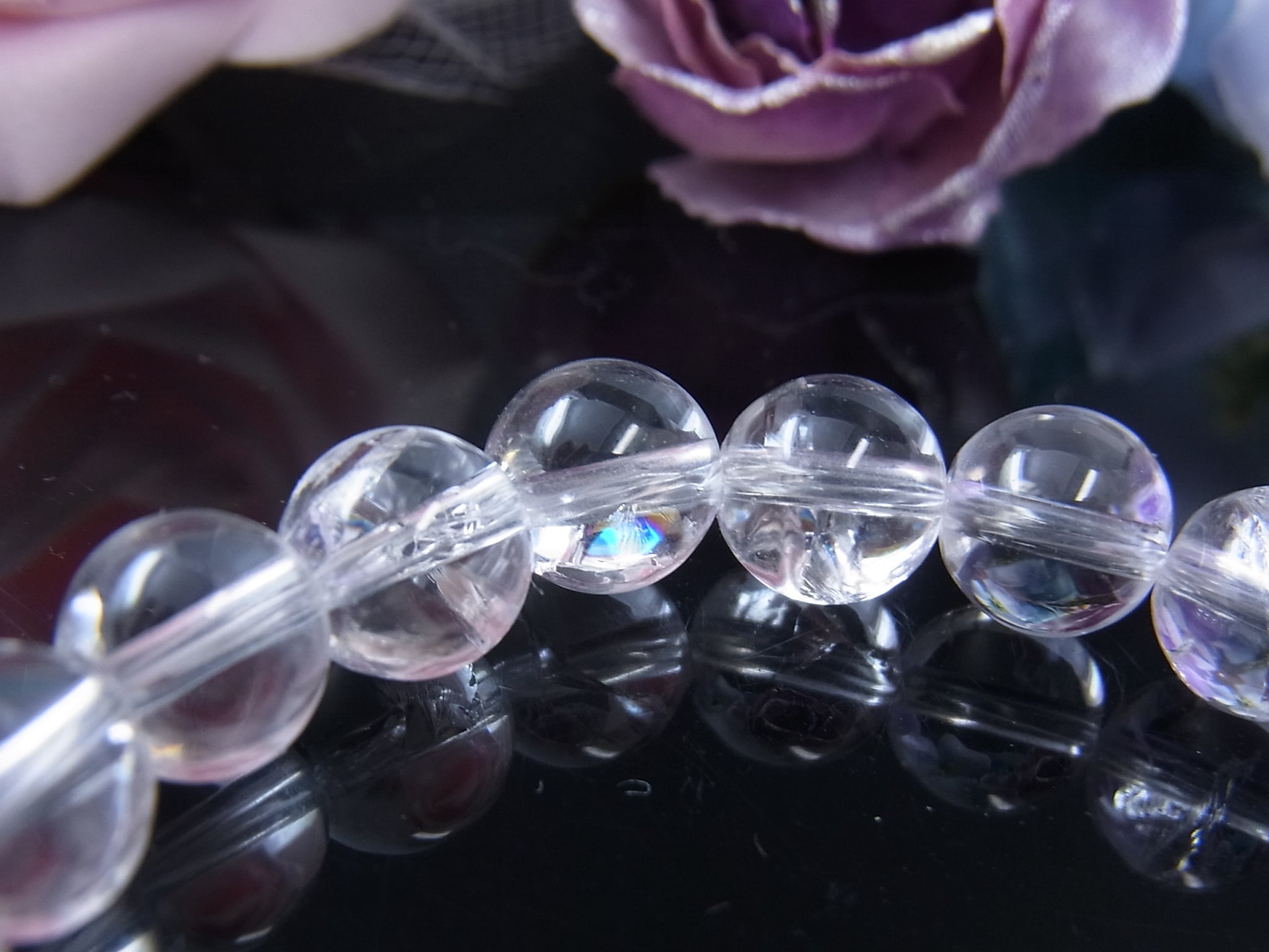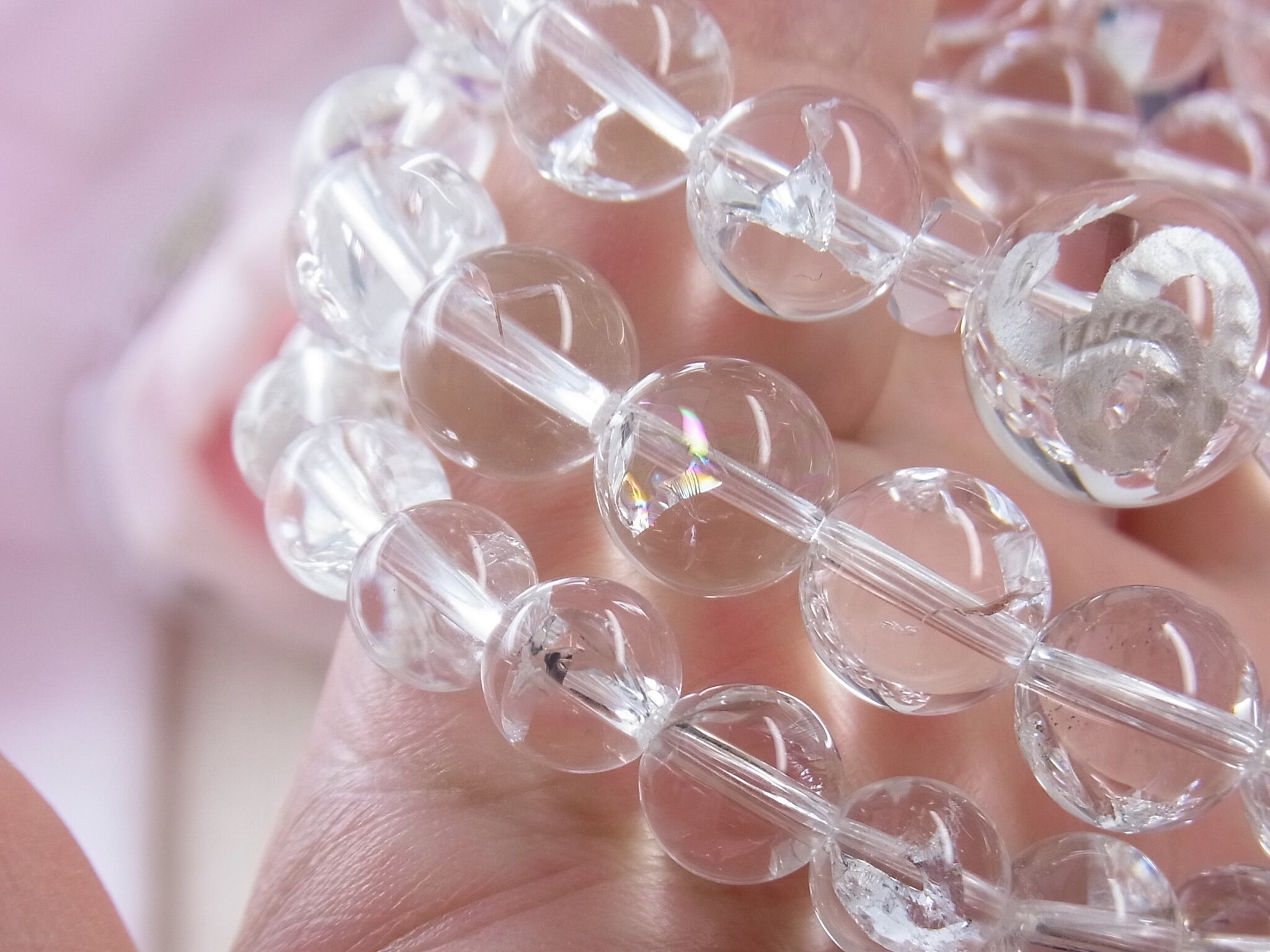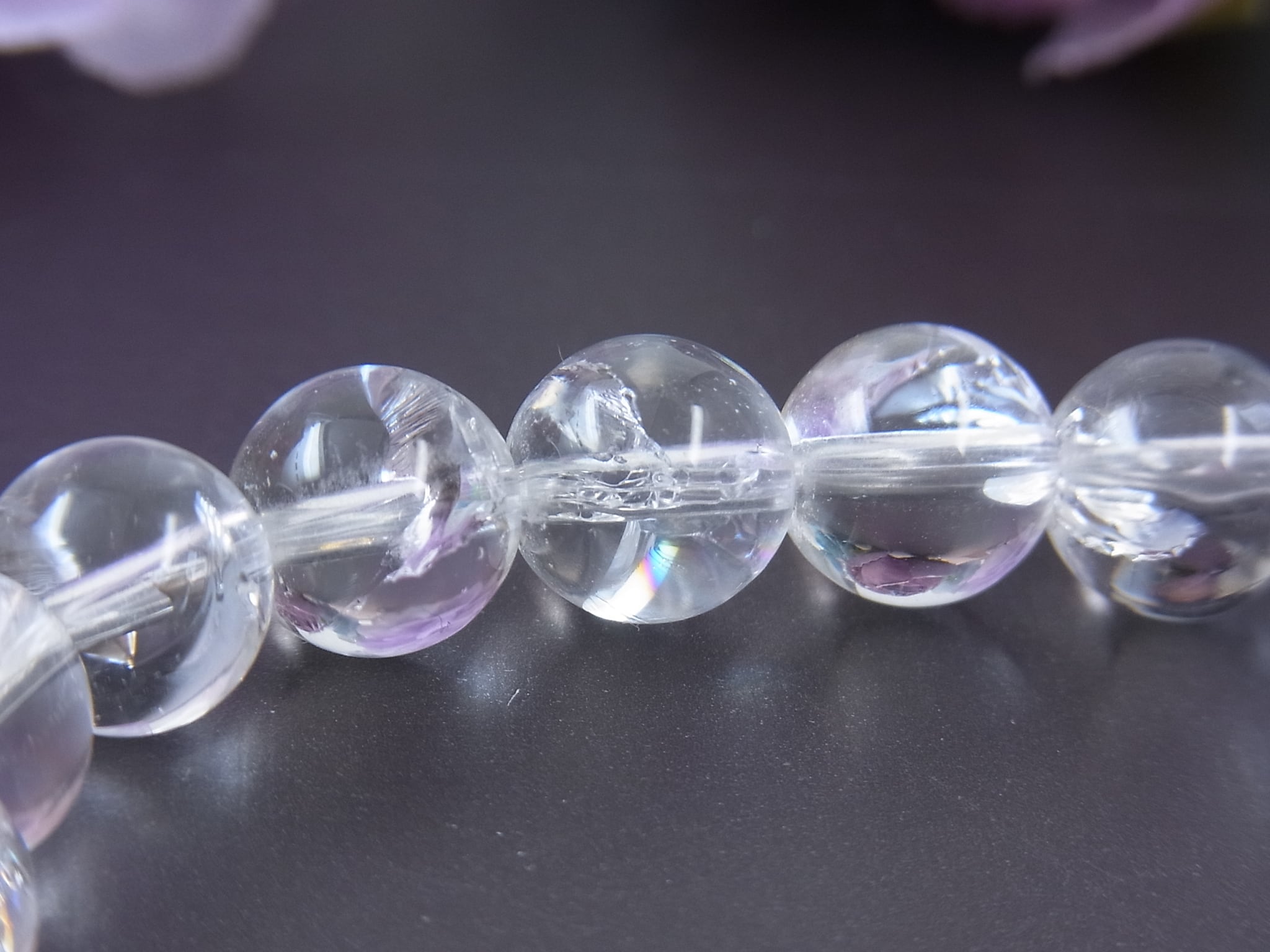 お手元を飾る、虹入り天然水晶…、