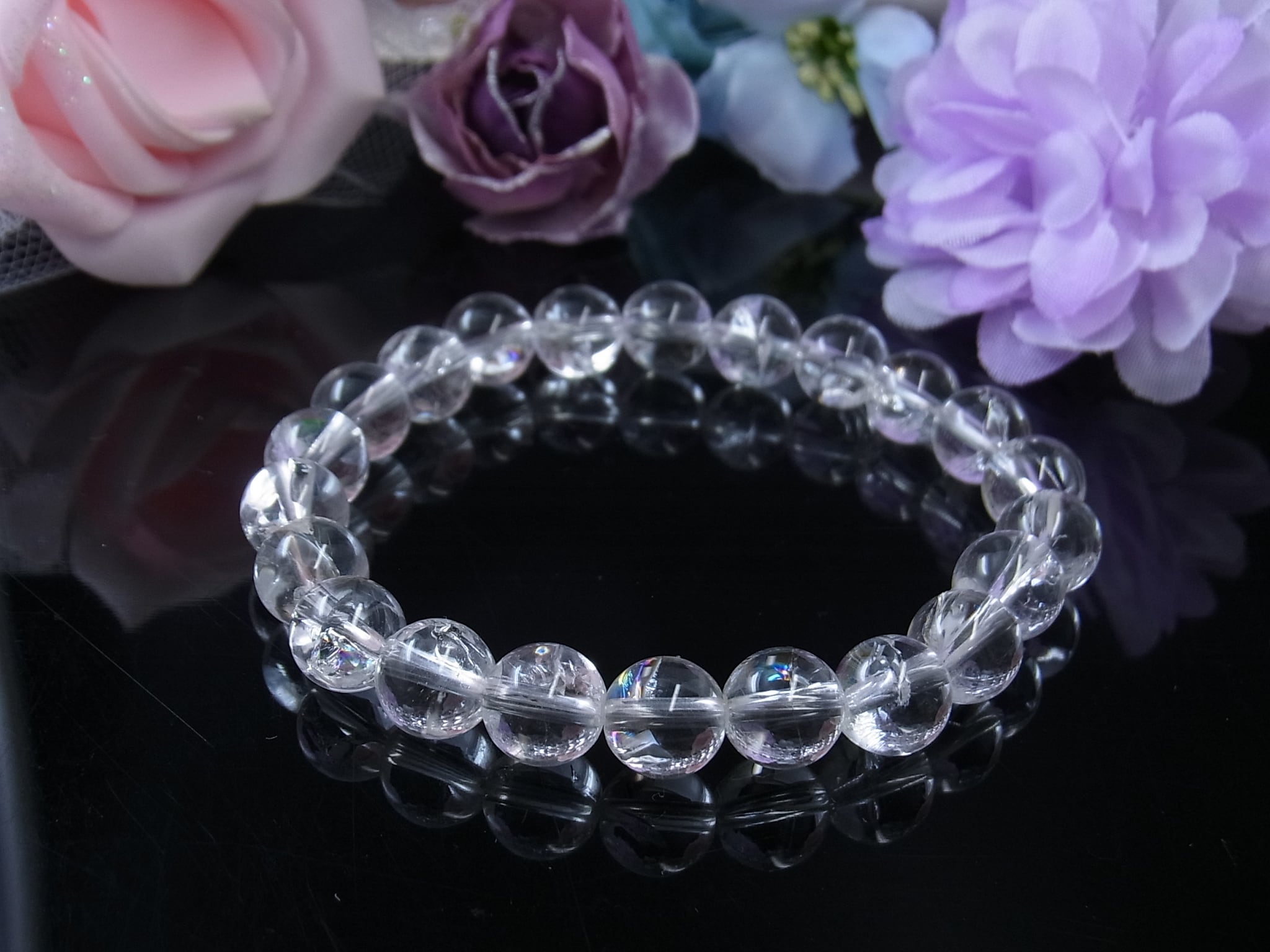 天然レインボー水晶のブレスレット、