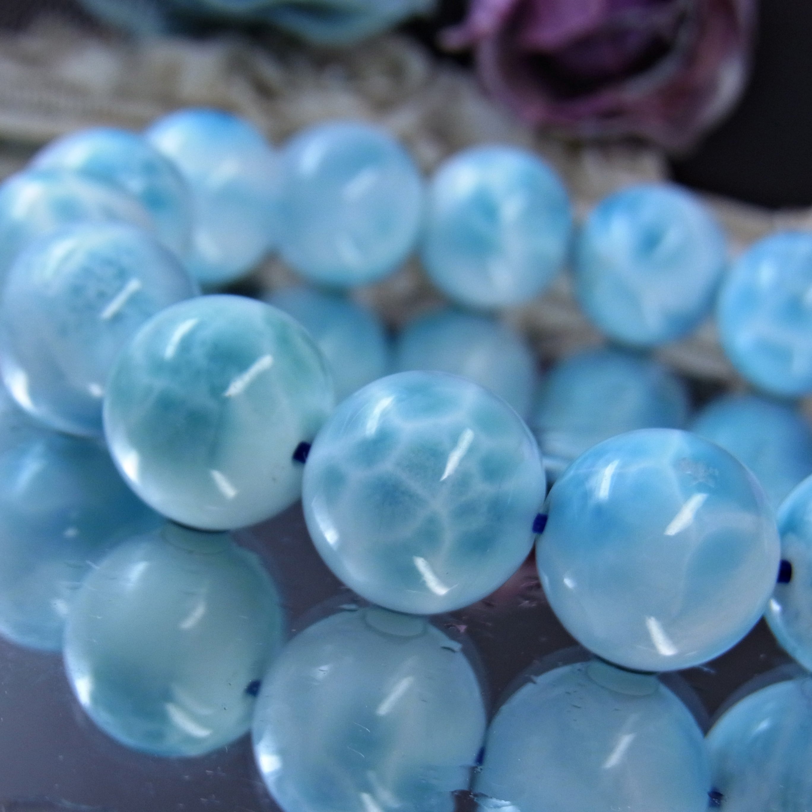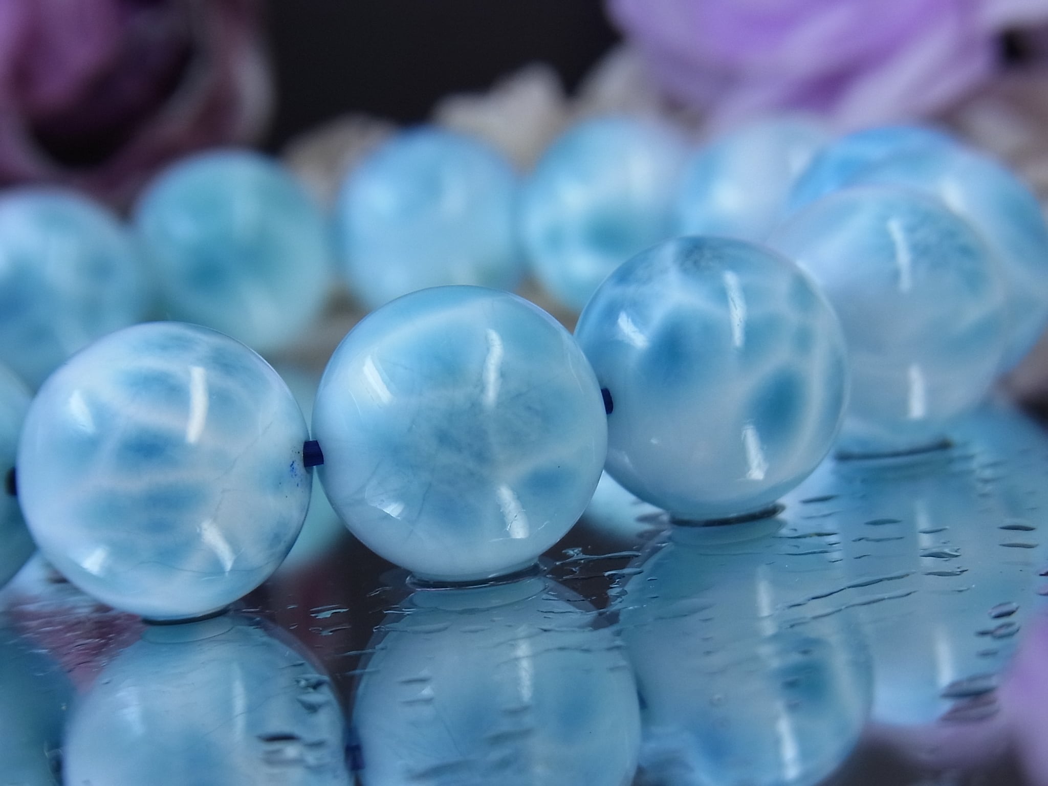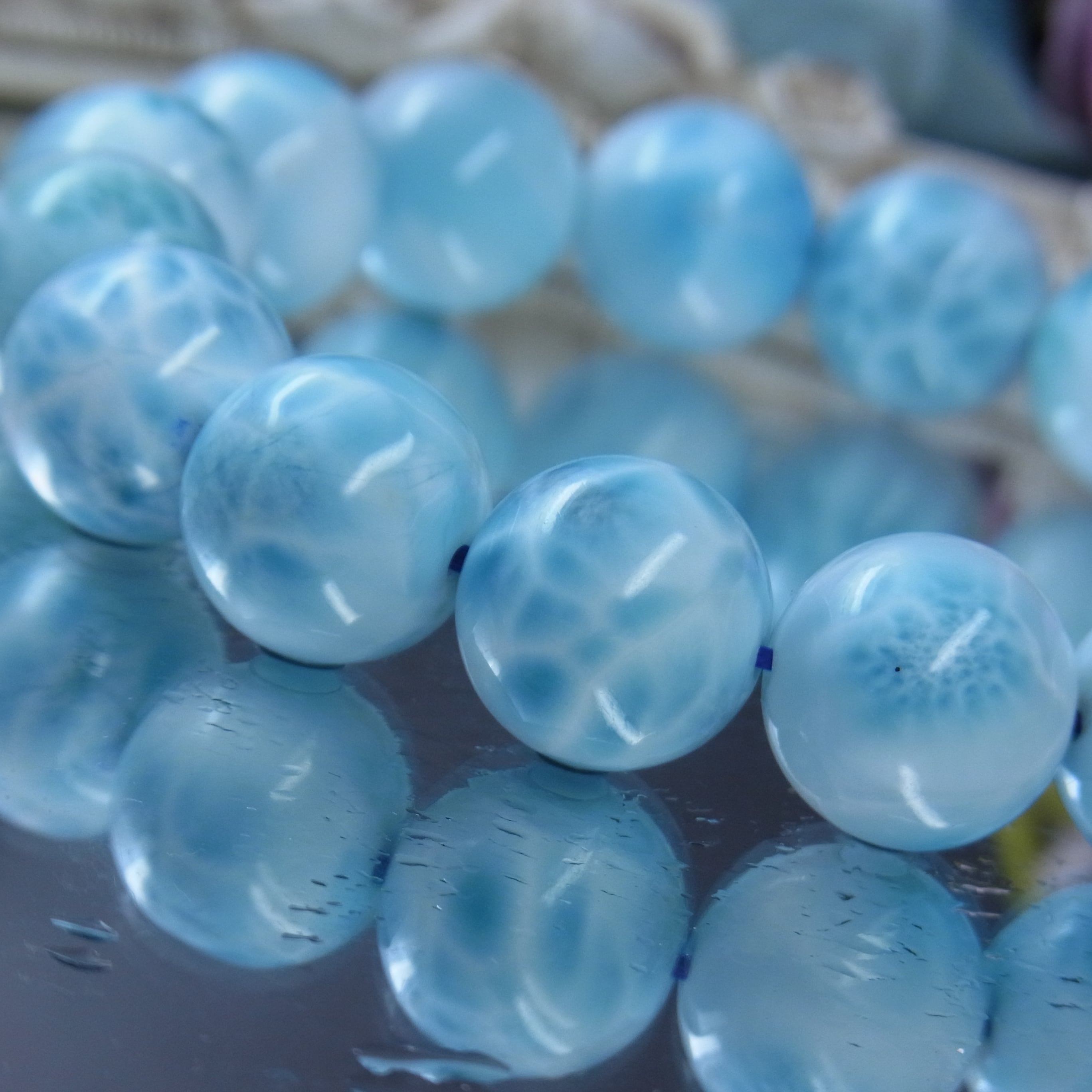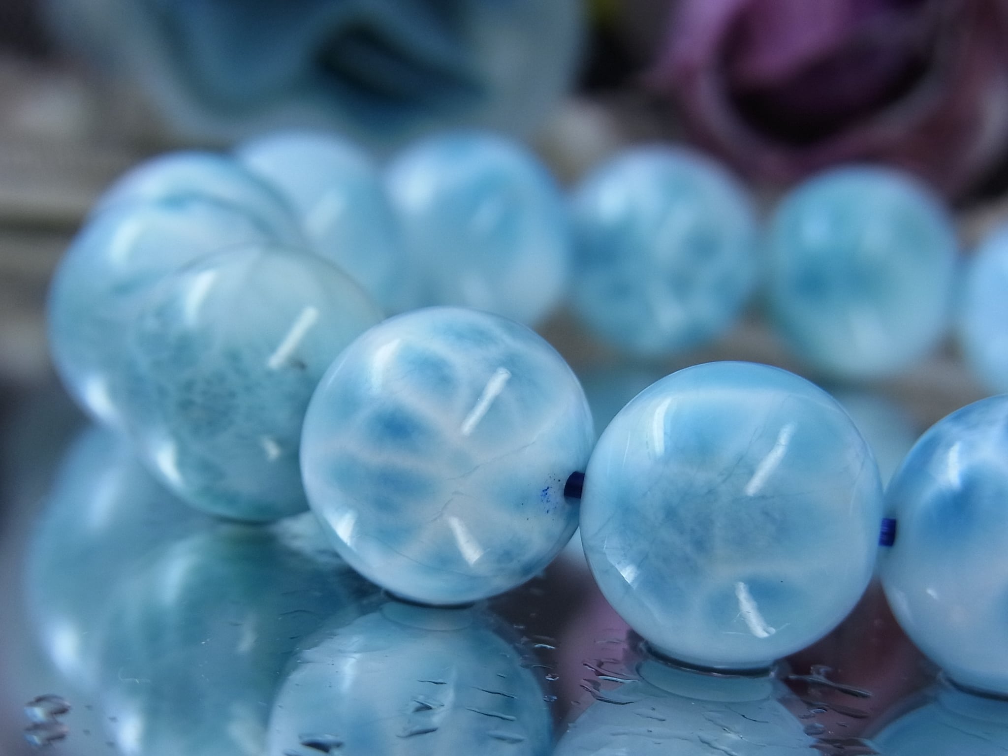 ぷるぷるで艶々で、海の波間をそのまま封じ込めたようなラリマーです。