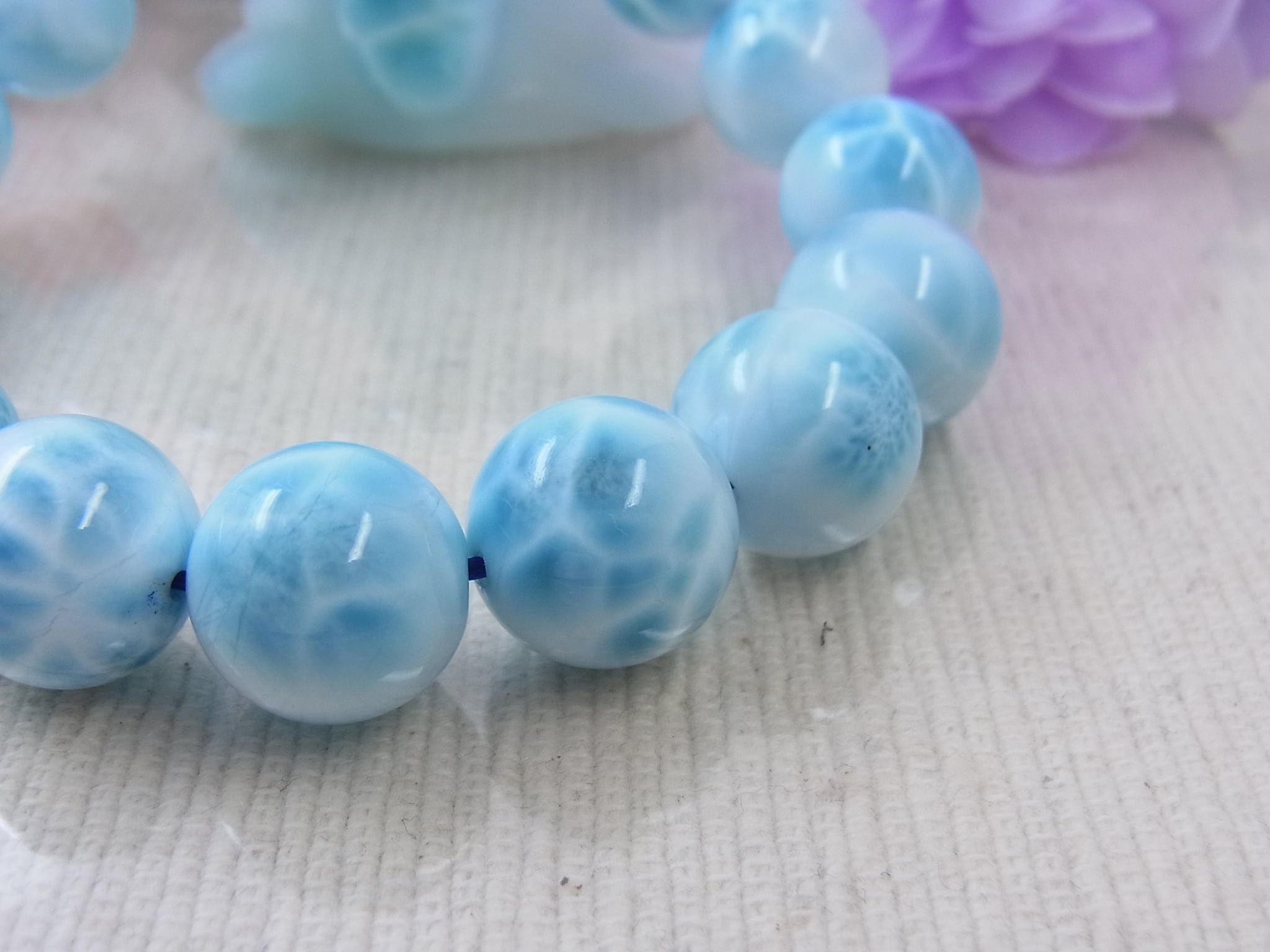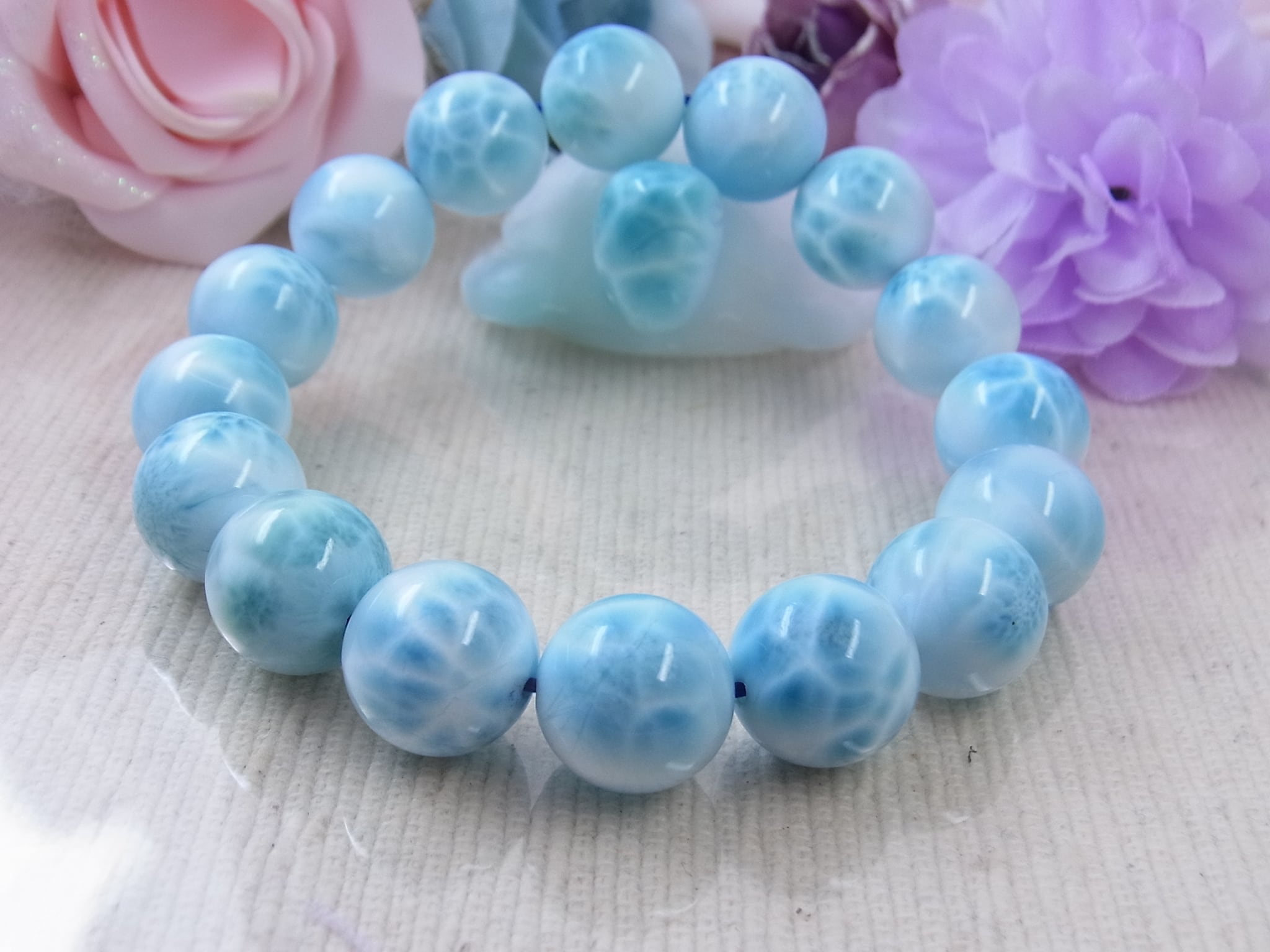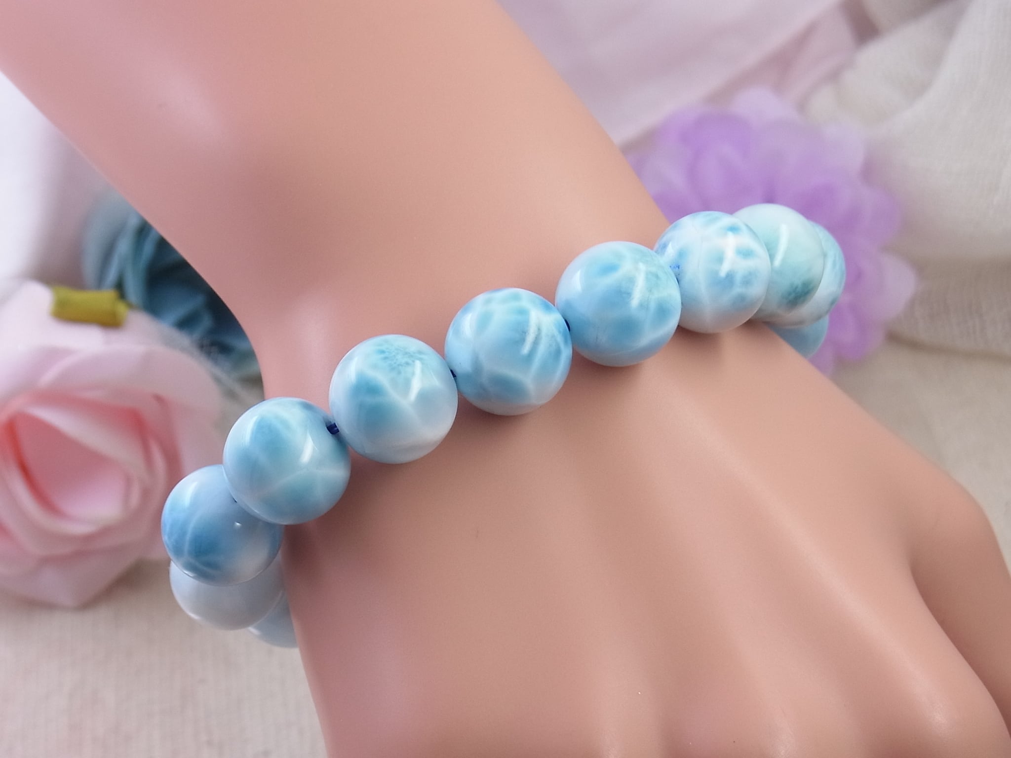 一点もの、美しい波模様の 大粒13㎜ラリマーブレスレットです。