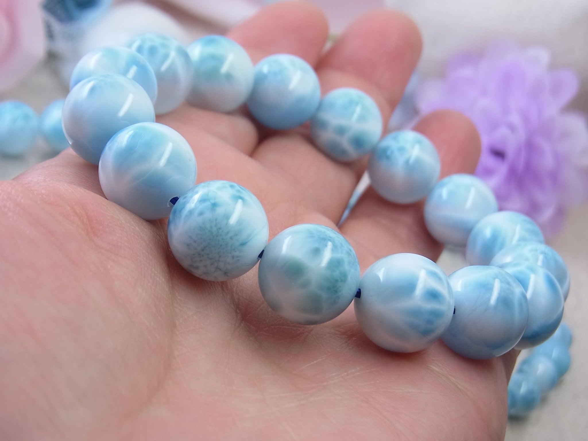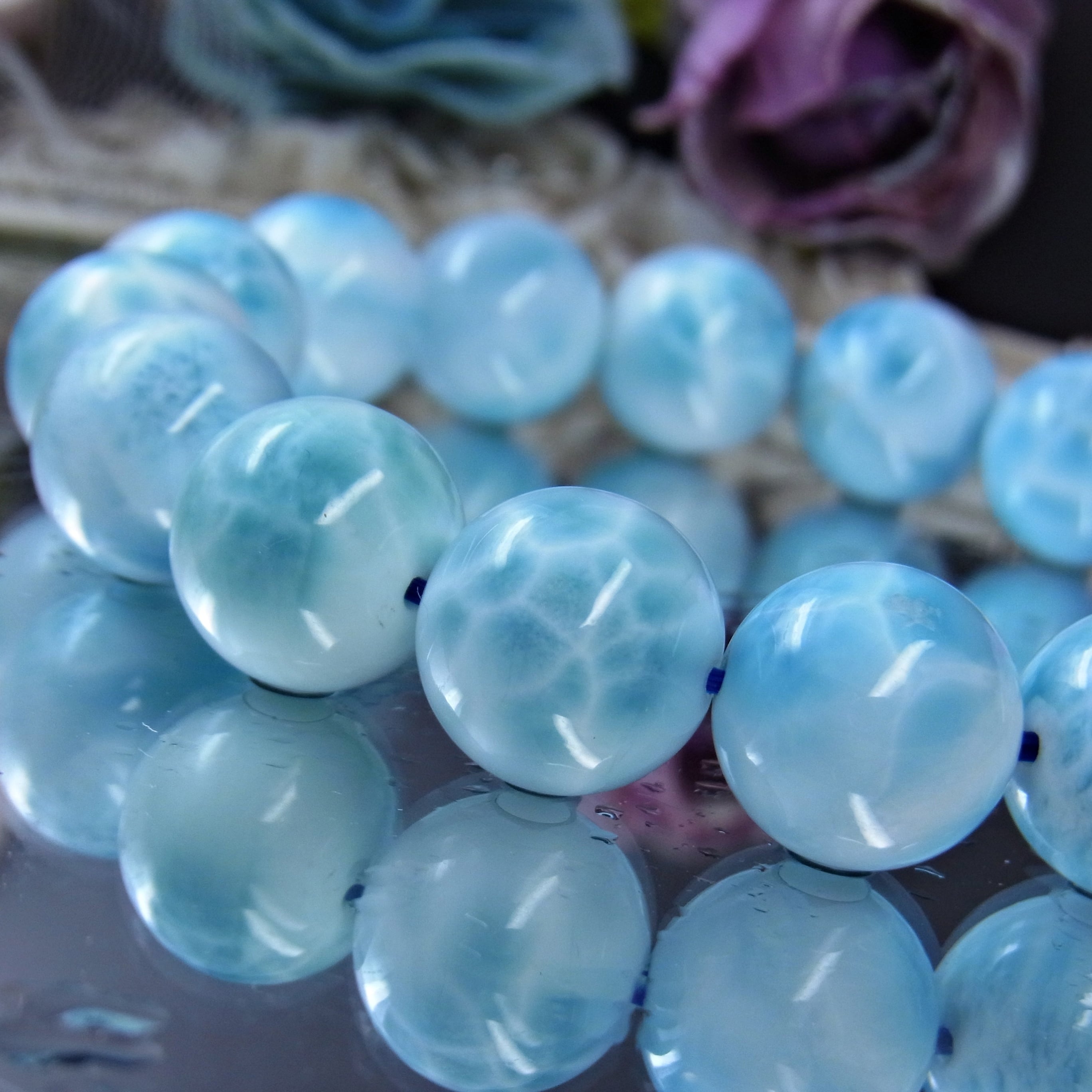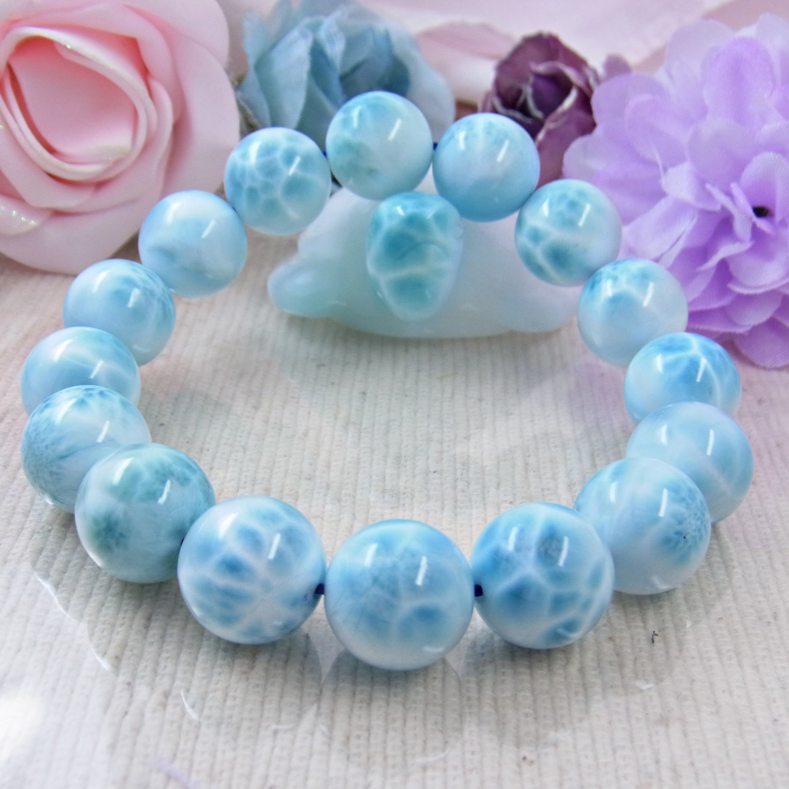一点もの、美しい波模様の 大粒13㎜ラリマーブレスレットです。
