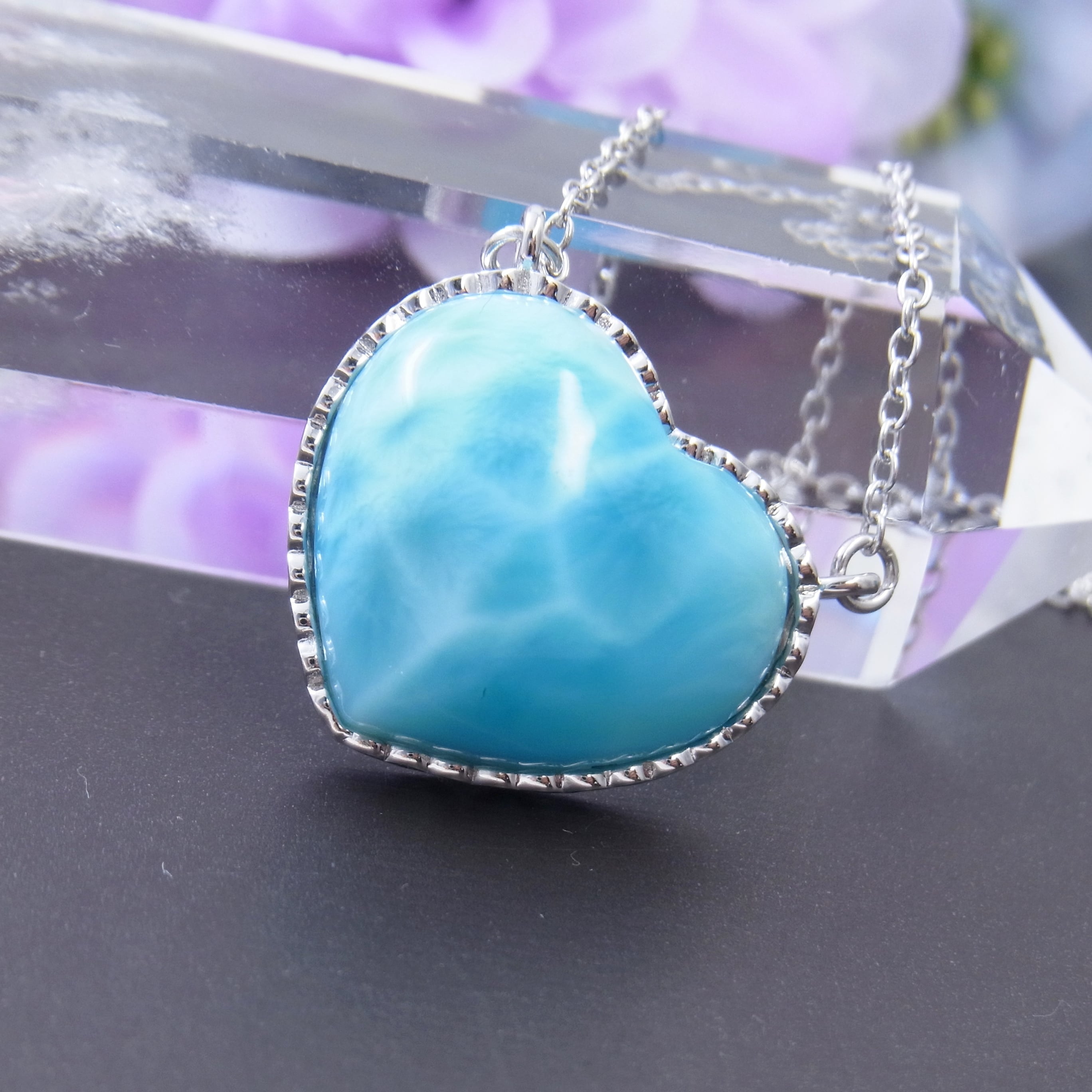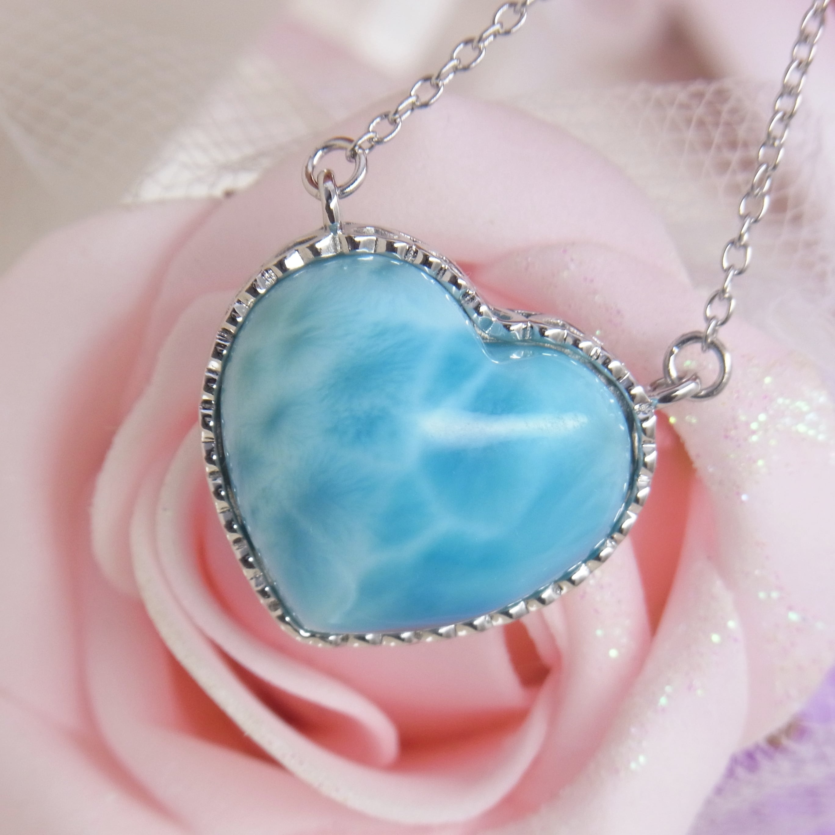 ぷくっと厚みがあるラリマーハートペンダント/ネックレスのご案内です。