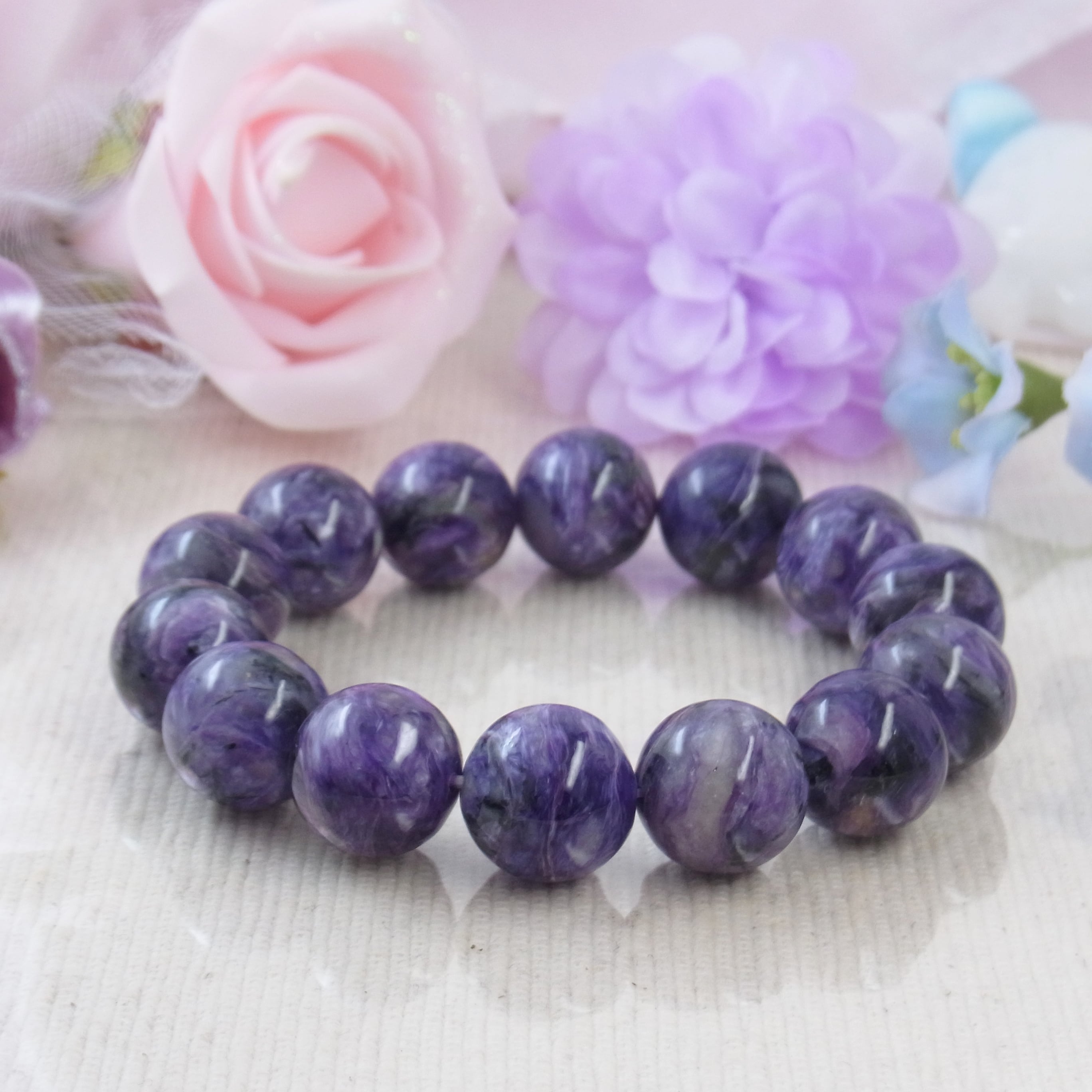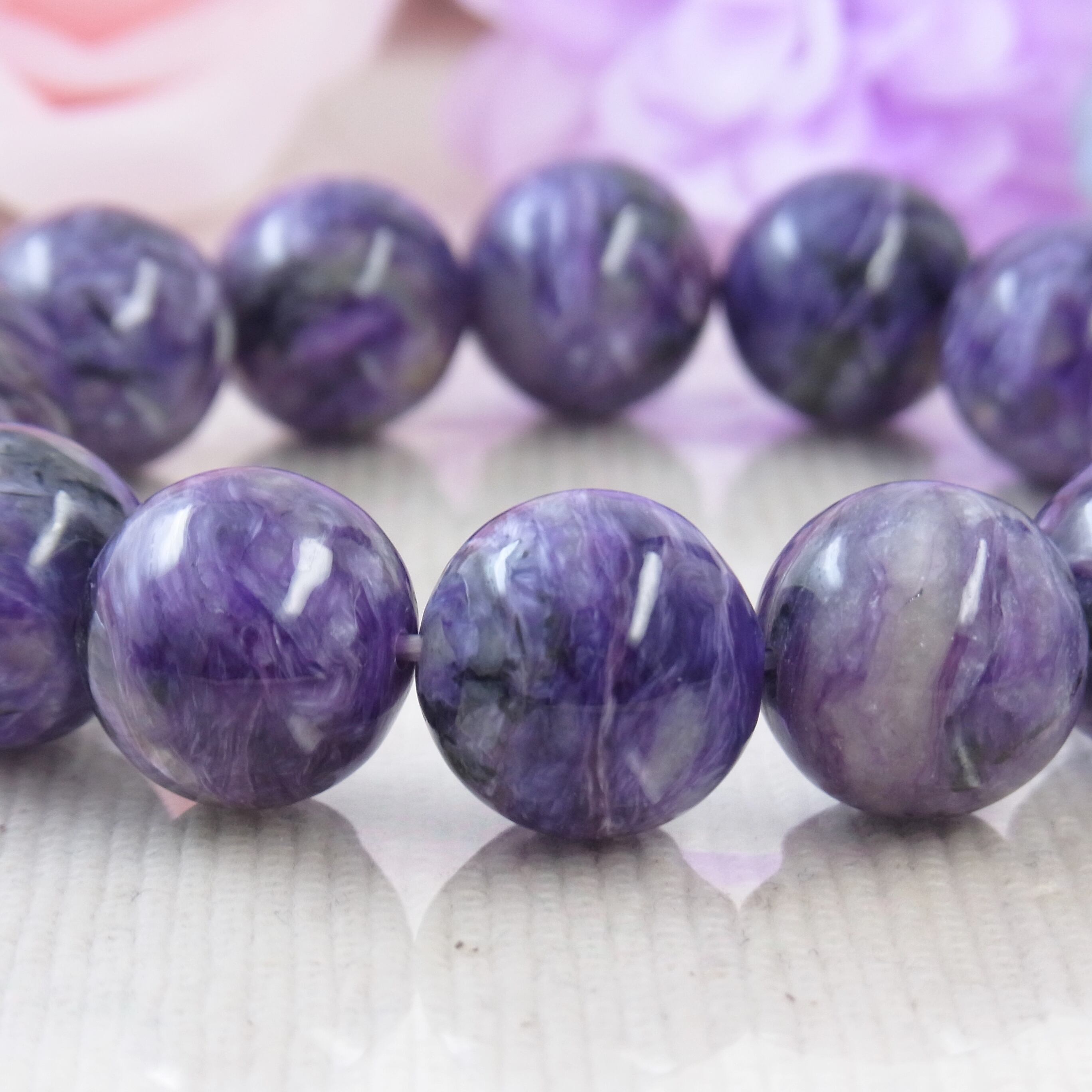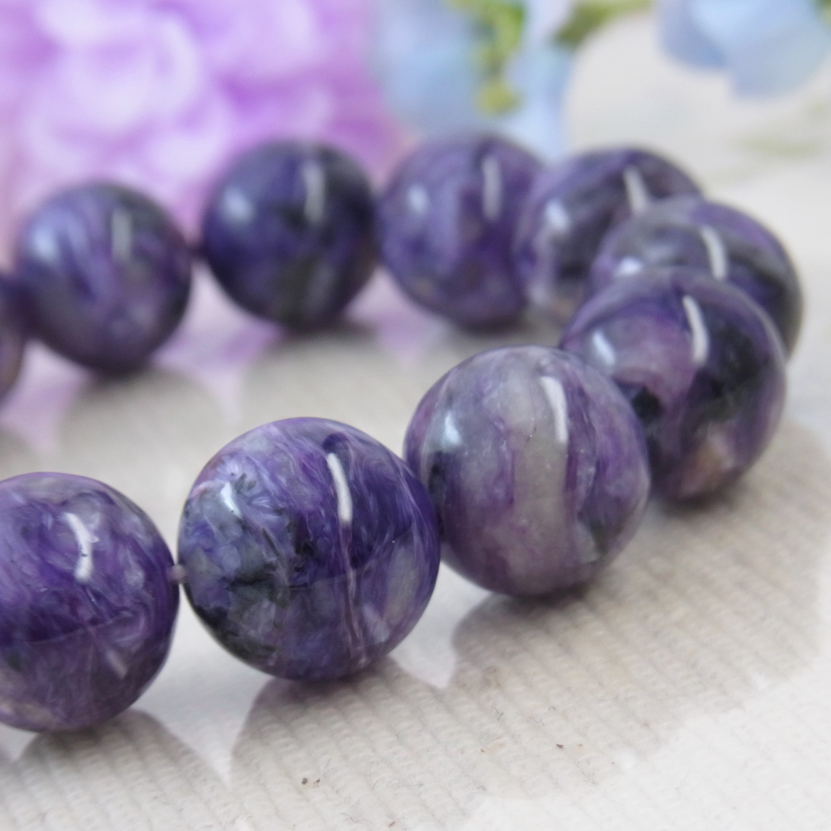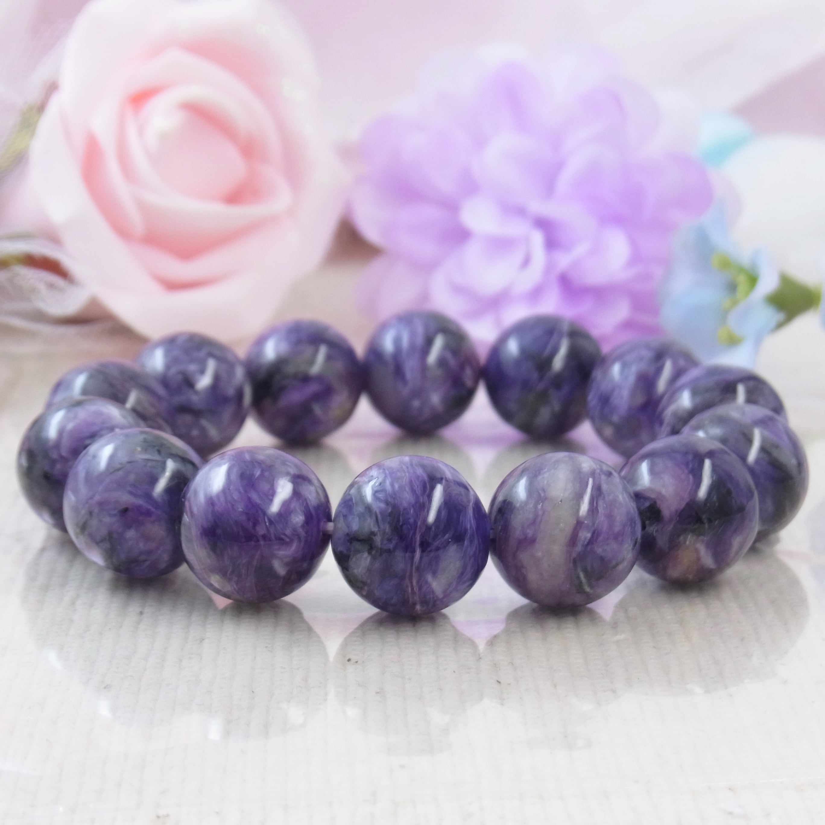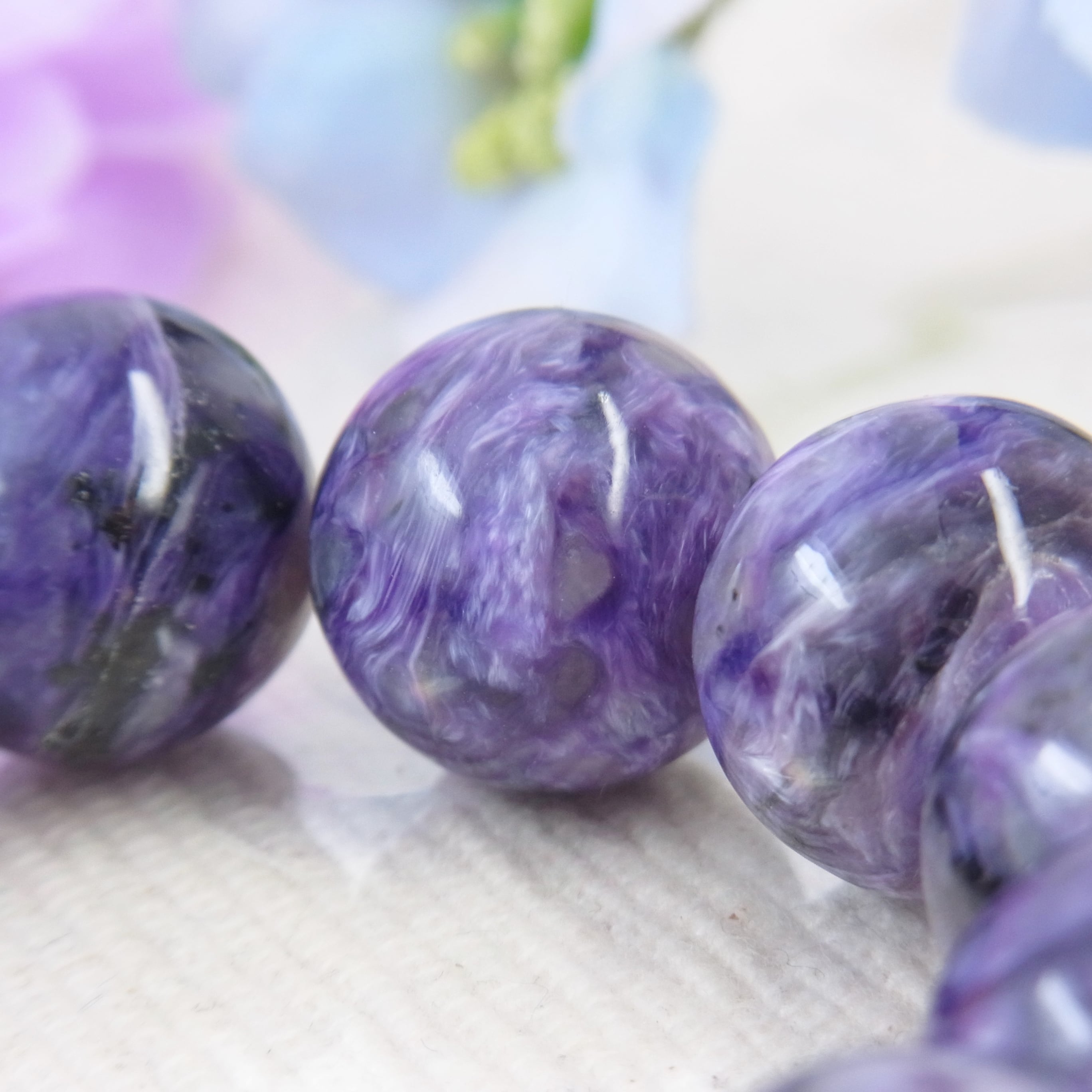 #チャロアイト #世界三大ヒーリングストーン #美しい #大粒 #紫色 #希少石 #人気 #上品 #お洒落 #シルク #豪華 #セレブ #4月の誕生石 #高見えアクセサリー #上品 #フォーマル #癒し #お守り #春夏 #秋冬 #オールシーズン #天然石ブレスレット #天然石アクセサリー #ジュエリー #大人コーデ #ゴム #ねこの夢 #LarimarMJ