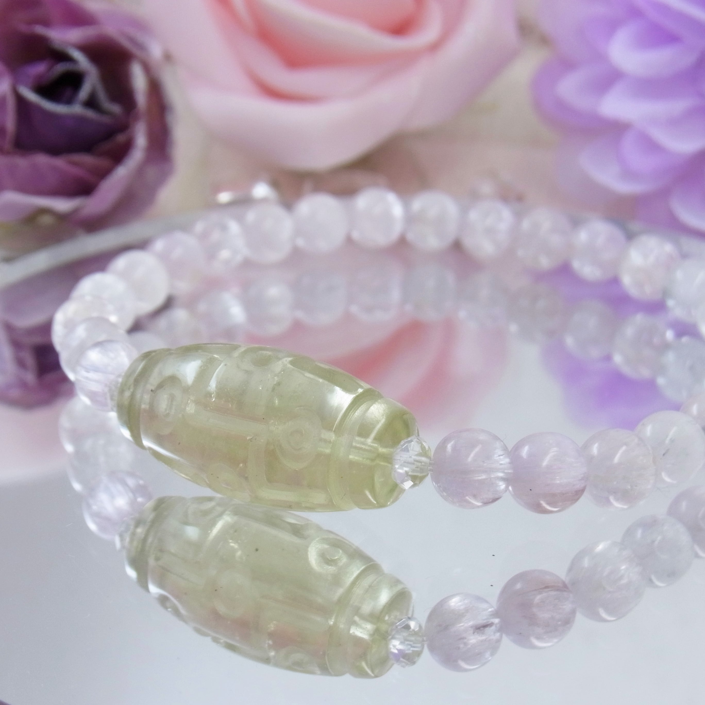 #リビアングラス #天珠 #九眼天珠 #クンツァイト #ヒーリング #癒し #love #beauty #美しい #愛 #ラベンダー #ミルキー #薄紫 #大人色 #春夏 #秋冬 #オールシーズン #おでかけ #フォーマル #上品 #大人可愛い #天然石ブレスレット #天然石アクセサリー #ねこの夢 #LarimarMJ