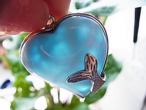 希少なトップクオリティ、くじらのかくれんぼ ハート&ホエールテールペンダント、