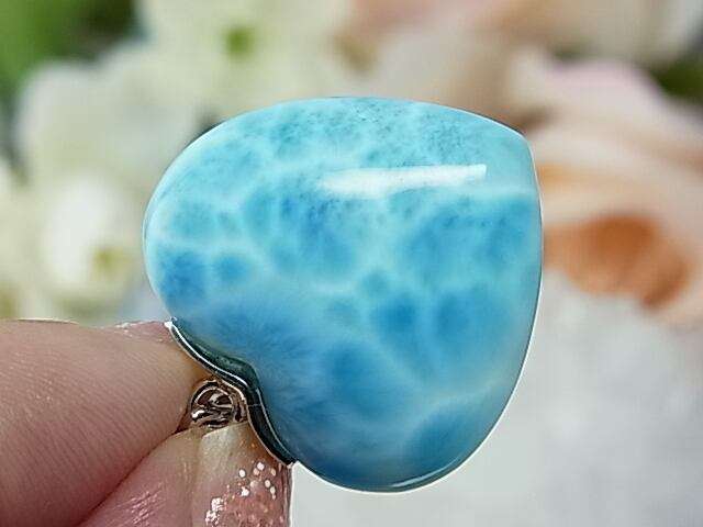 ◆こちらのラリマーは、可愛いぷっくりなハート型とバランスのよい波模様がとても美しいお品です。
