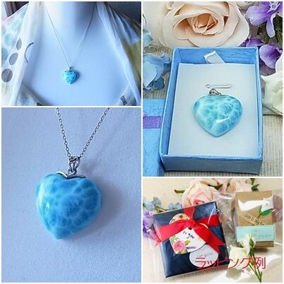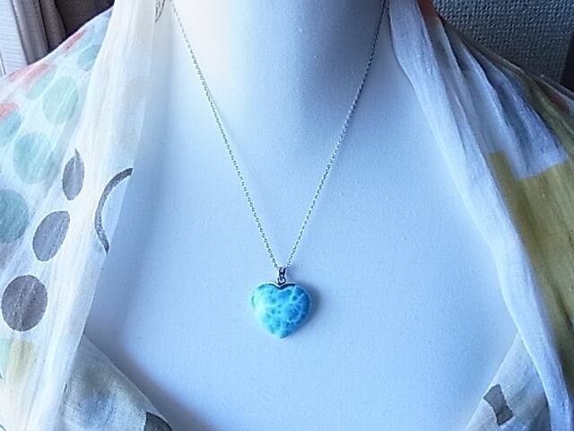 パッと目を惹く 大粒ハートラリマーペンダント(ネックレス)です。