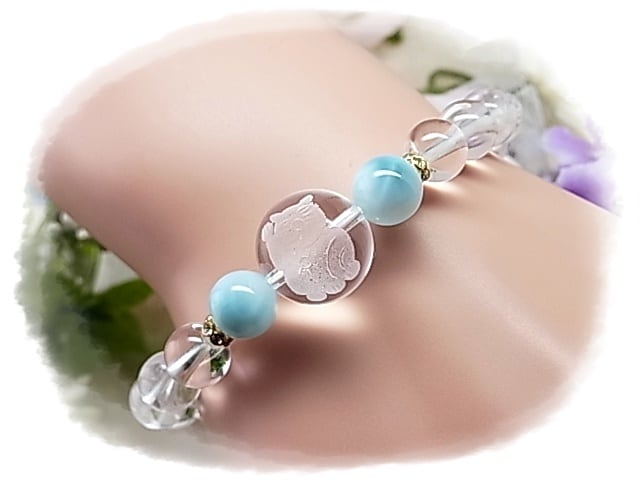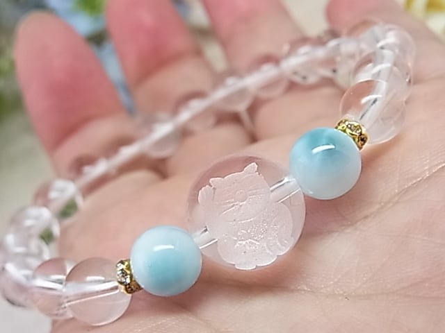 縁起のよい 招き猫 ラリマーブレスレット、いかがでしょうか?