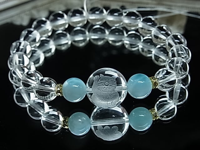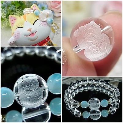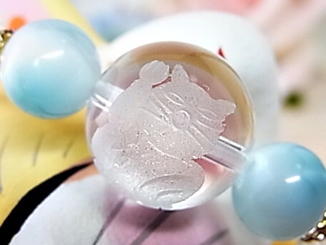 ◆縁起のよい 招き猫の彫刻が施された、大粒水晶 約14㎜に、