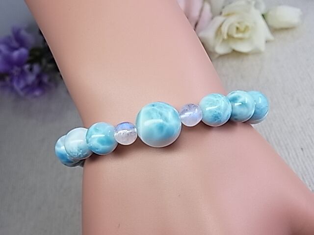 #ラリマー #larimar #ムーンストーン #レインボームーンストーン #天然石 #破格値 #高品質 #トップクオリティ #一点もの #ブレスレット #ご褒美 #パワーストーン #ブルー #波 #海 #シック #フォーマル #希少 #愛と平和 #心の安らぎ #癒し#心 #リラックス #ギフト #プレゼント #爽やか #ねこの夢 #LarimarMJ