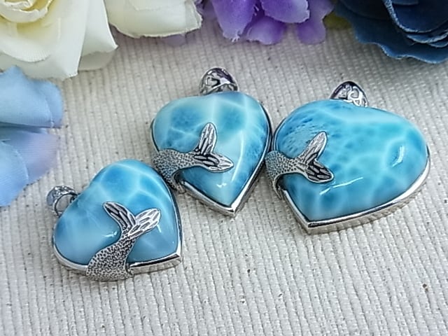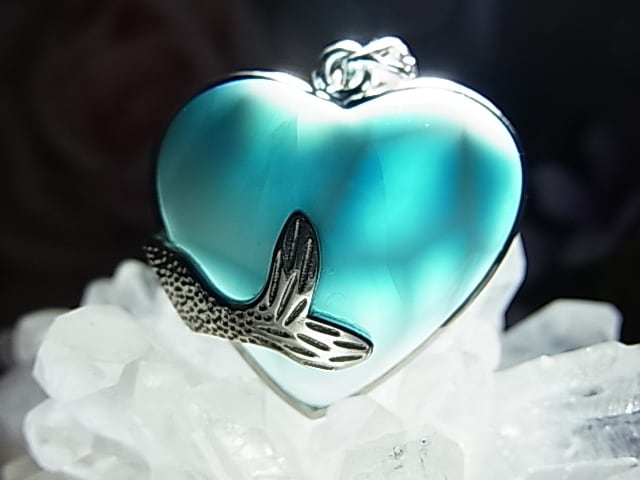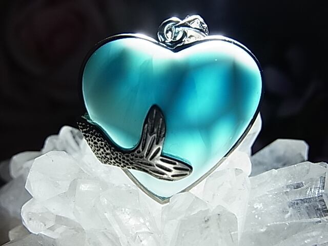 ぷっくりハートに深めブルー、波間に施されたsilver925のホエールテールデザインが、
