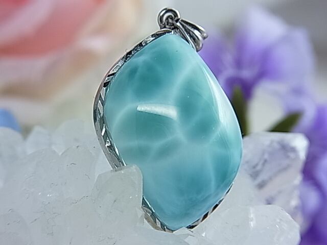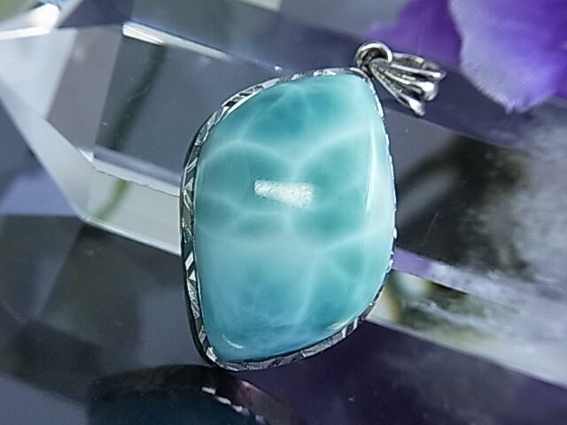 ブルーと 美波模様が楽しめる 美品 ラリマーペンダントです。
