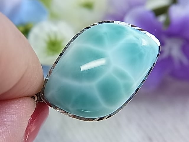 ◆カリビアンブルーが美しく、ラリマー特有の綺麗な美波模様も バランスよく入る ラリマーです。