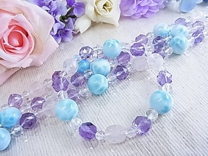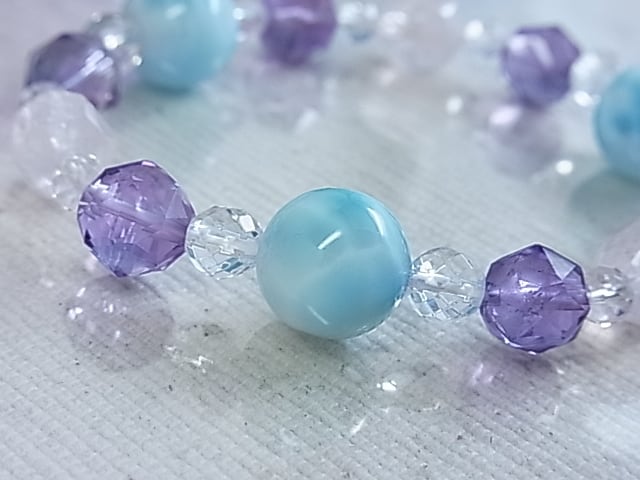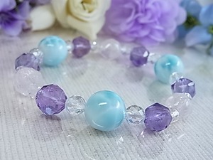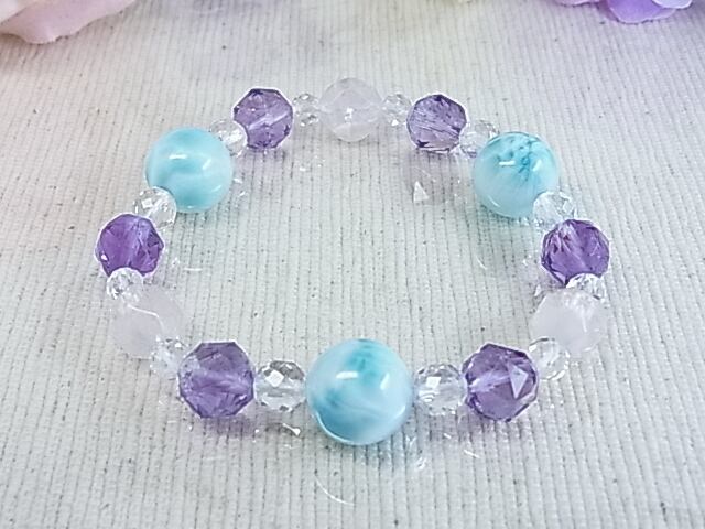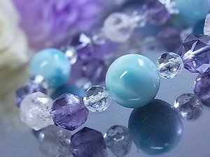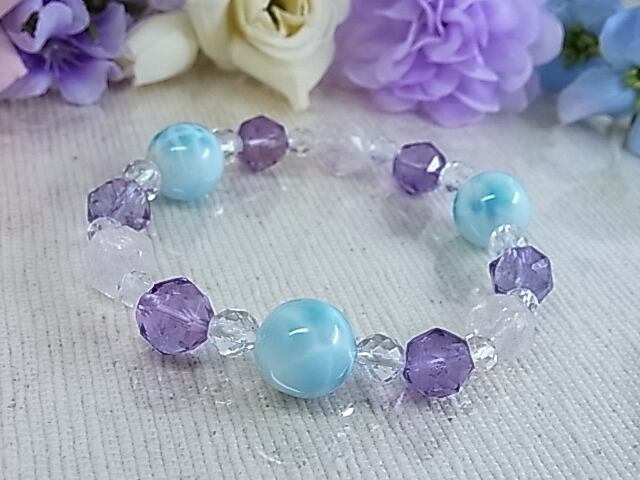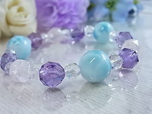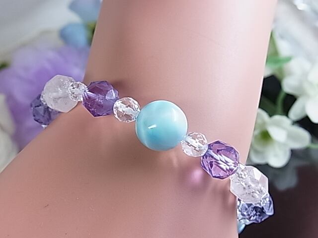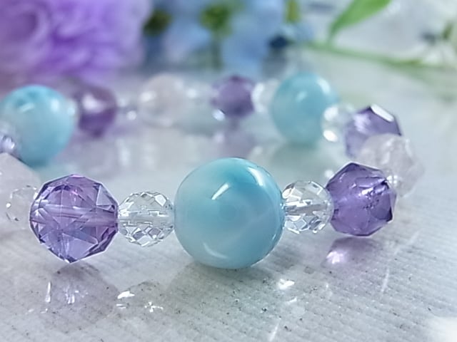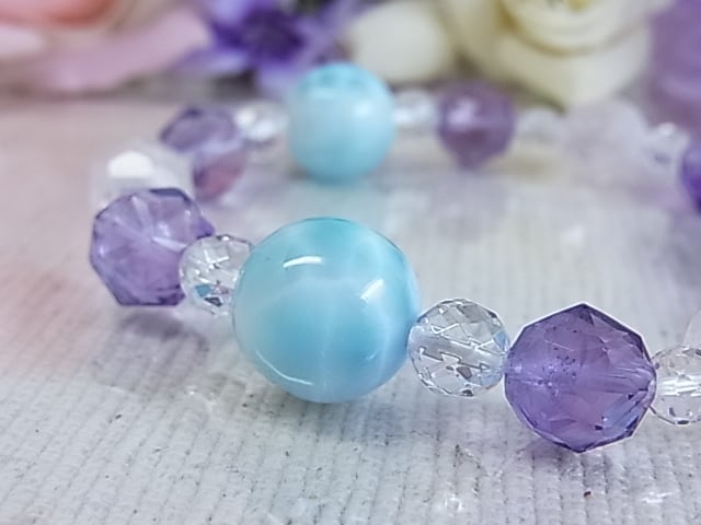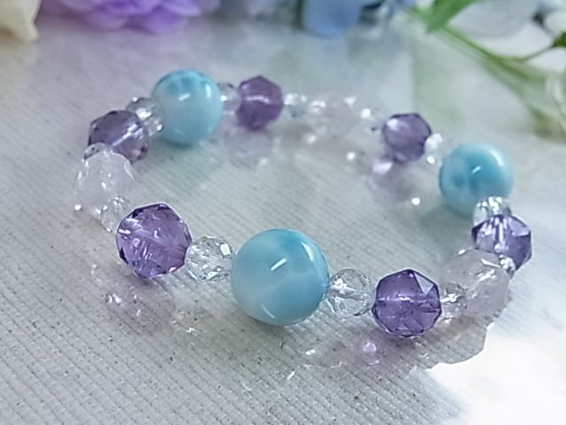 #ラリマー #larimar #宝石質 #アメジスト #ローズアメジスト #ローズクォーツ #水晶 #天然水晶 #大粒 #ブルー #薄紫色 #ラベンダーカラー #スターラウンドカット #煌めき #パステル #お洒落 #美しい #大人女子 #春 #夏 #秋 #冬 #オールシーズン #ゴムブレス #プレゼント #ねこの夢 #LarimarMJ