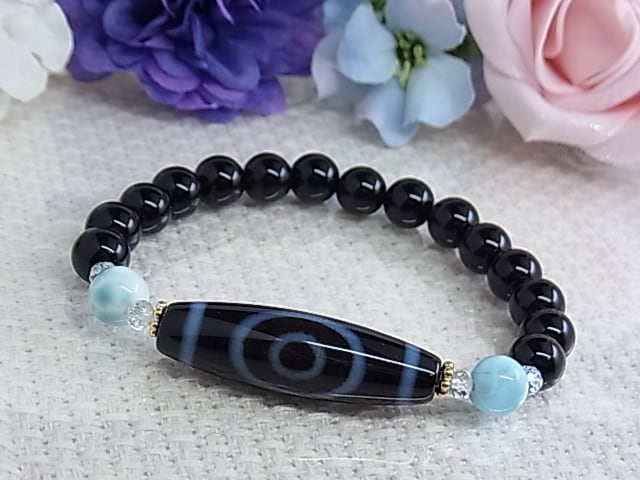 #ラリマー #一眼天珠 #モリオン #黒水晶 #天然水晶 #世界三大ヒーリングストーン #ブルー #不思議 #黒 #シック #大人 #お洒落 #上品 #珍しい #オールシーズン #めのう #瑪瑙 #天珠 #スキンジュエリー #シンプル #毎日つけたい #シャープ #モノトーン #高級感 #プレゼント #お守り #ゴムブレス #天然石アクセサリー #天然石ブレスレット #ねこの夢 #LarimarMJ