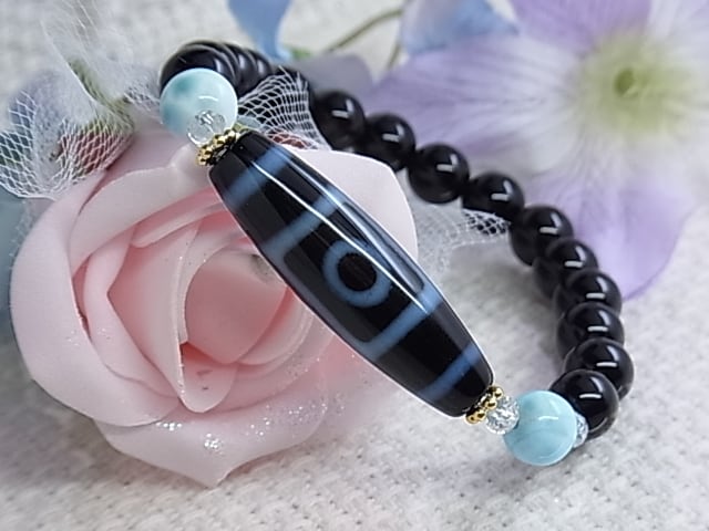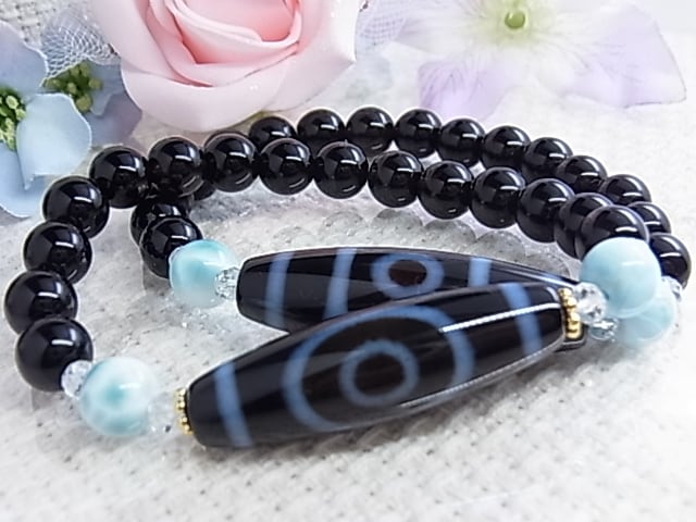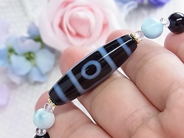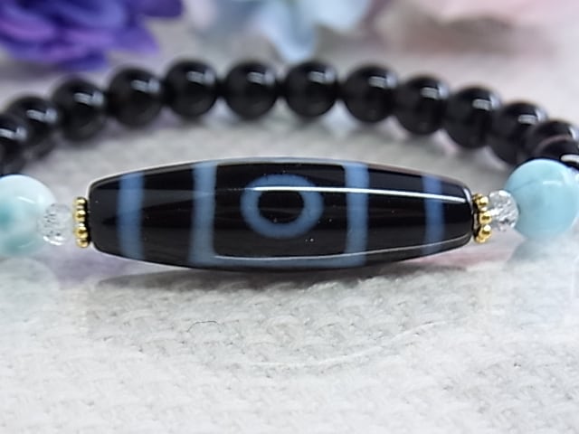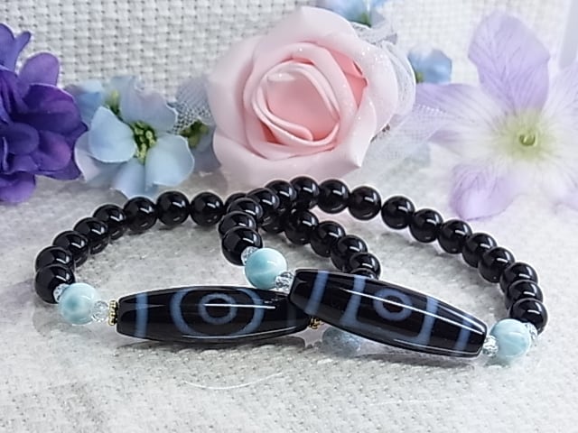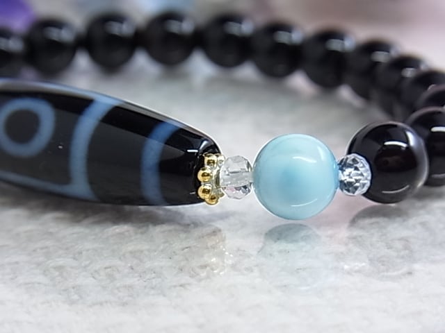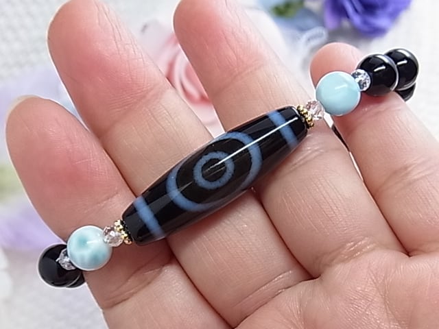 ◆一眼天珠サイドの ラリマーは、ぷるぷると艶感のあるものを
