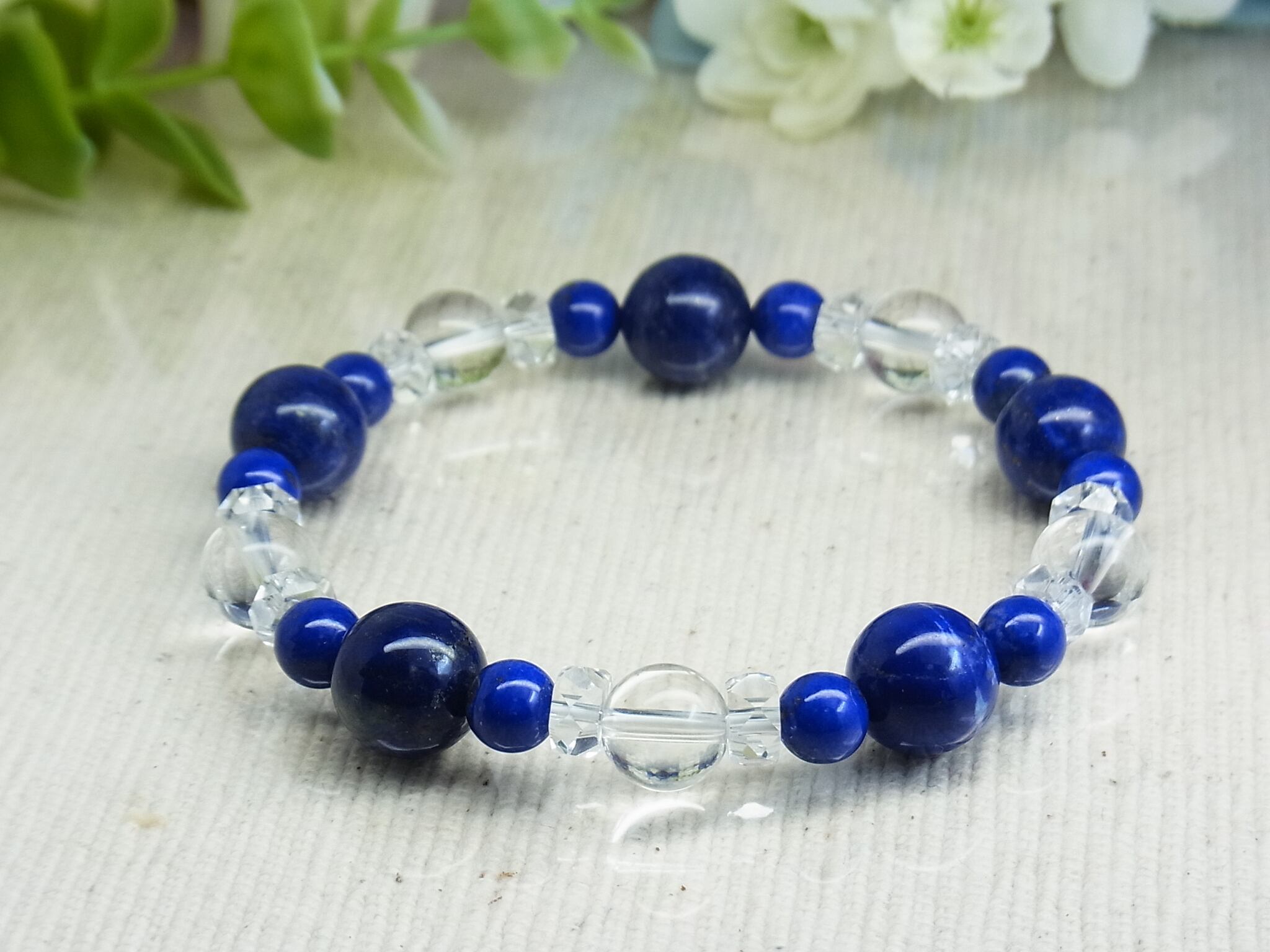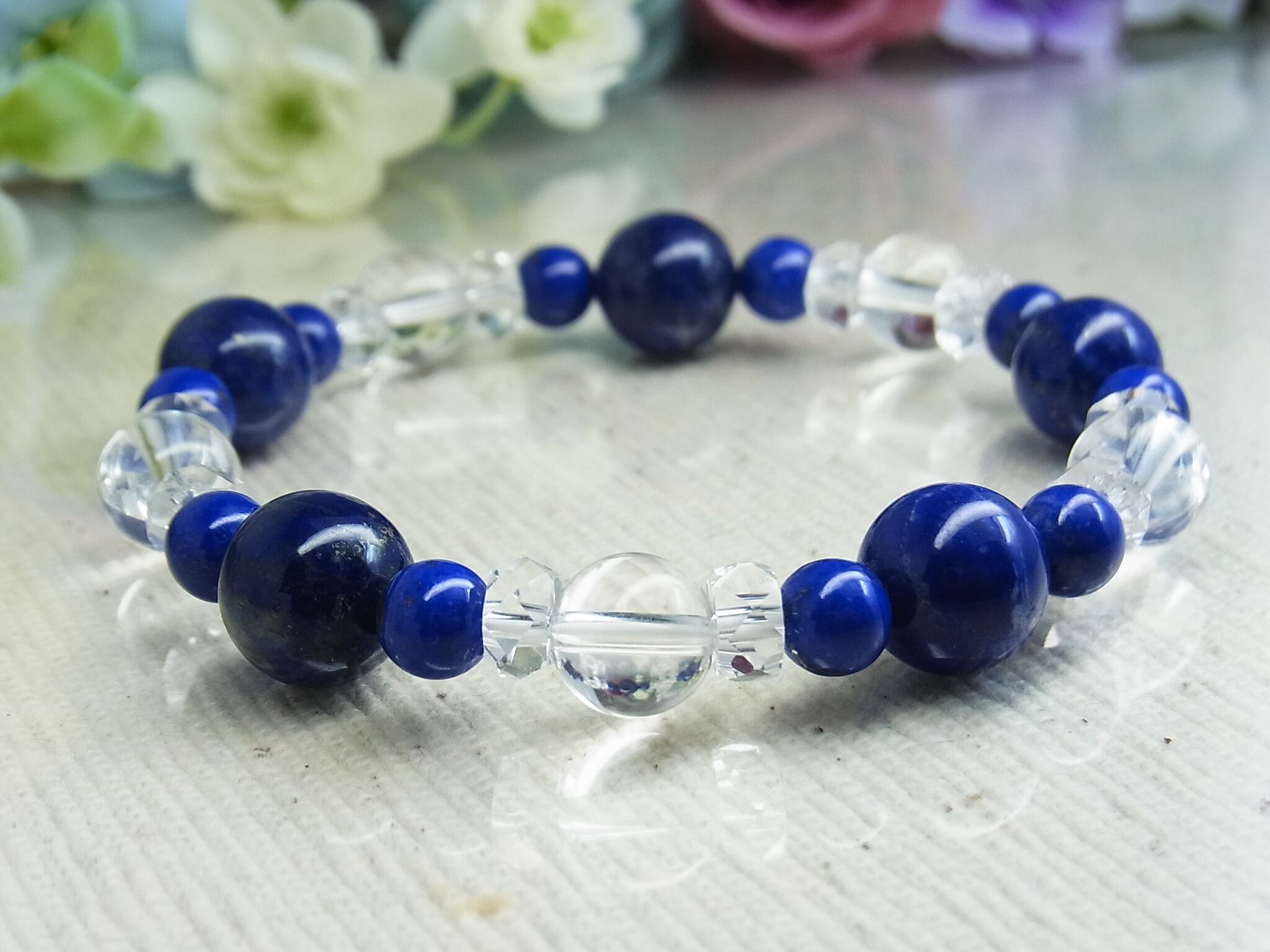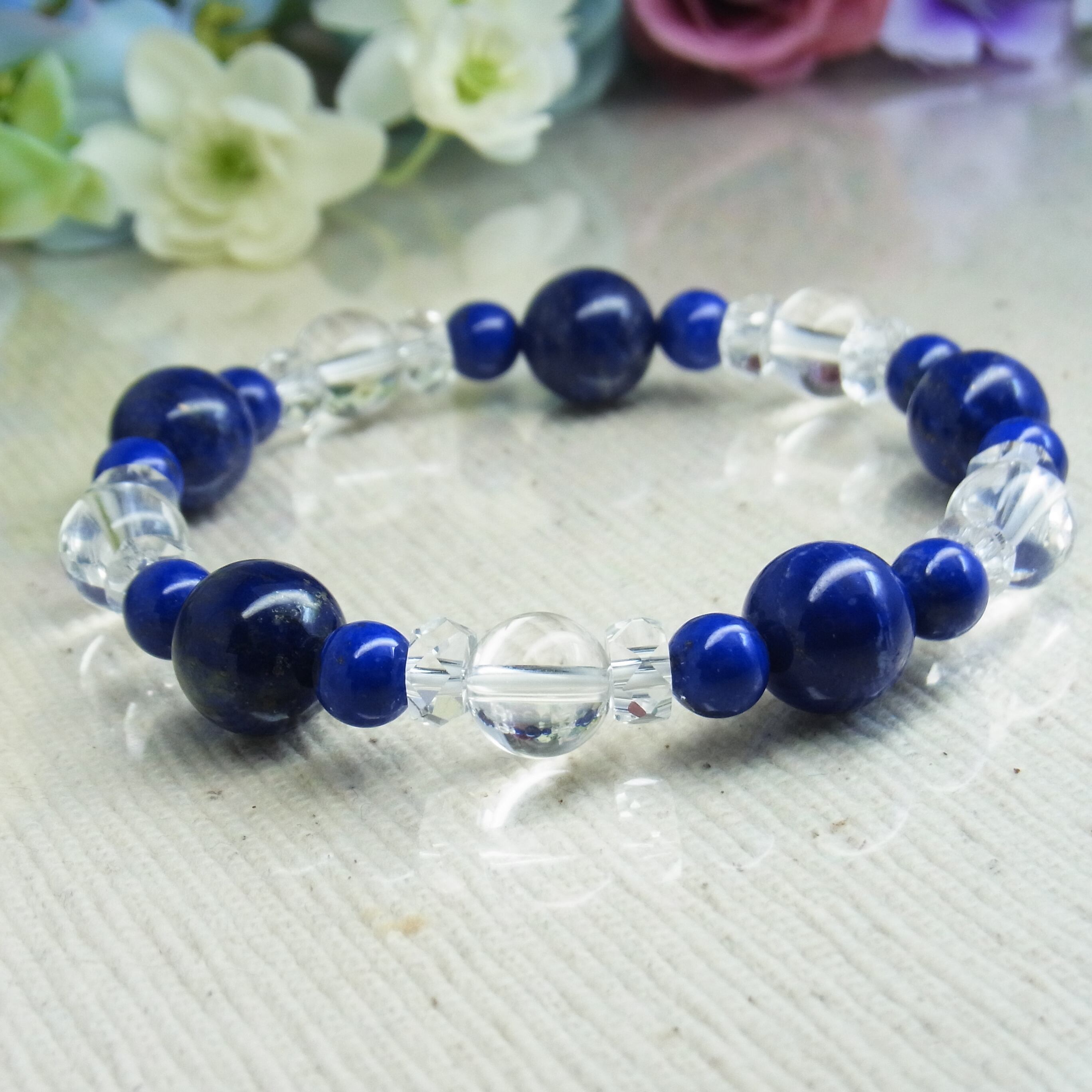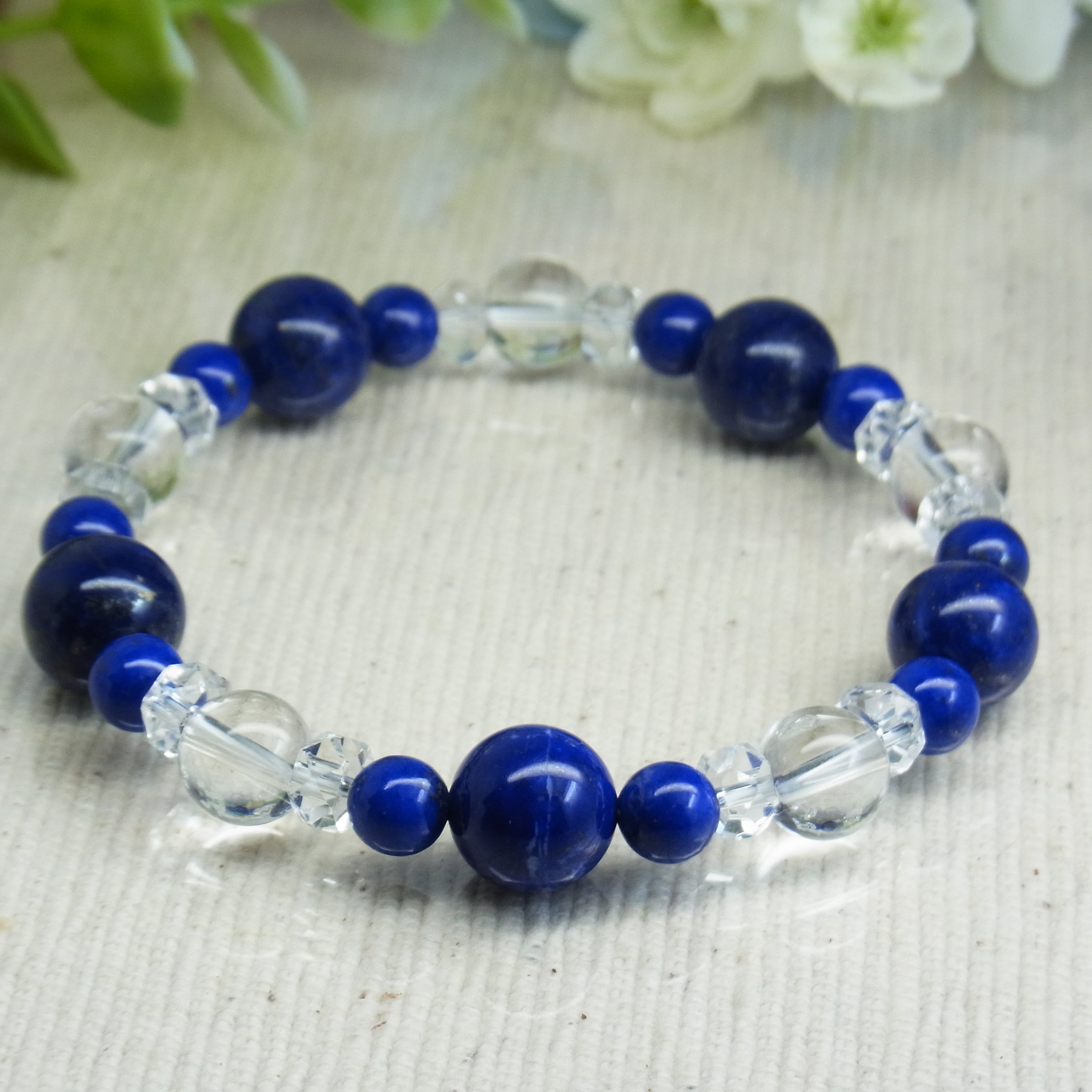 高品質ラピスラズリと 天然水晶のブレスレット、いかがでしょうか?