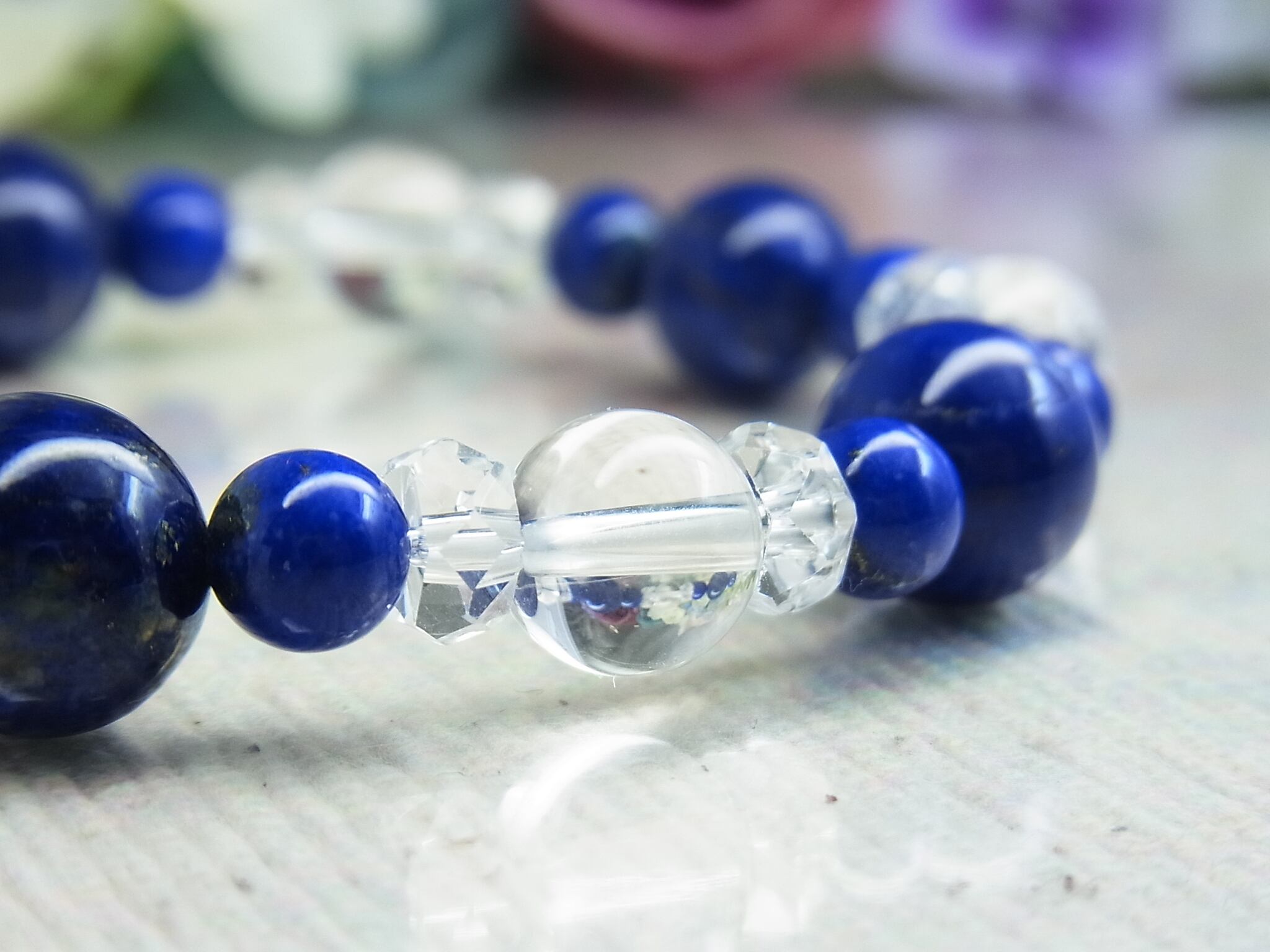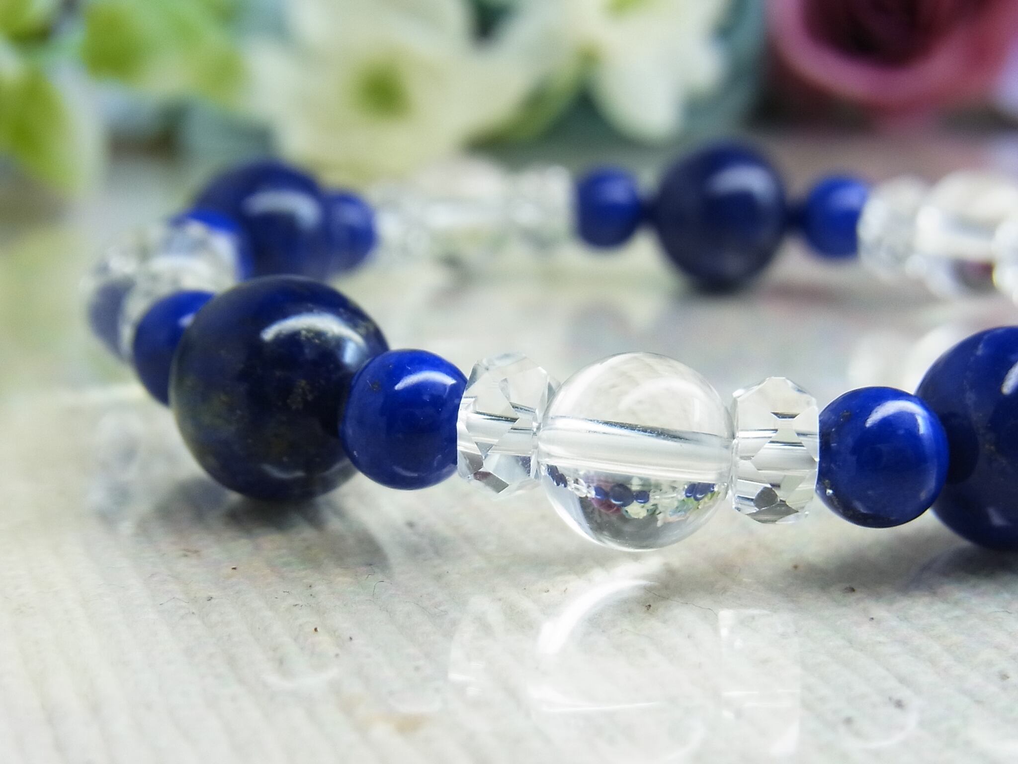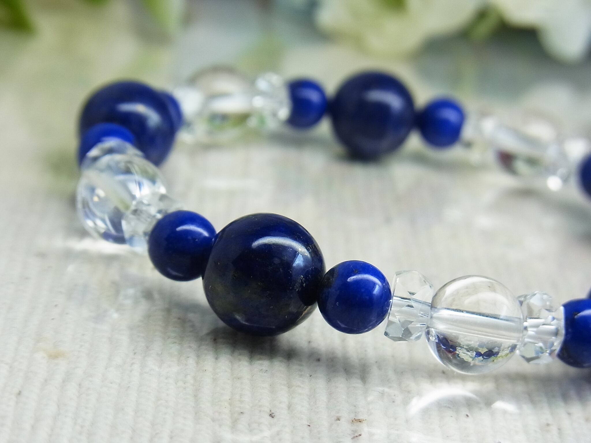 高品質ラピスラズリと 天然水晶のブレスレット、いかがでしょうか?