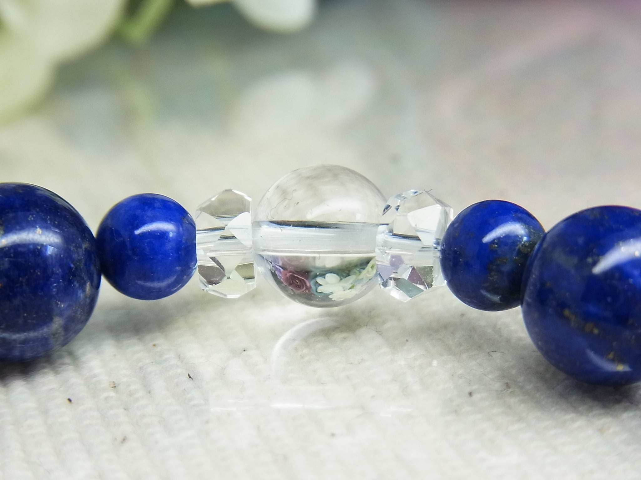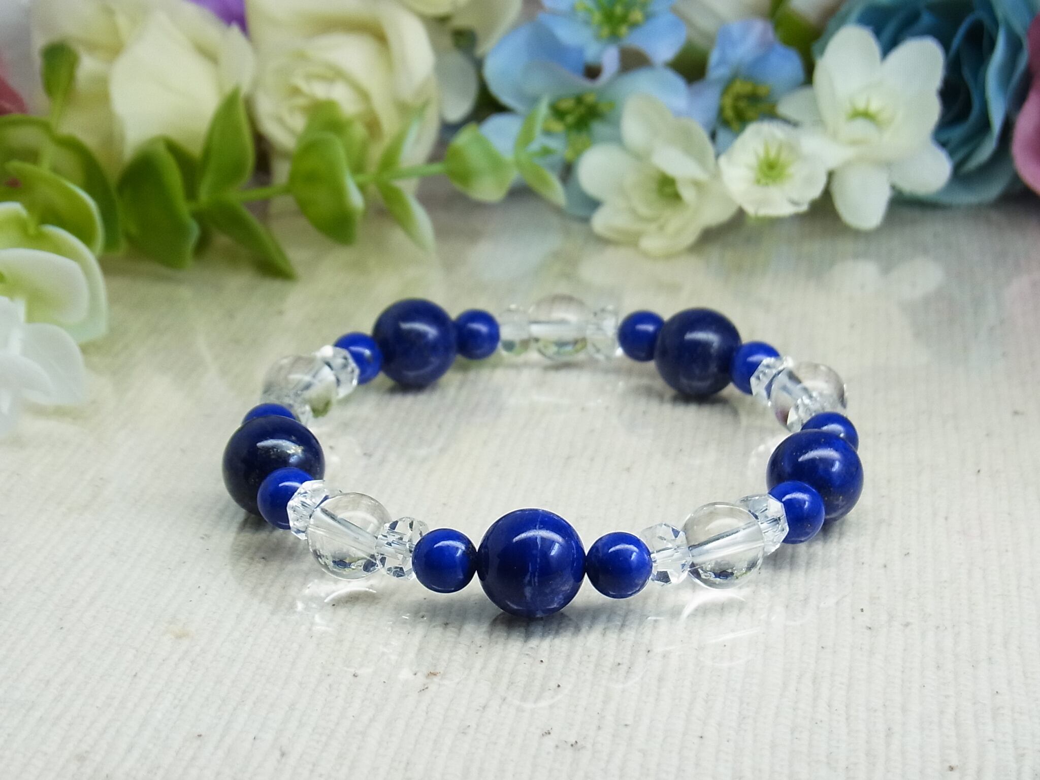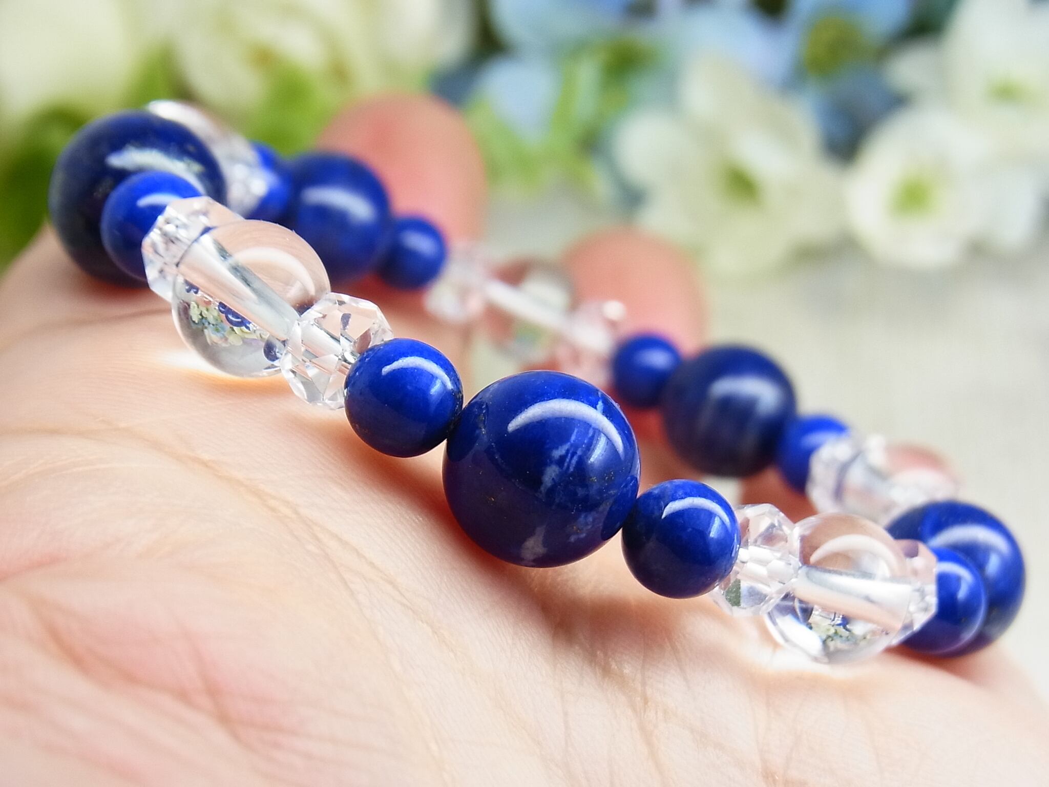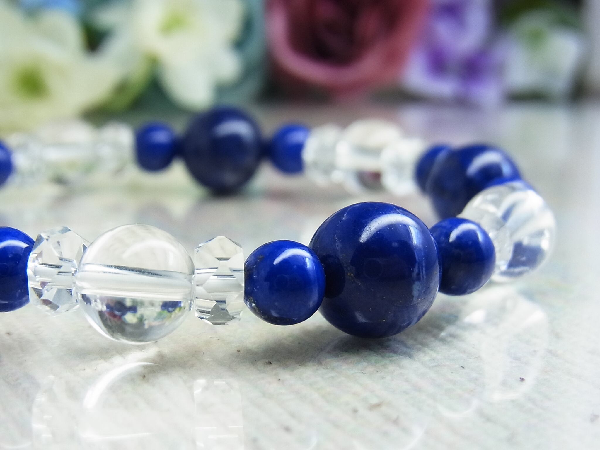 高品質ラピスラズリと 天然水晶のブレスレット、いかがでしょうか?