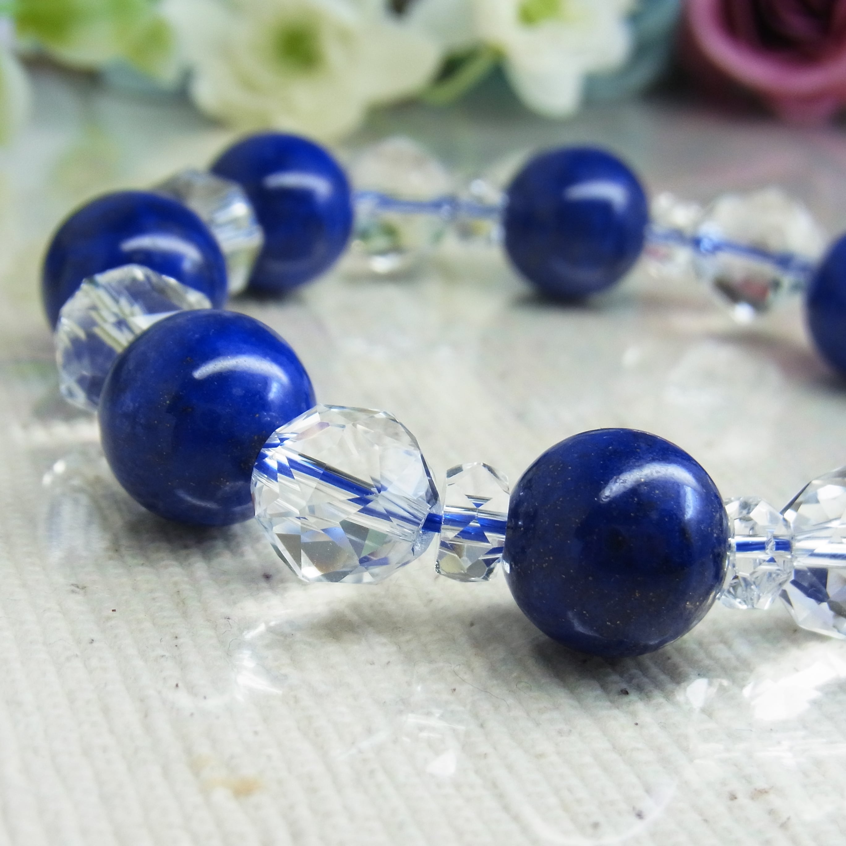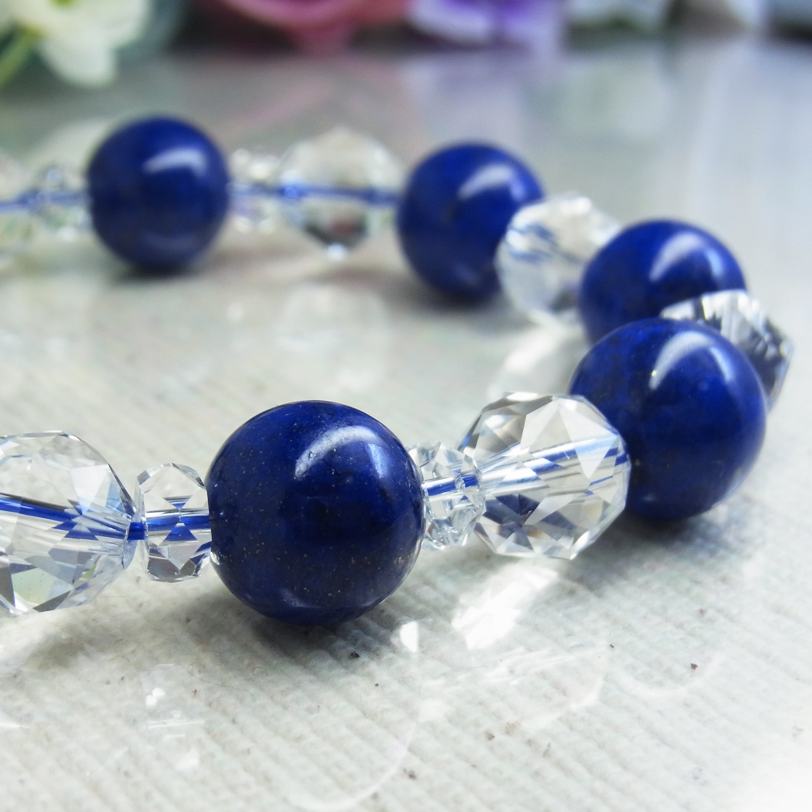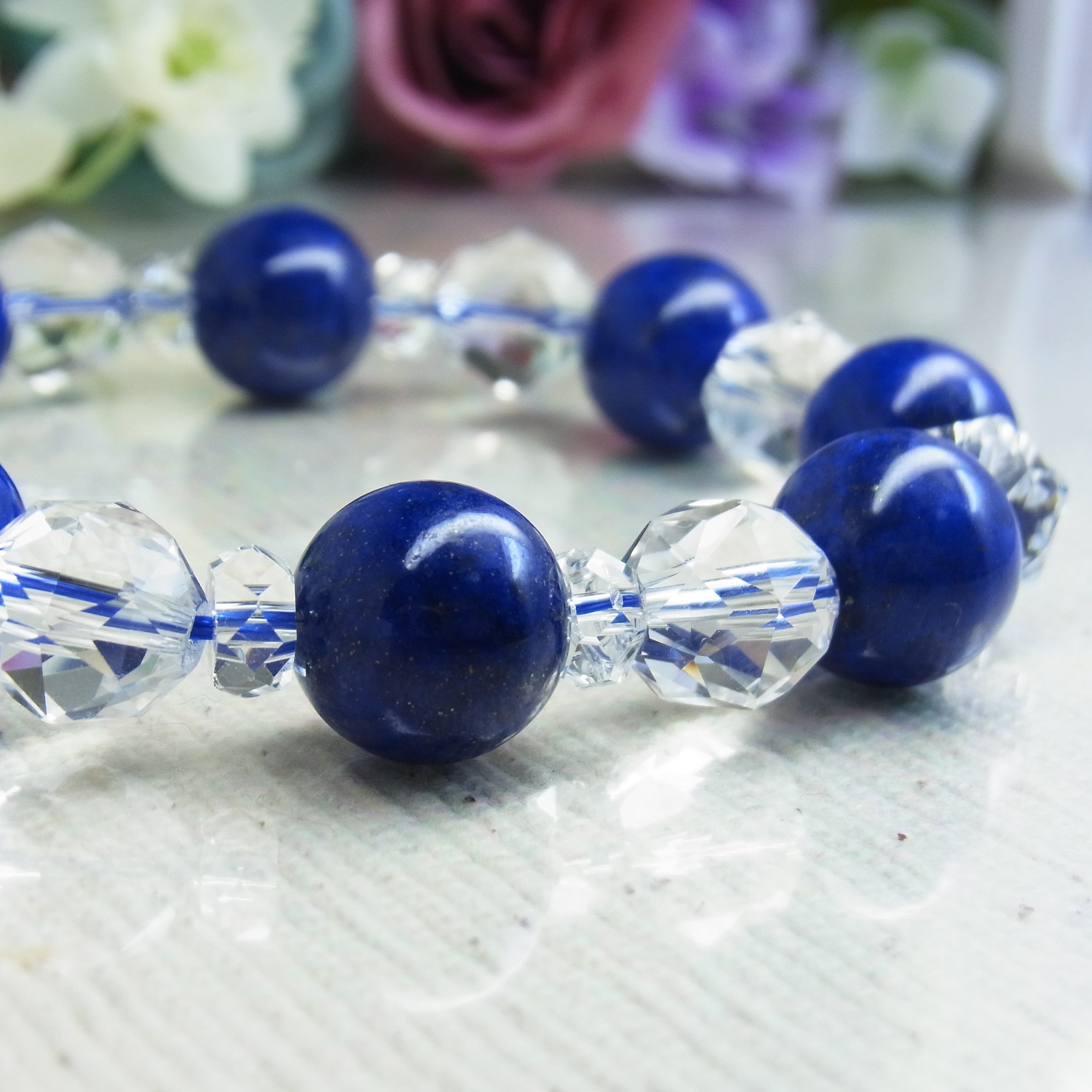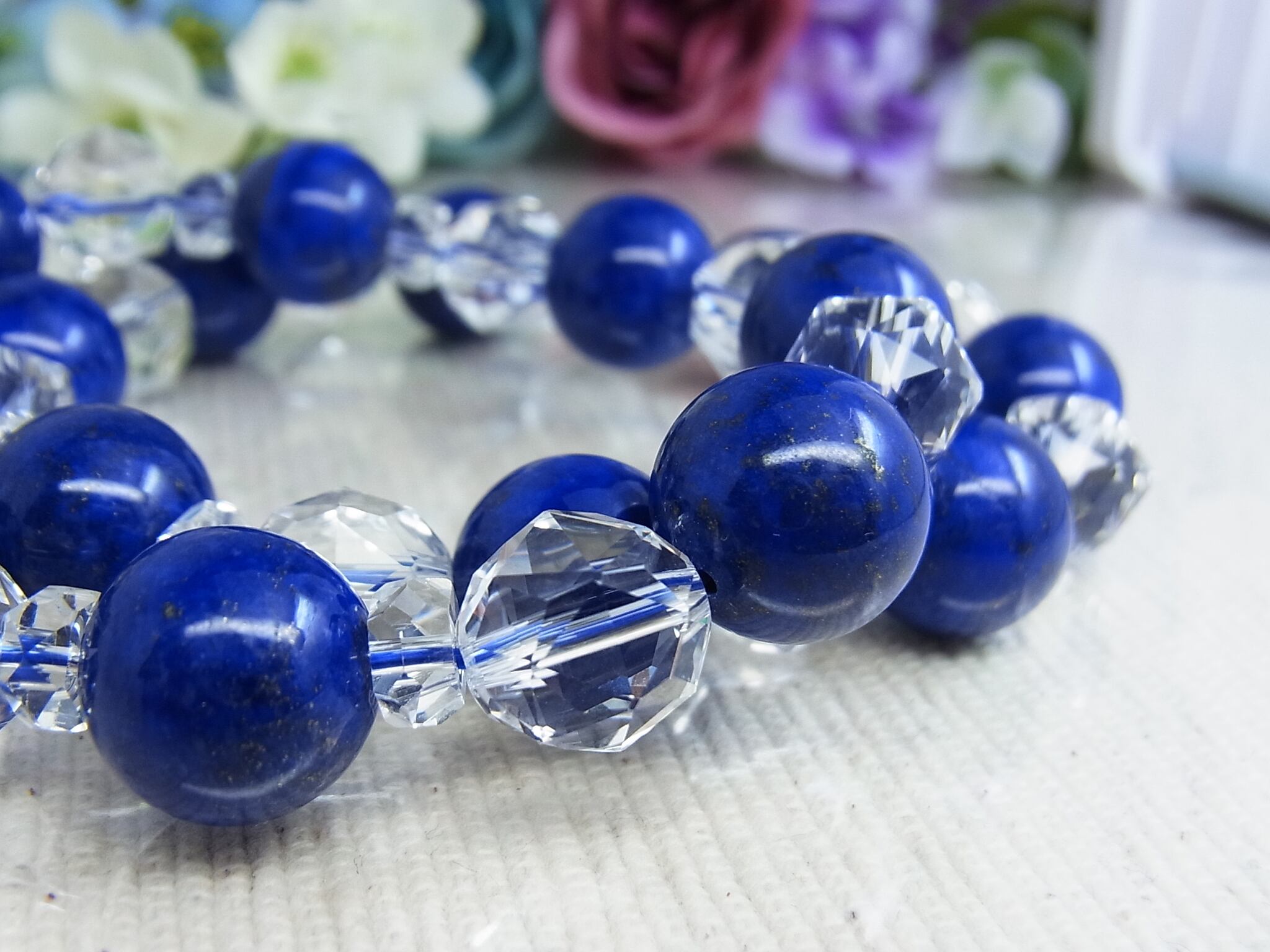 高品質 大粒 ラピスラズリと天然水晶のブレスレットいかがでしょうか?