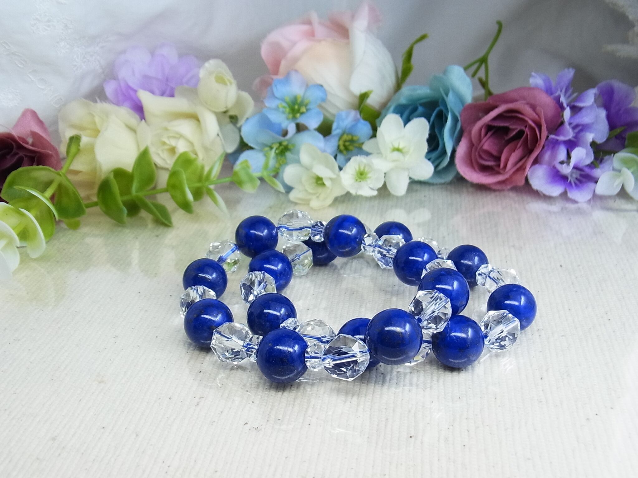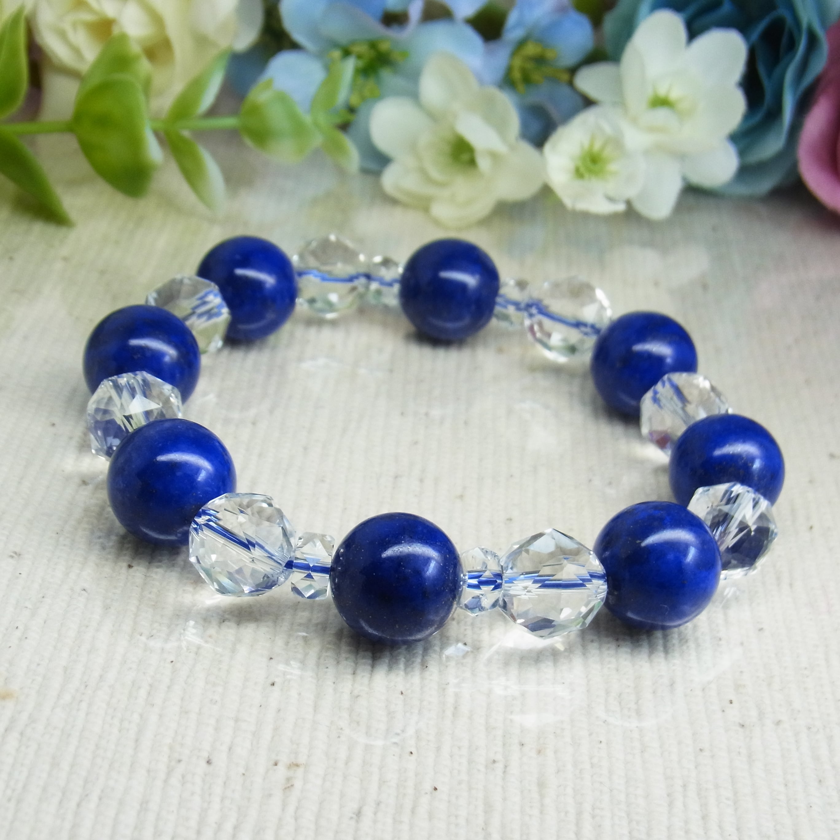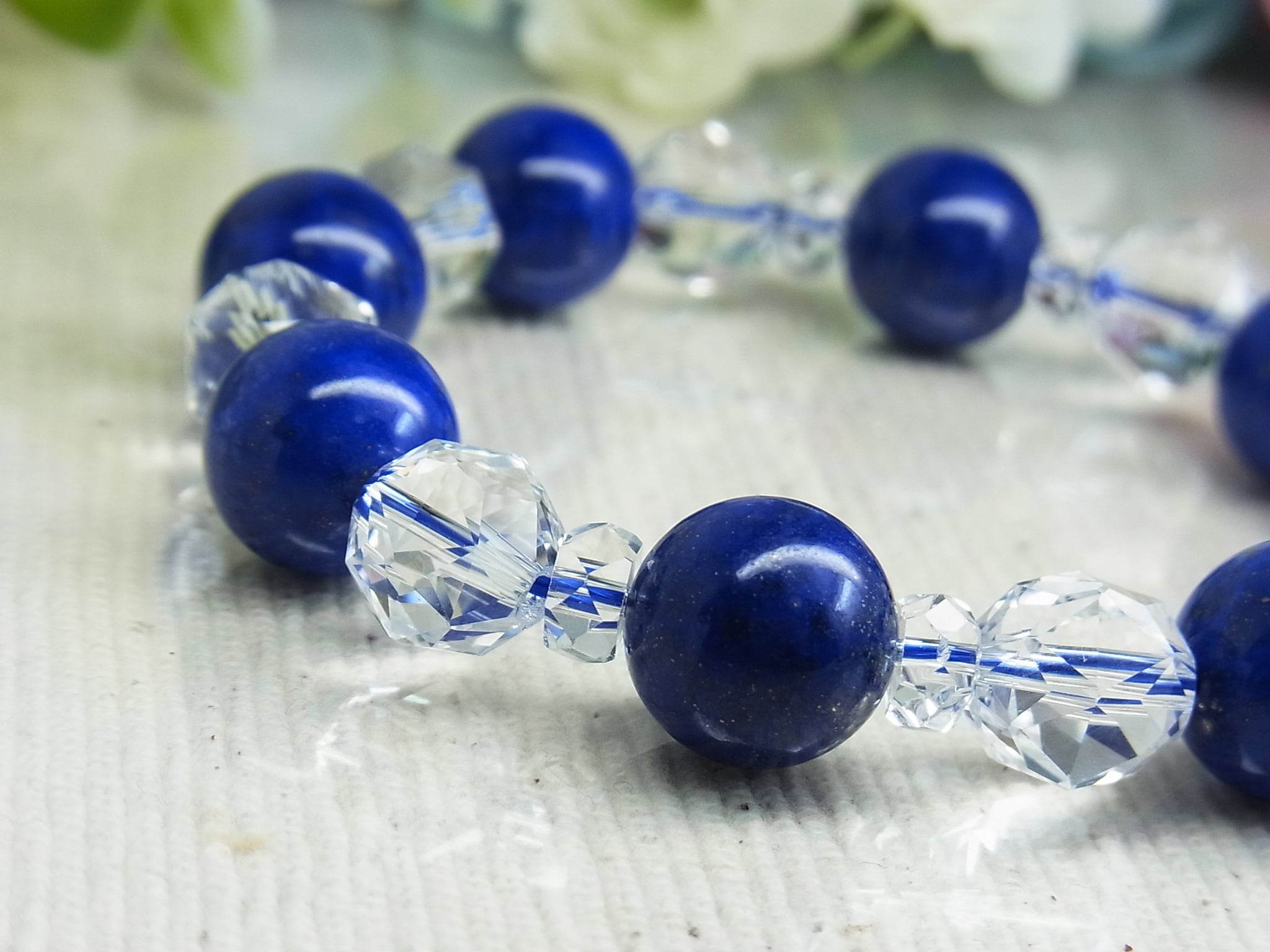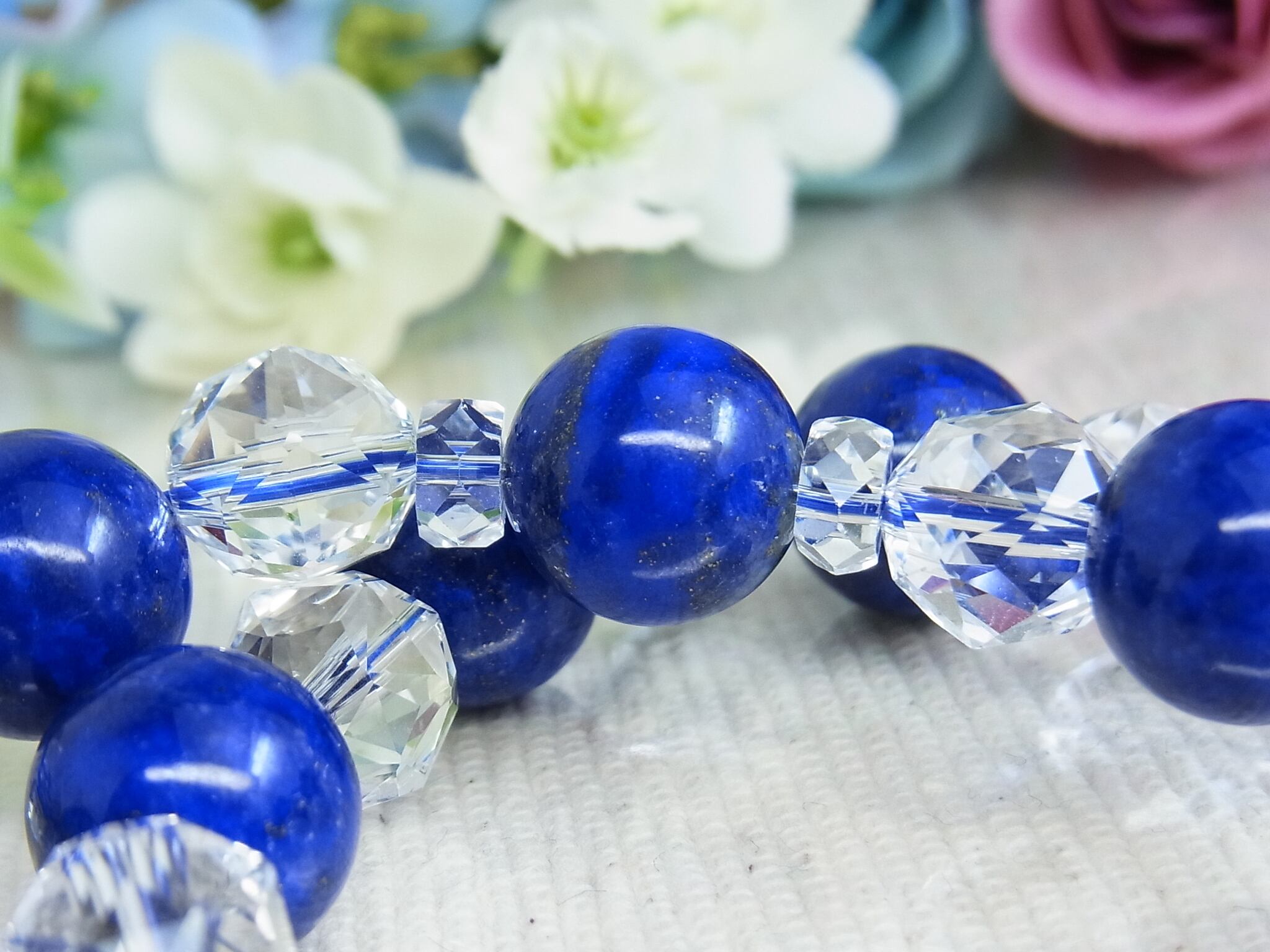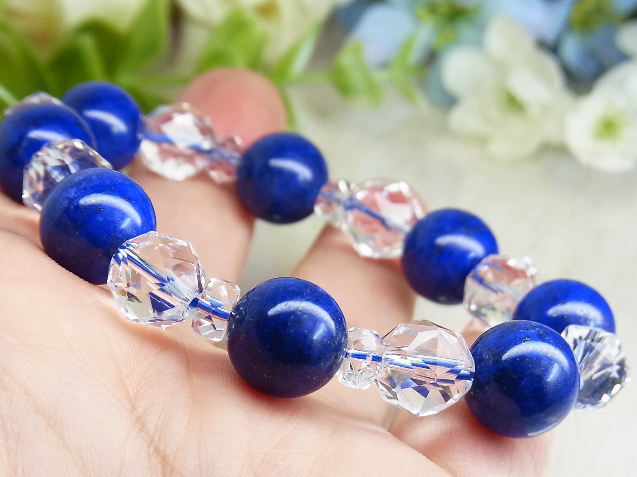 高品質 大粒 ラピスラズリと天然水晶のブレスレットいかがでしょうか?