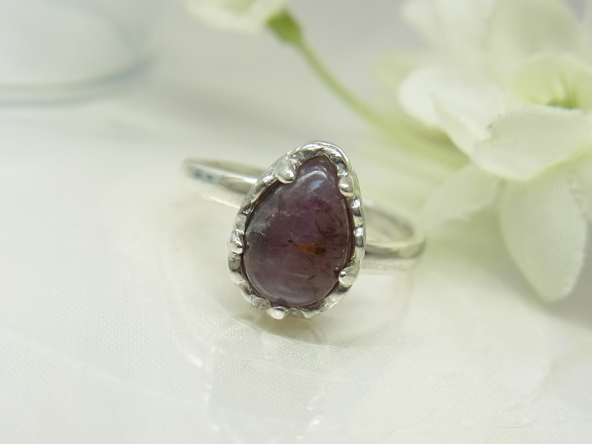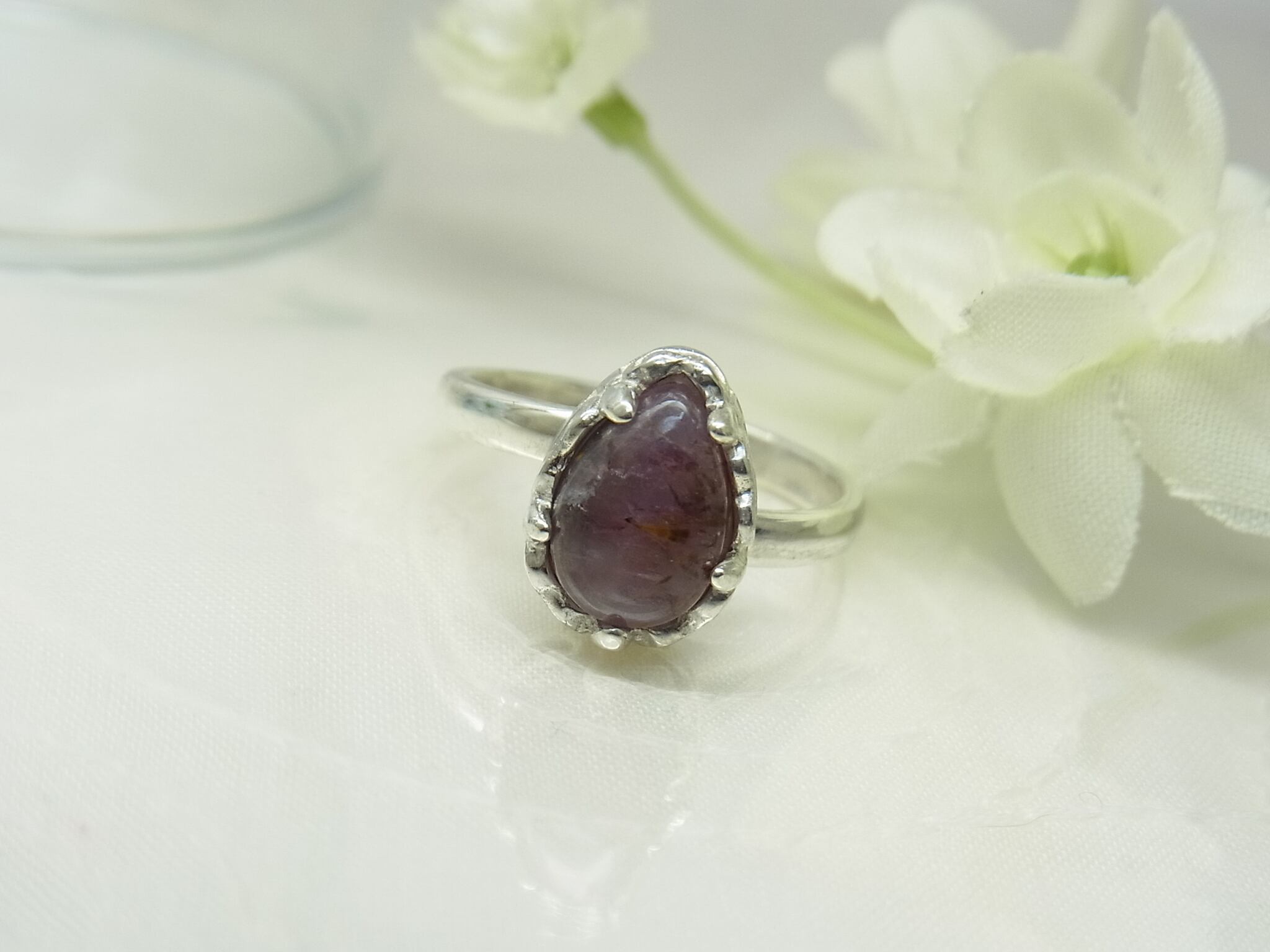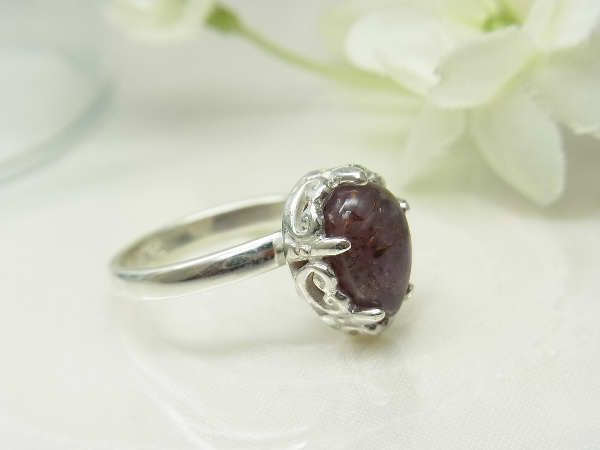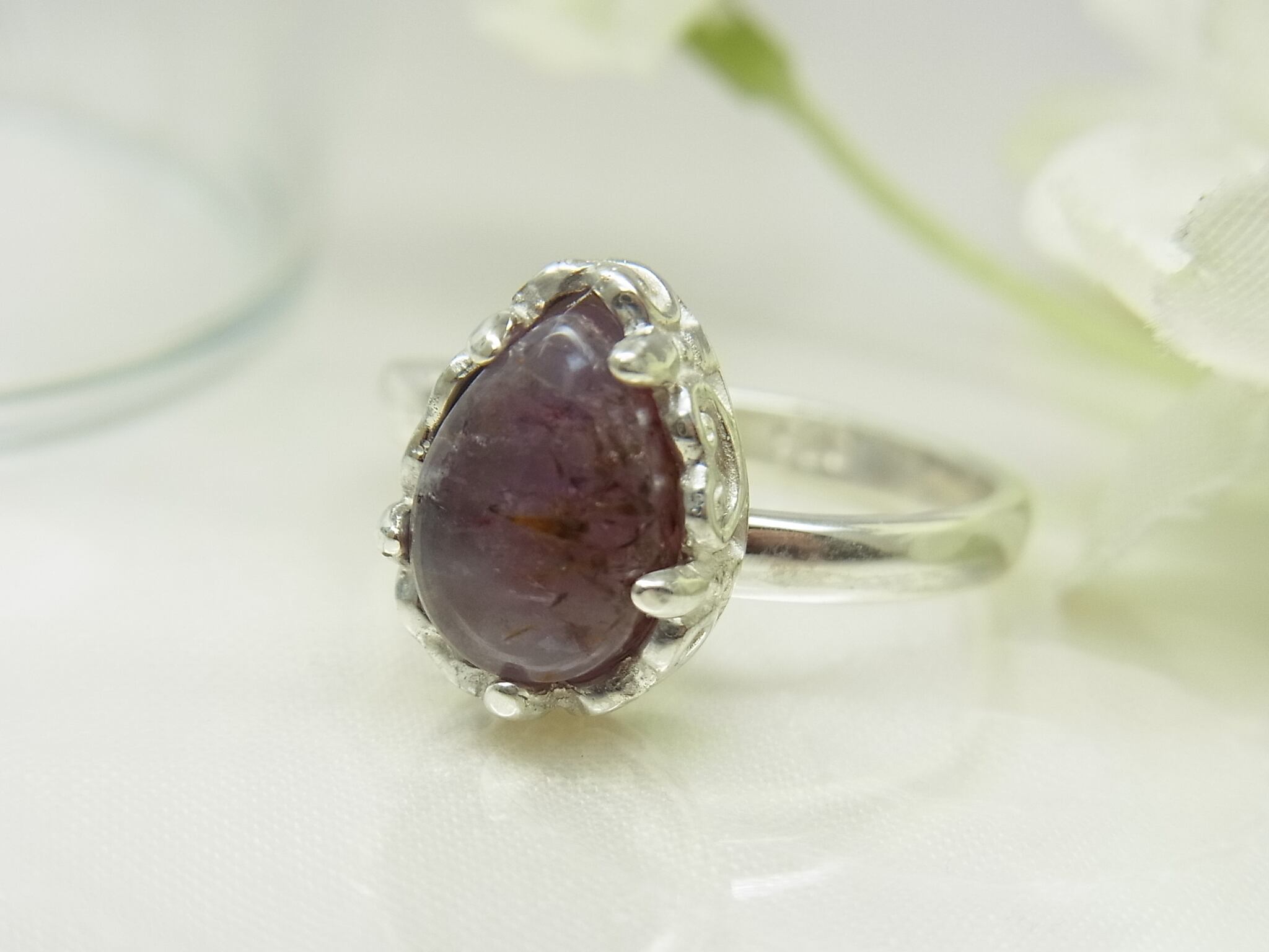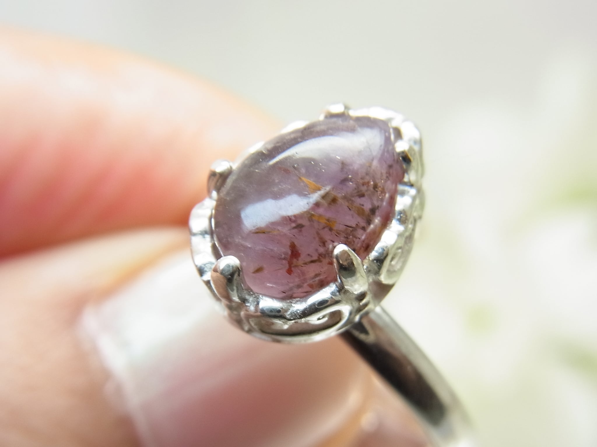 #カコクセナイトインアメジスト #エレスチャルクォーツ #スターリングシルバー #シルバー925 #バリシルバー #Balisilver #リング #指輪 #レース #南国 #大人可愛い #フェミニン #パープル #レッド #オリジナルデザイン #お洒落 #天然石リング #天然石アクセサリー #プレゼント #LarimarMJ #ねこの夢