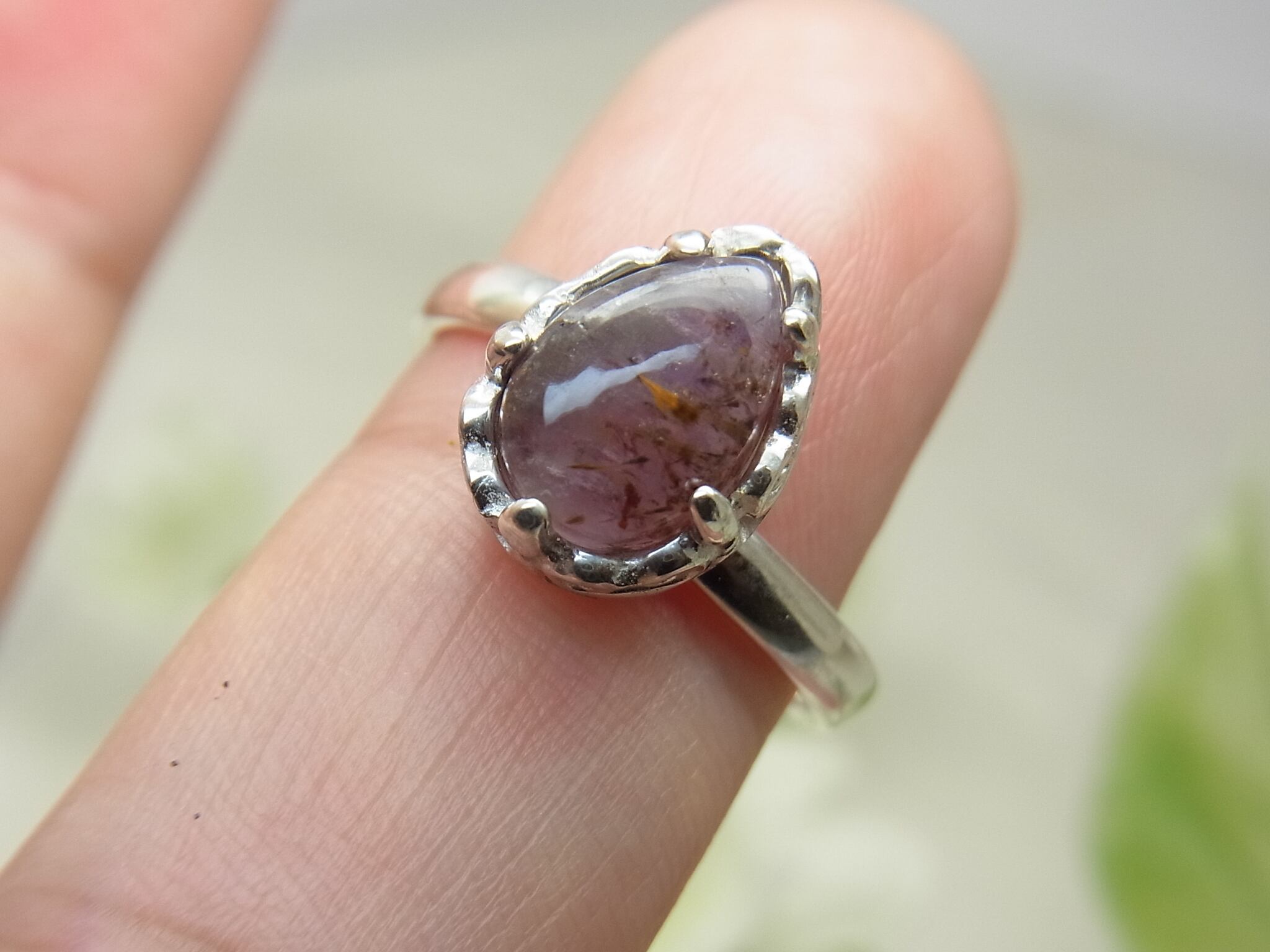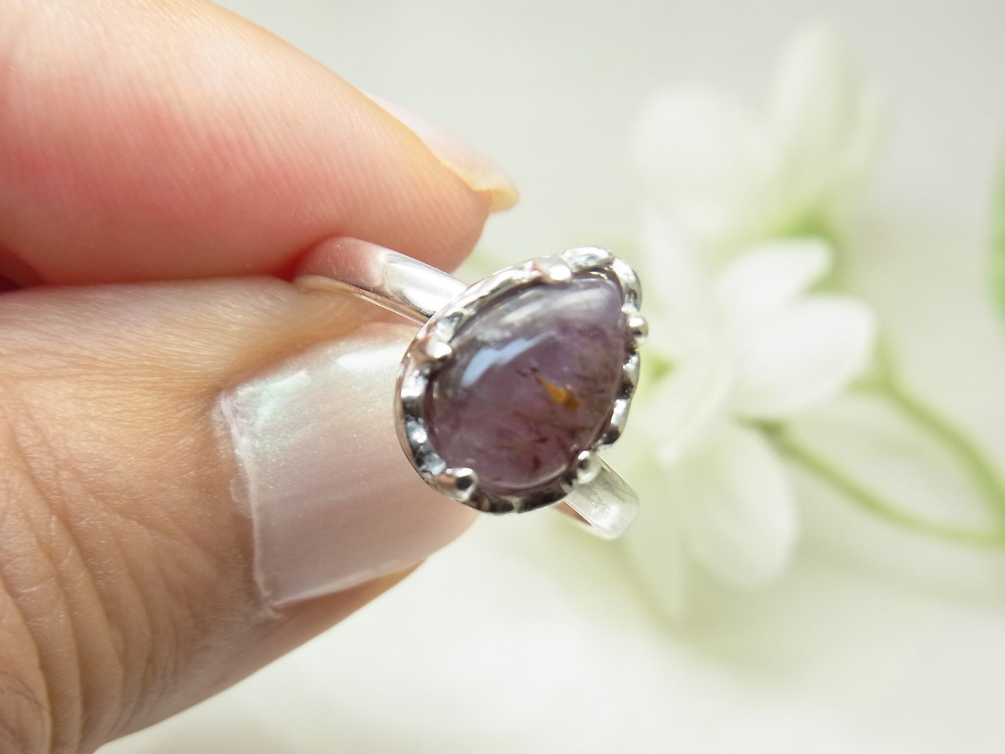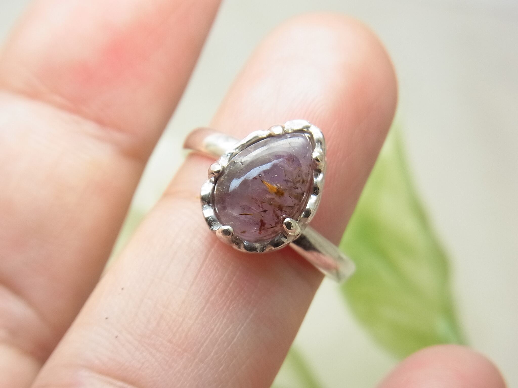カコクセナイトインアメジストと南国ムード漂う、バリシルバー925のリング、