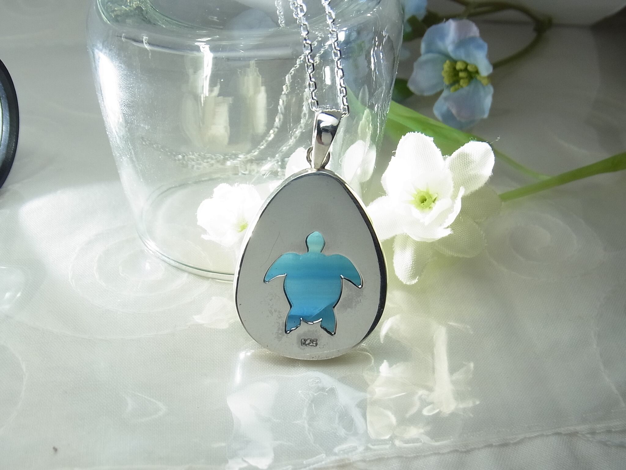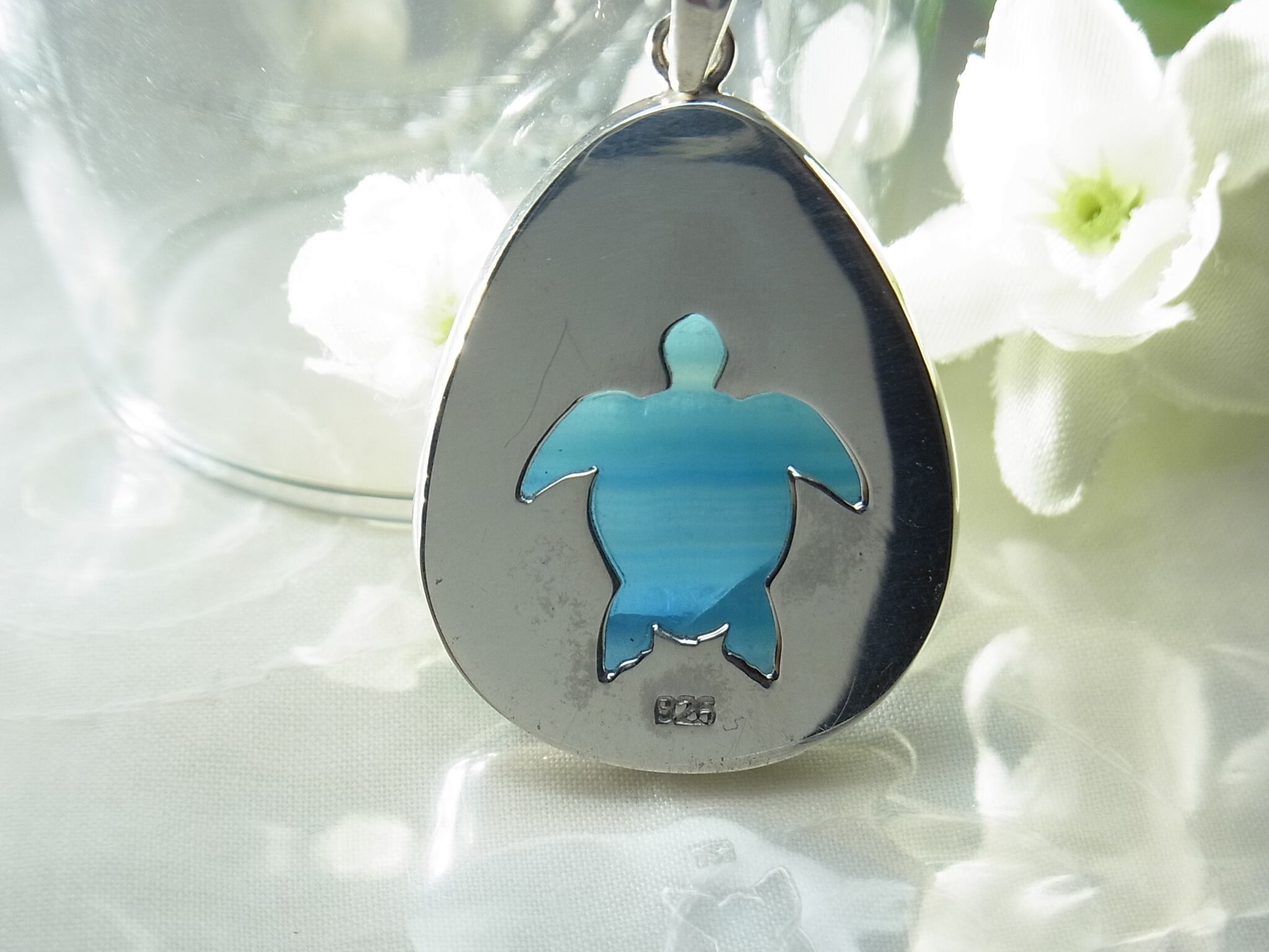 ブルーカルサイト&ホヌと、南国ムード漂うバリシルバー925のペンダントトップ、