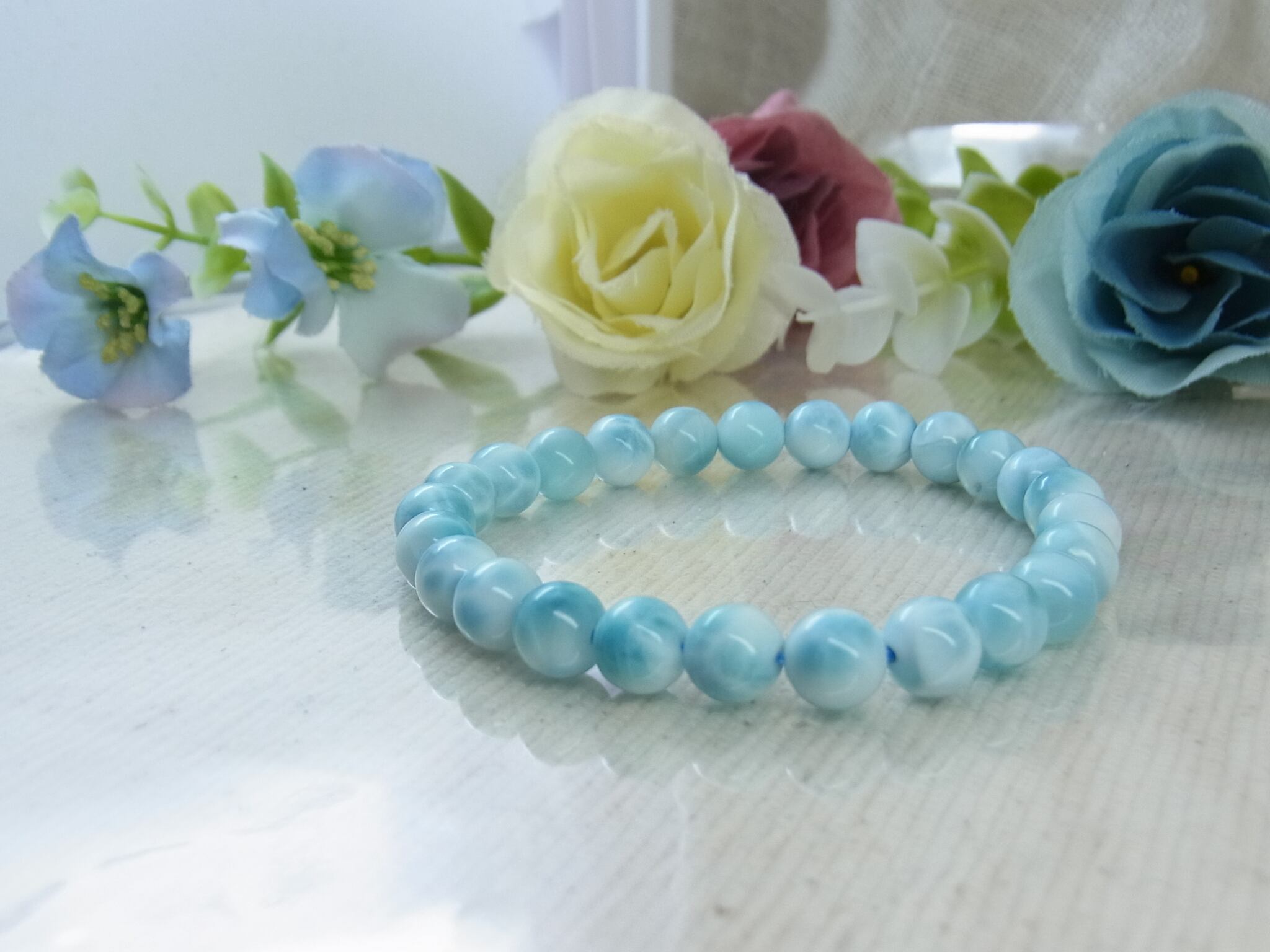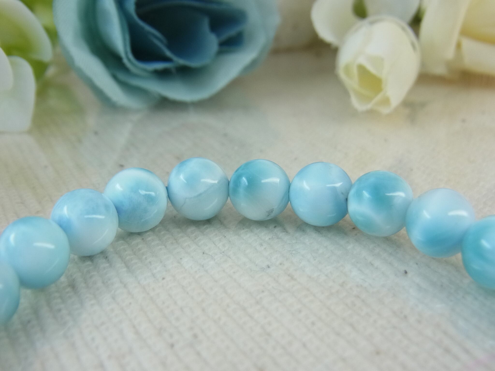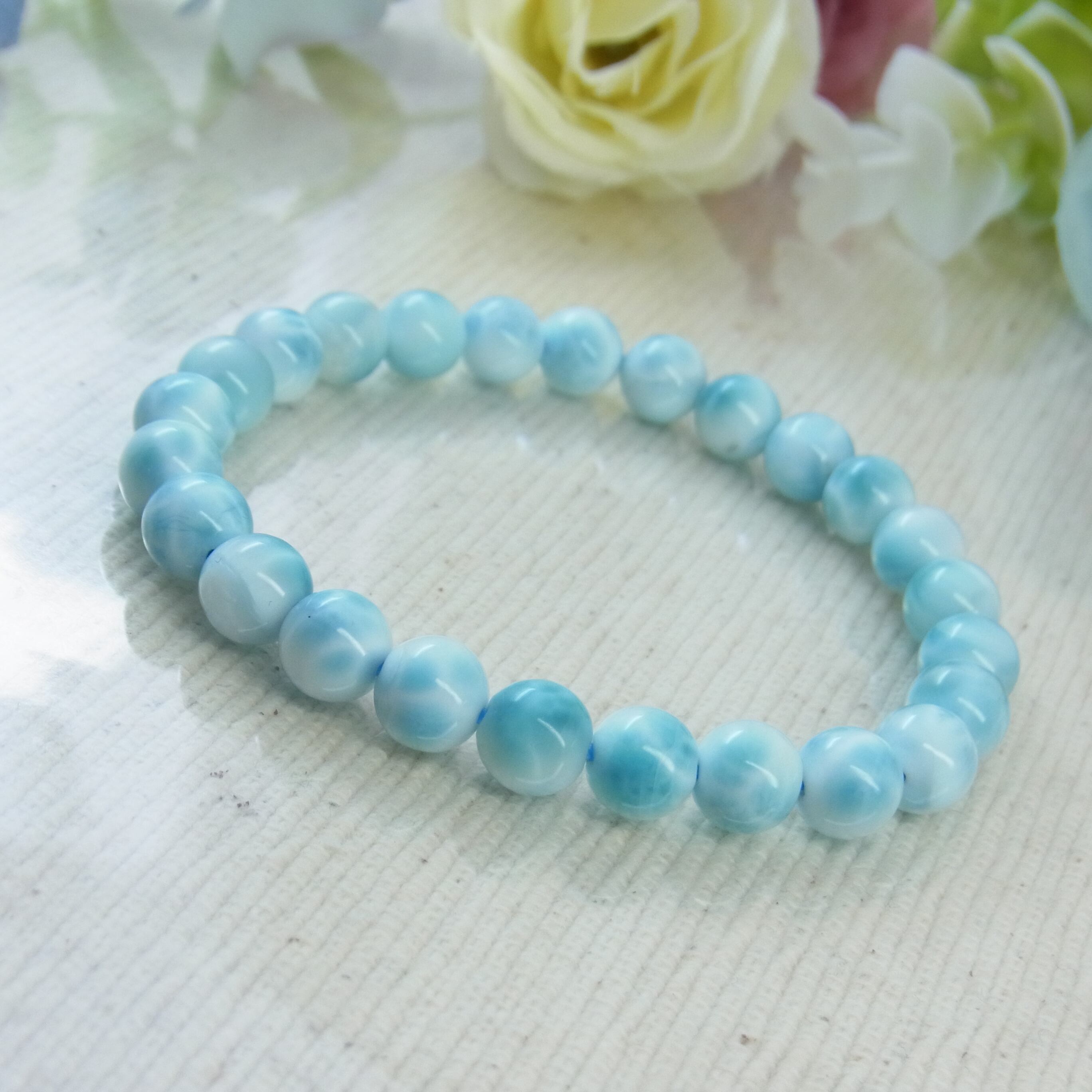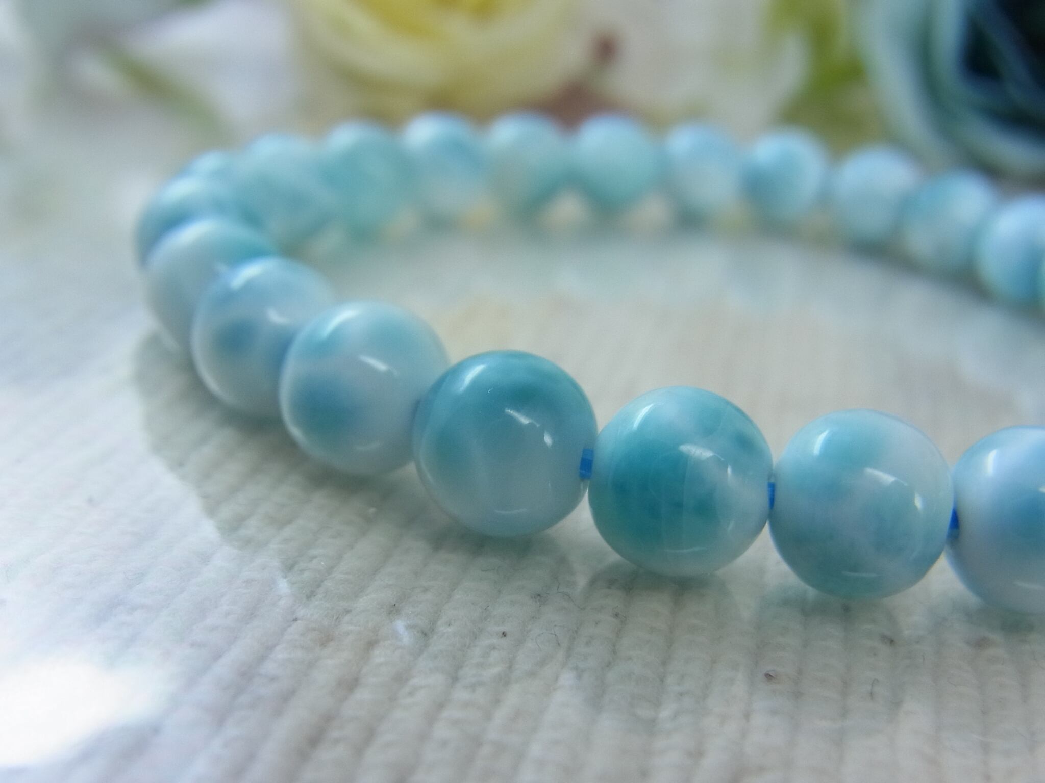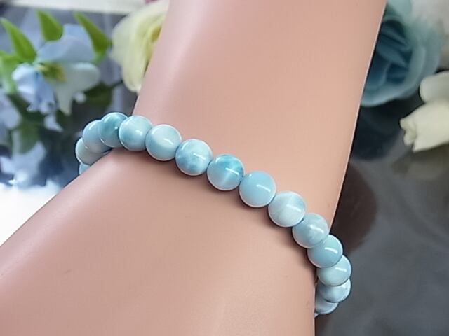 上品で肌なじみのよい、高品質ラリマーブレスレットです。