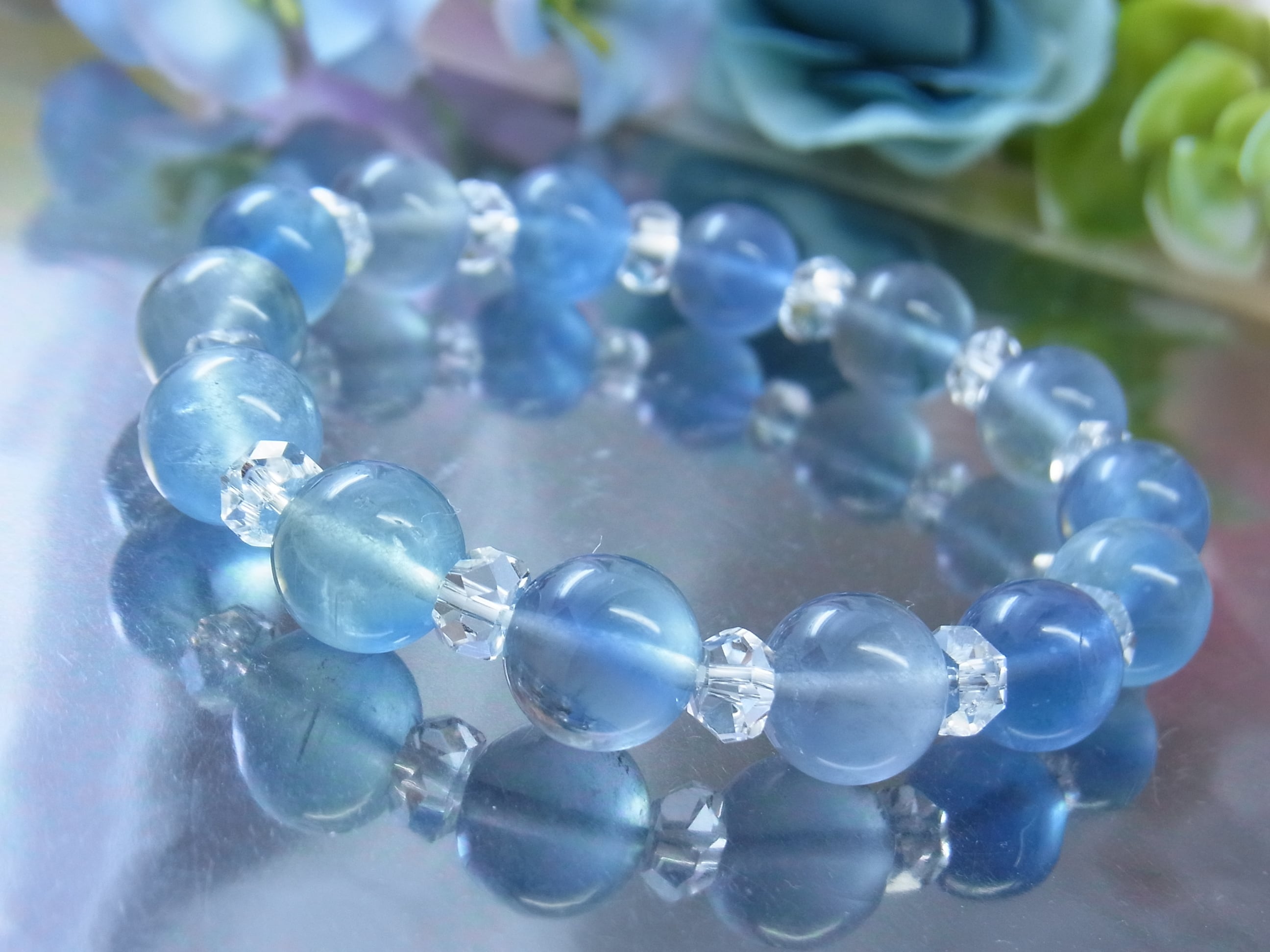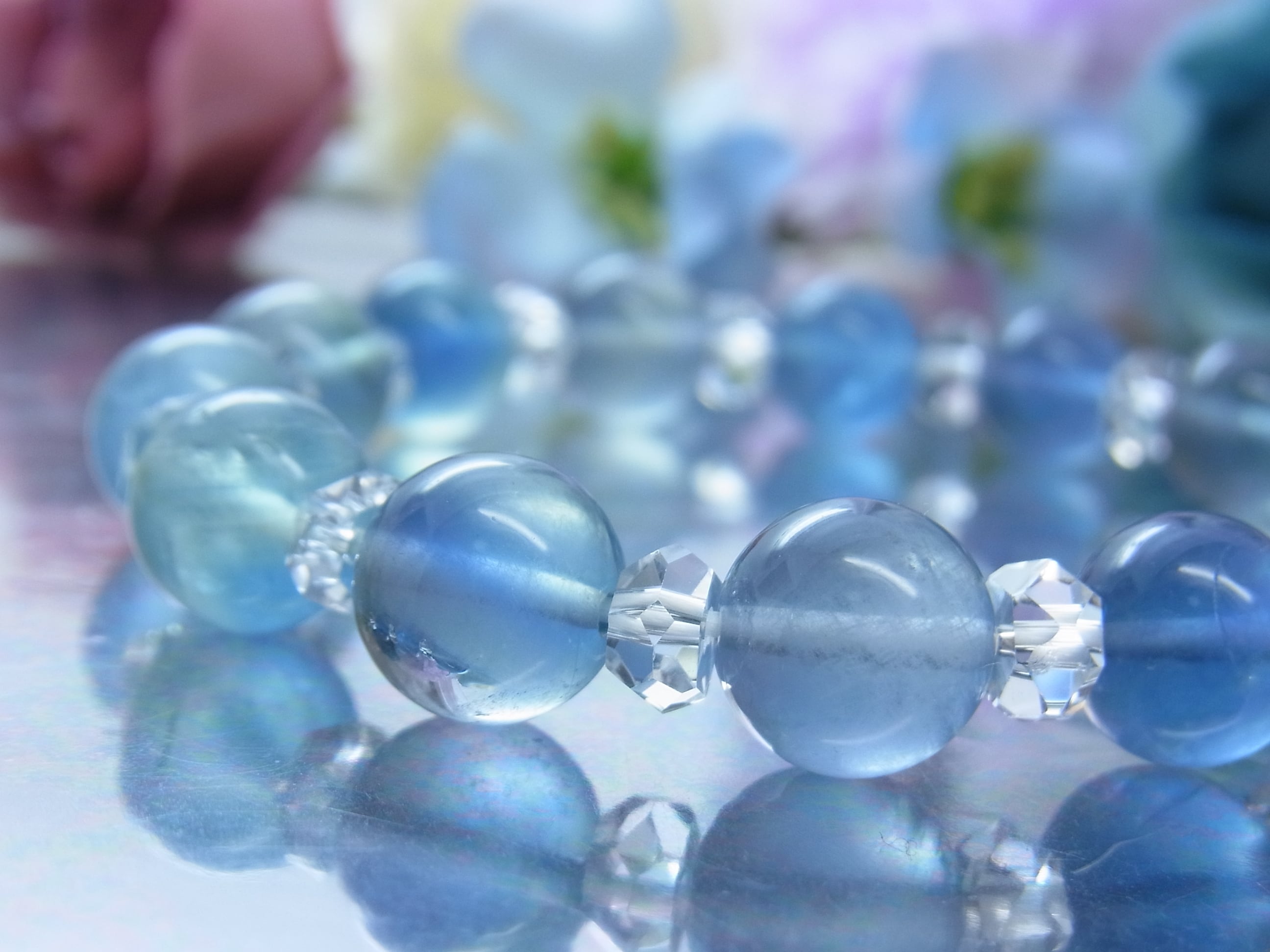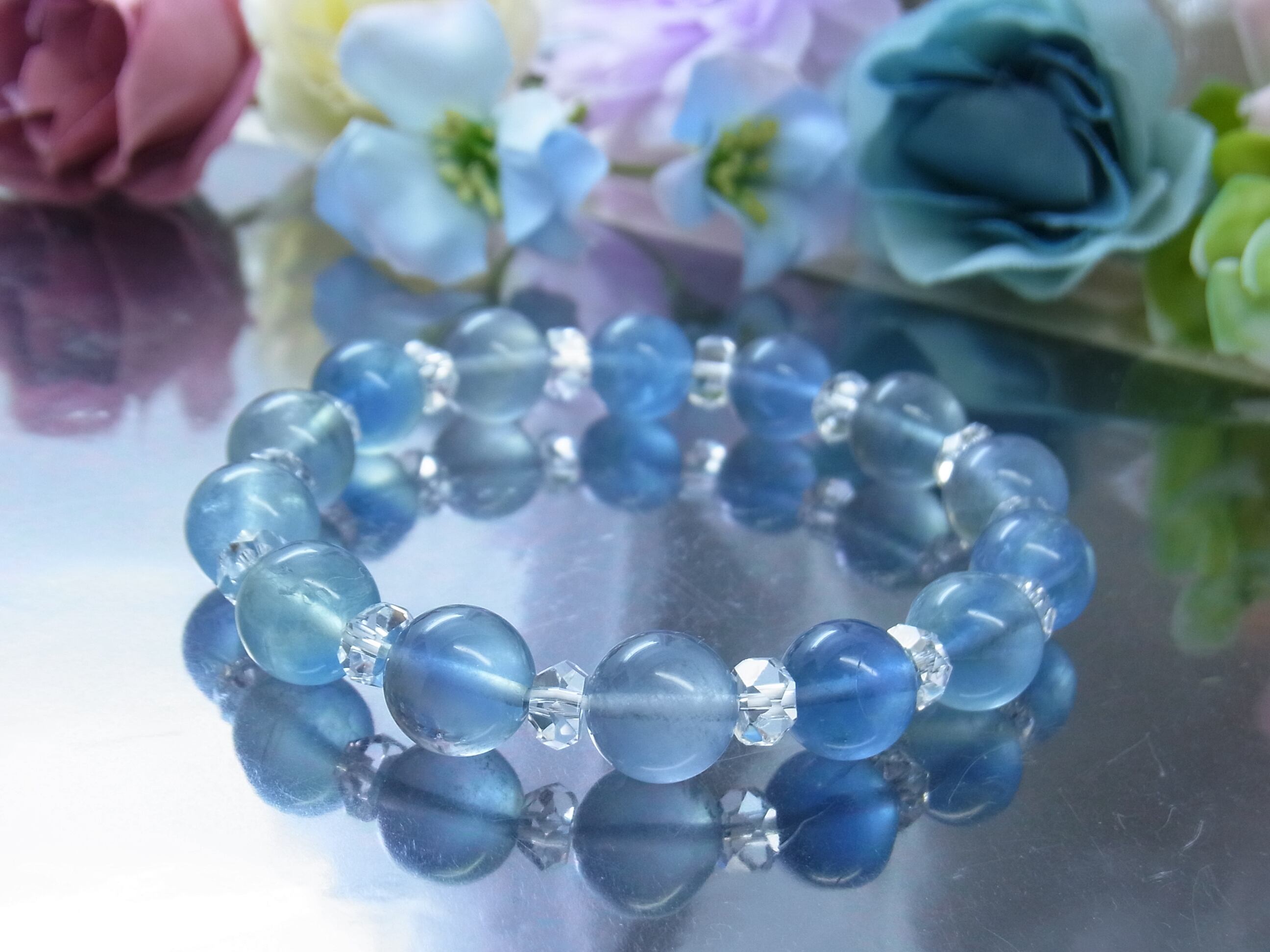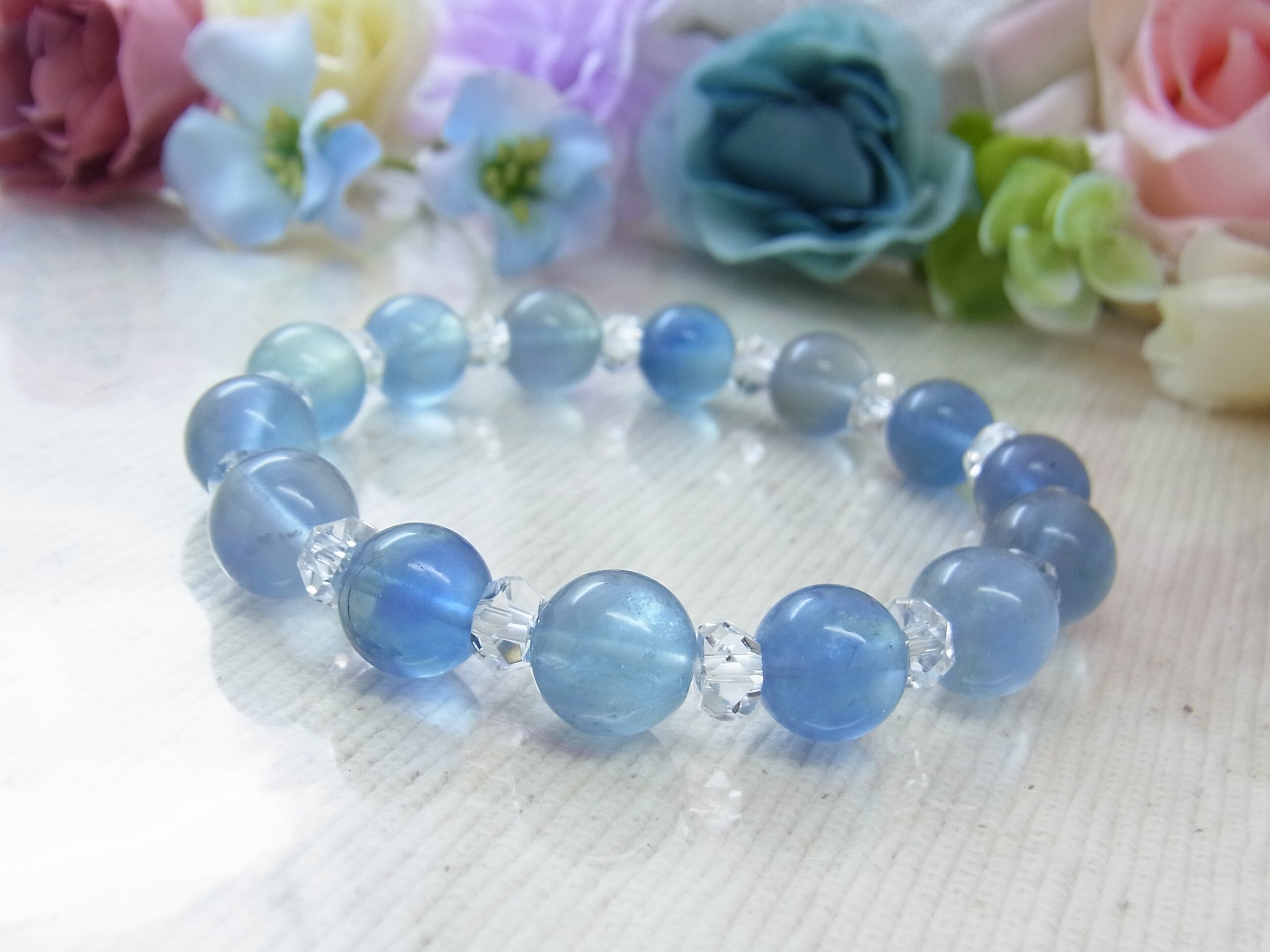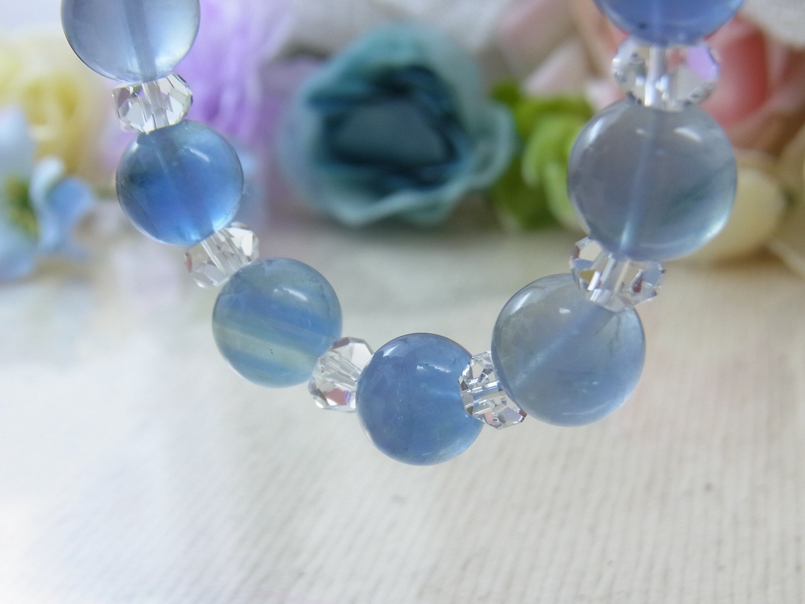#フローライト #ブルー #青 #ライトブルー #水色 #クリア #透明 #縞模様 #おしゃれ #神秘的 #グラデーション #バイカラー #美しい #爽やか #オールシーズン #普段使い #お出かけ #シック #新生活 #天然石ブレスレット #天然石アクセサリー #ストーン #ねこの夢 #LarimarMJ