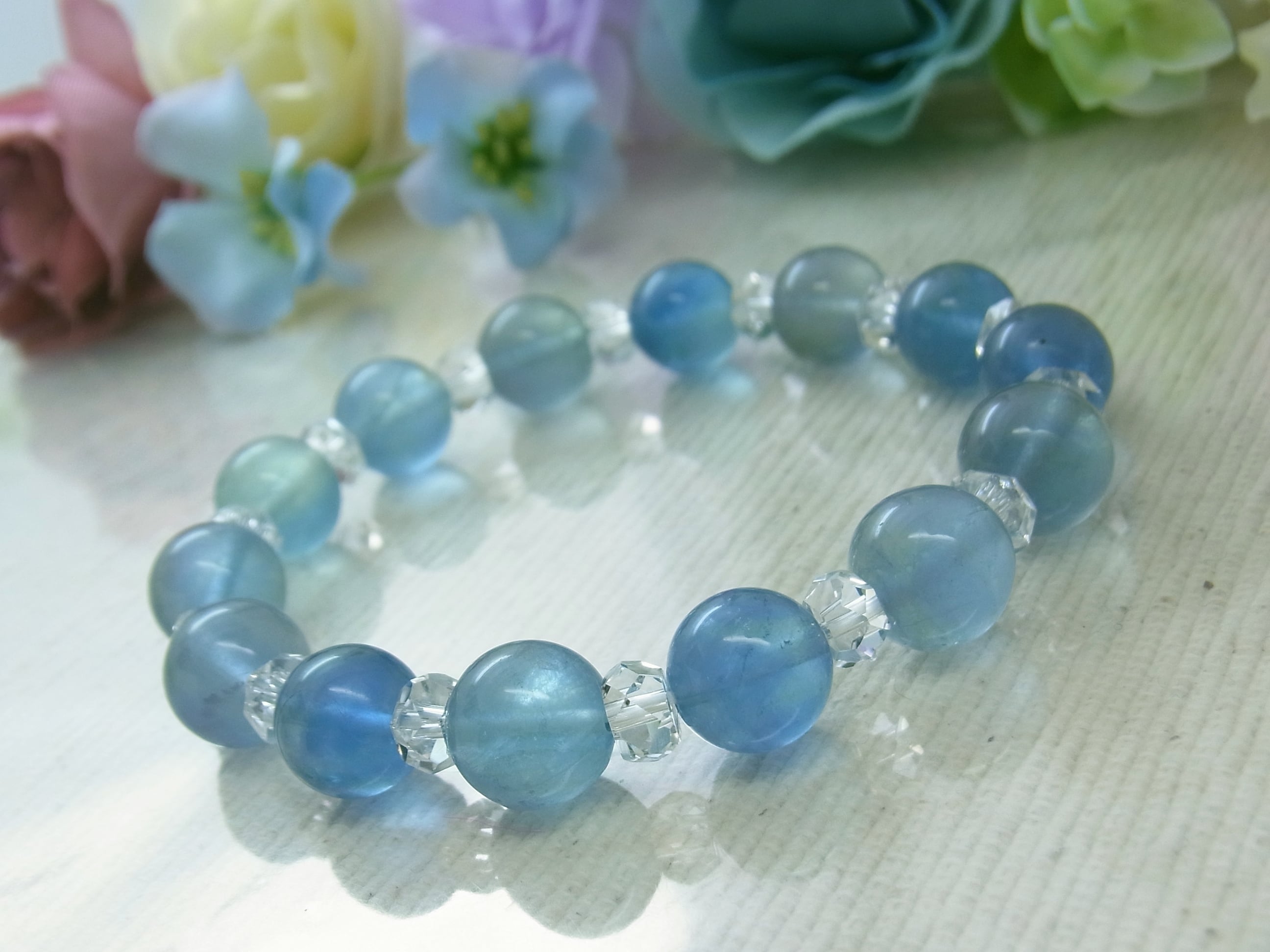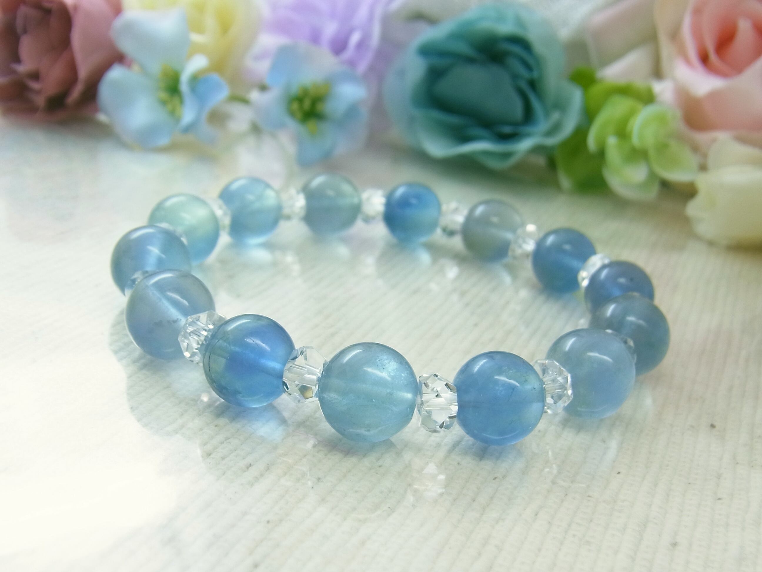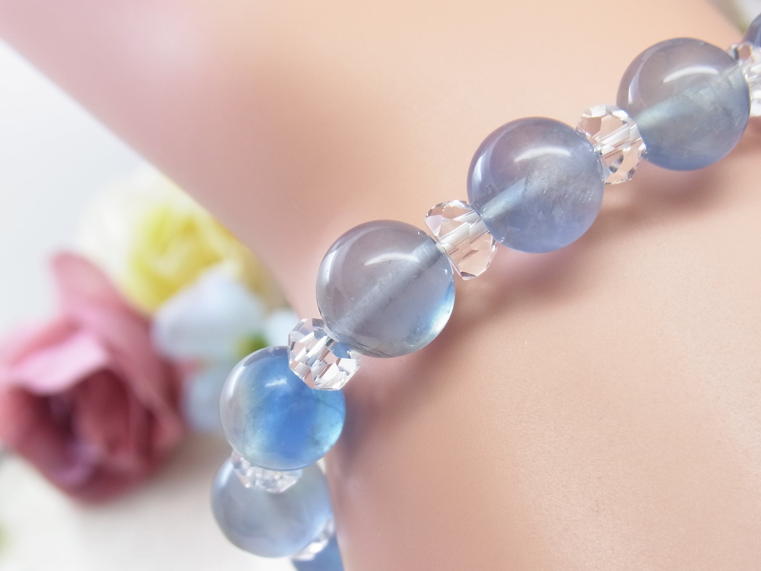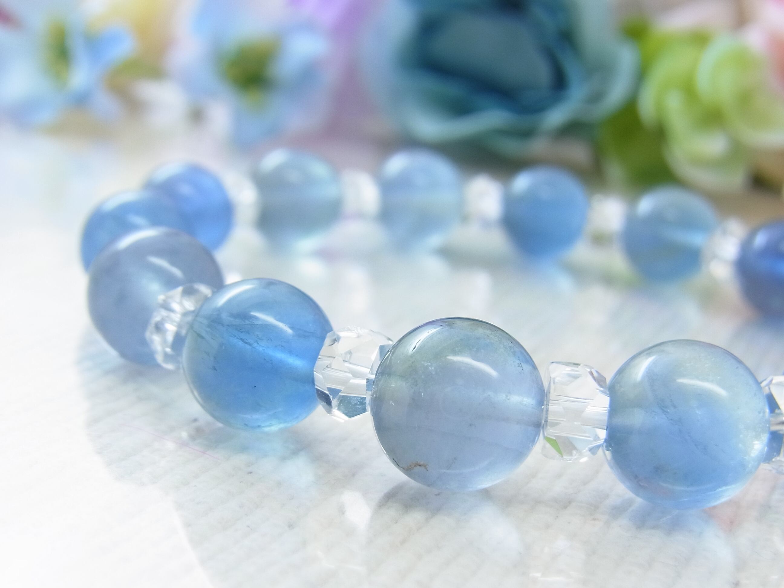 #フローライト #ブルー #青 #ライトブルー #水色 #クリア #透明 #縞模様 #おしゃれ #神秘的 #グラデーション #バイカラー #美しい #爽やか #オールシーズン #普段使い #お出かけ #シック #新生活 #天然石ブレスレット #天然石アクセサリー #ストーン #ねこの夢 #LarimarMJ