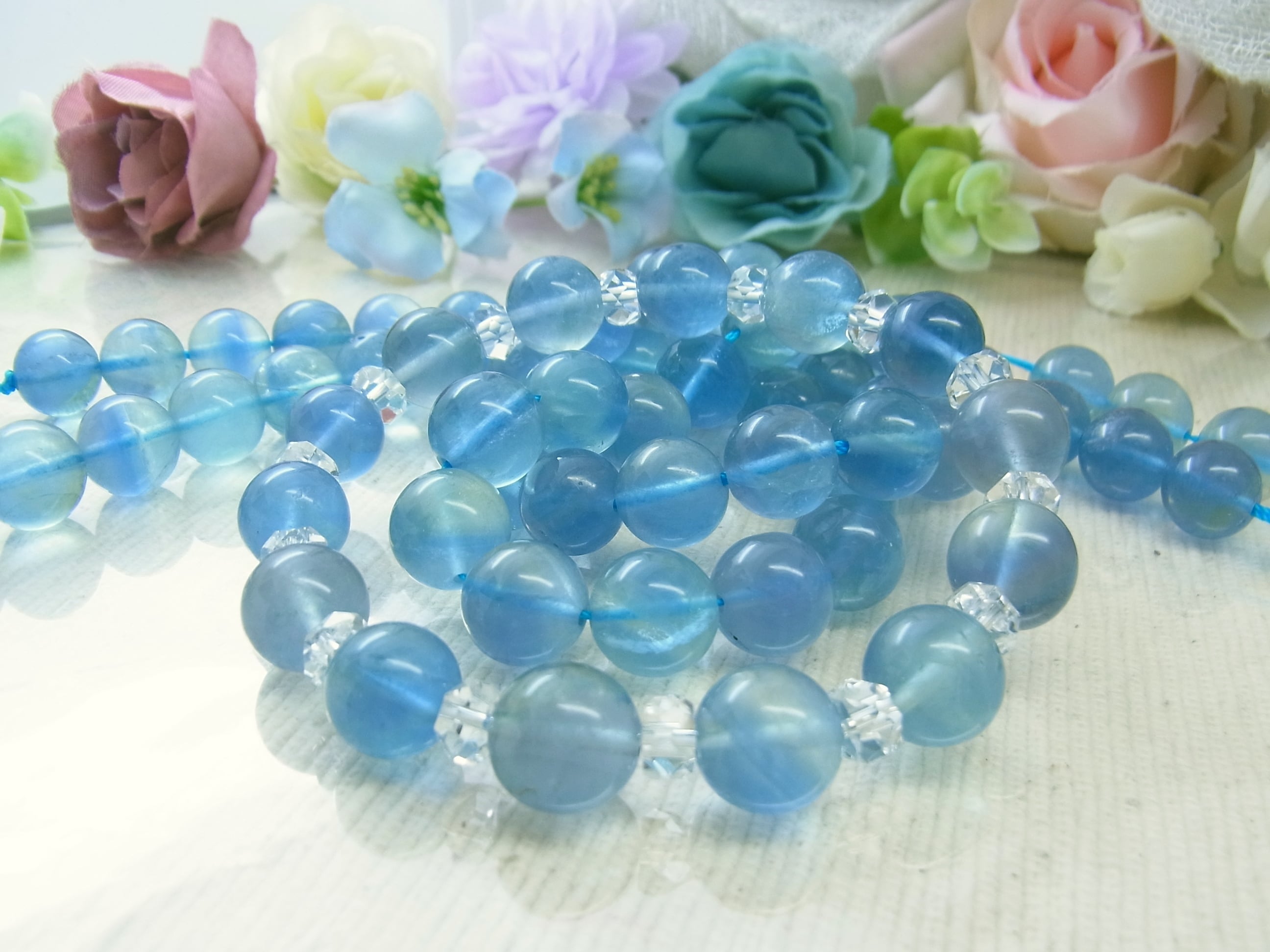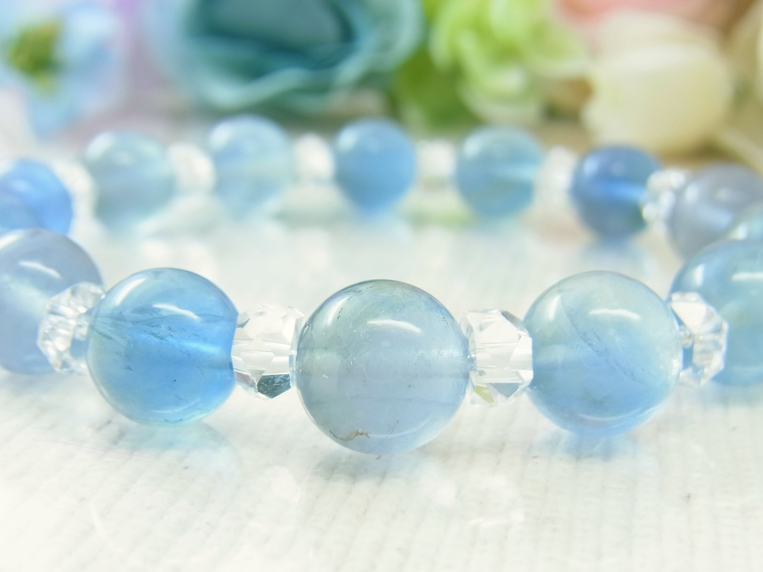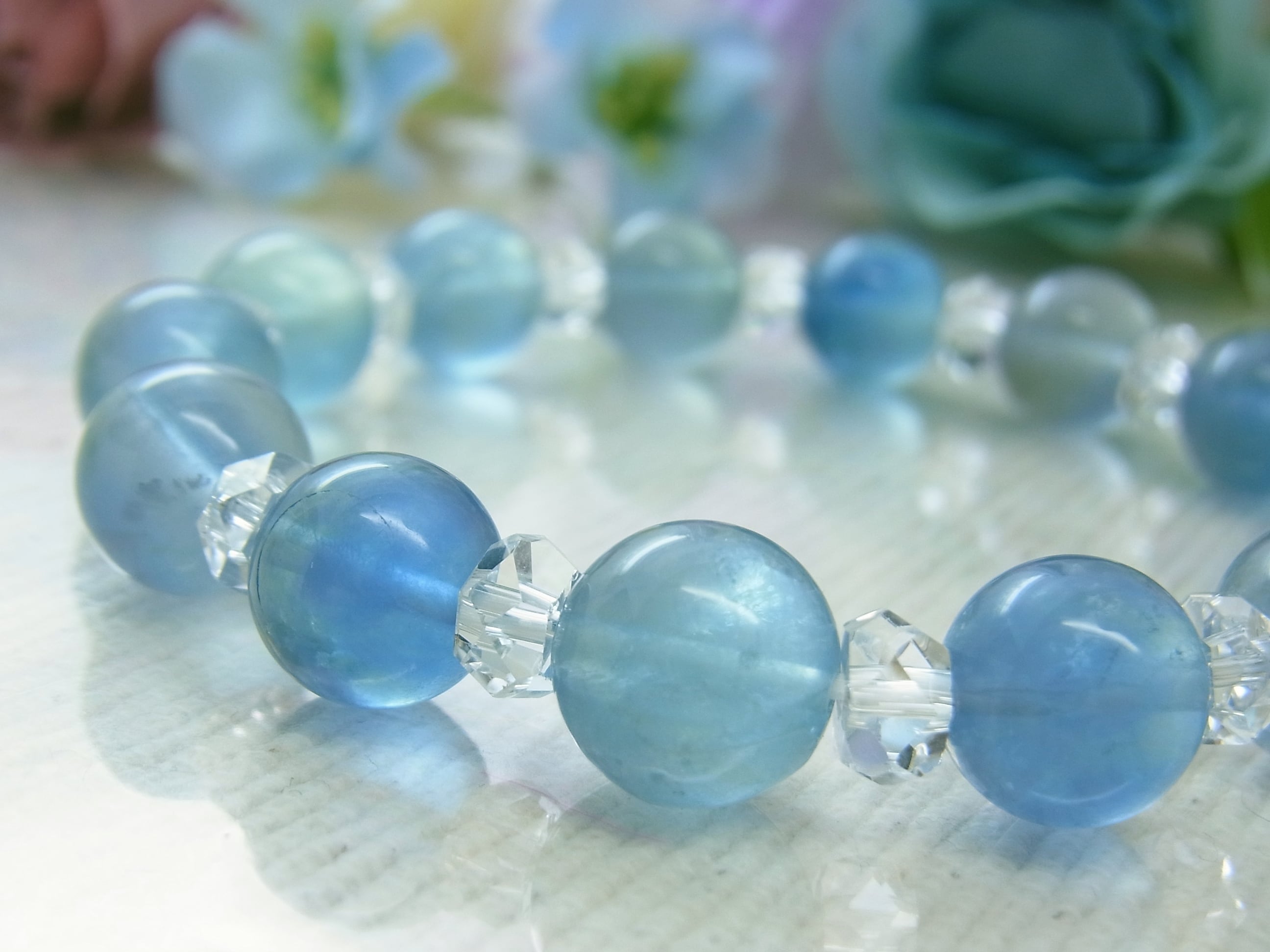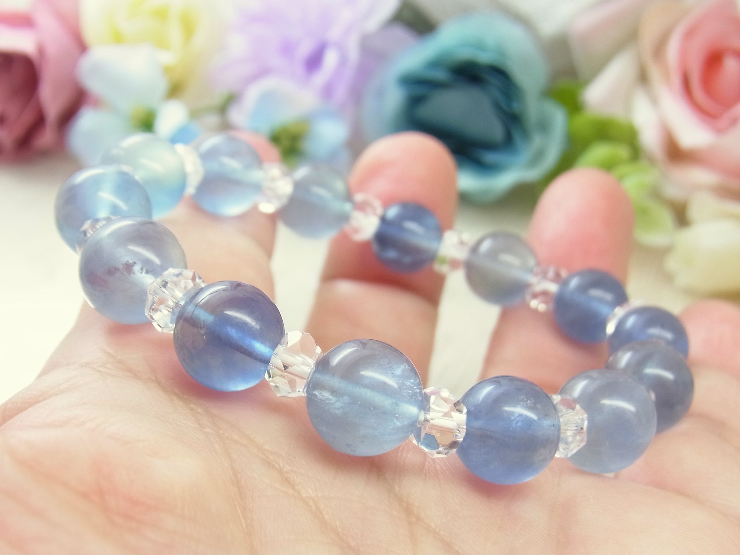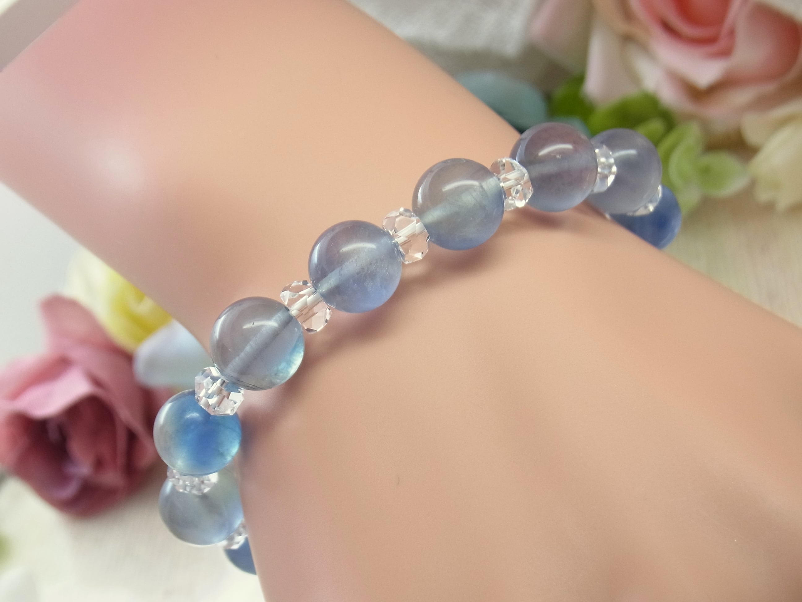 #フローライト #ブルー #青 #ライトブルー #水色 #クリア #透明 #縞模様 #おしゃれ #神秘的 #グラデーション #バイカラー #美しい #爽やか #オールシーズン #普段使い #お出かけ #シック #新生活 #天然石ブレスレット #天然石アクセサリー #ストーン #ねこの夢 #LarimarMJ