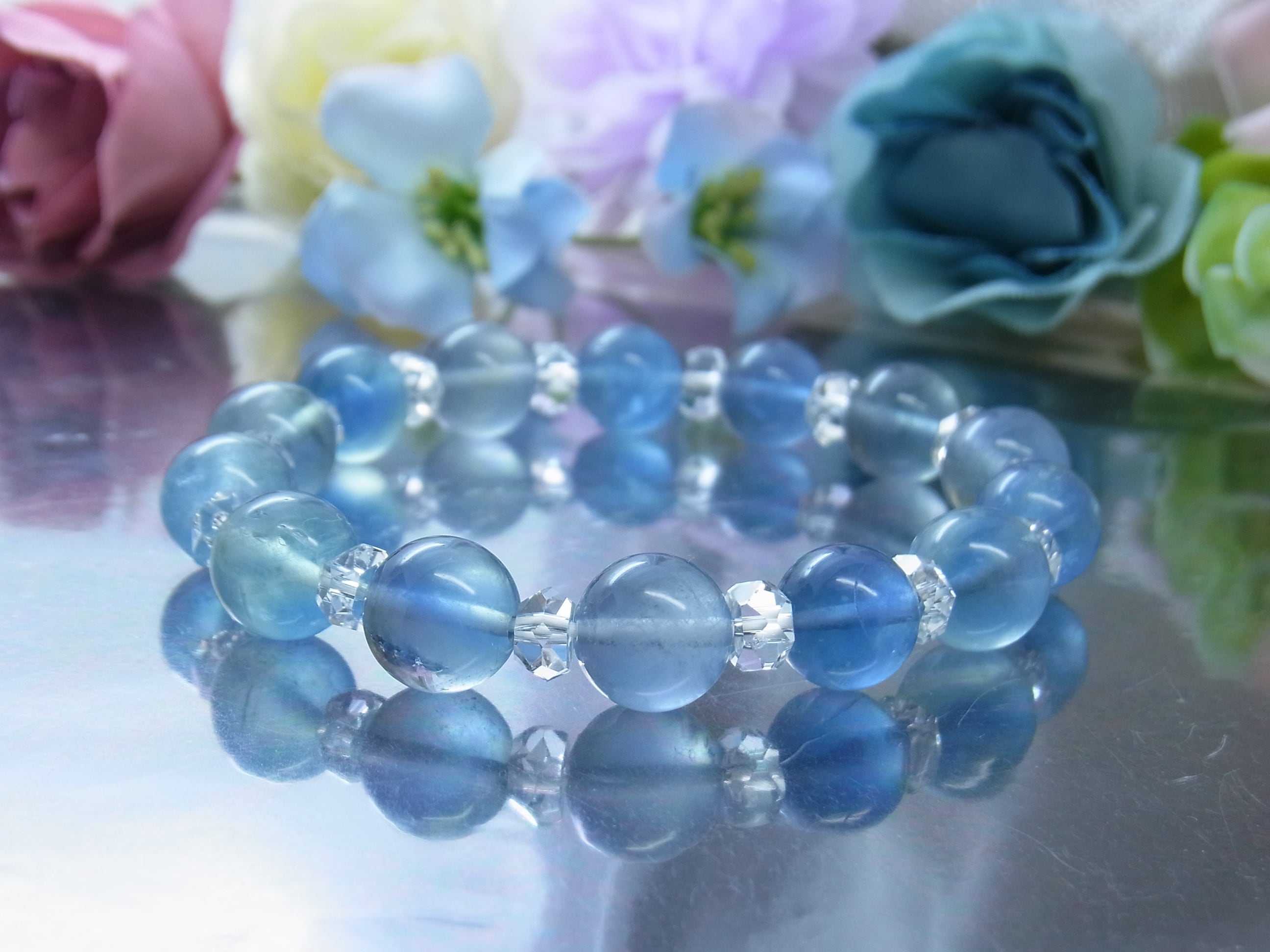 クリスタルを組み合わせた、輝きが素敵なブレスレットのご案内です。