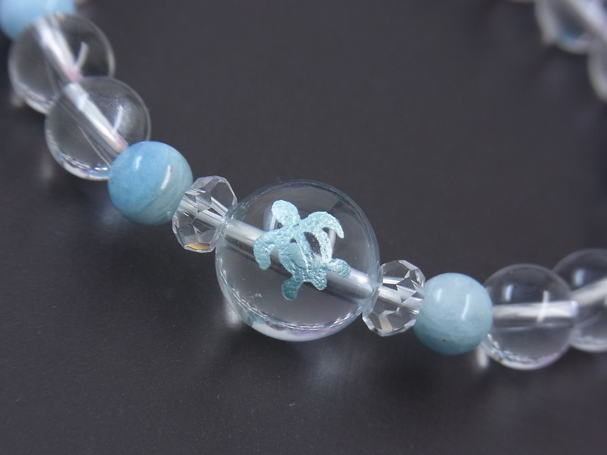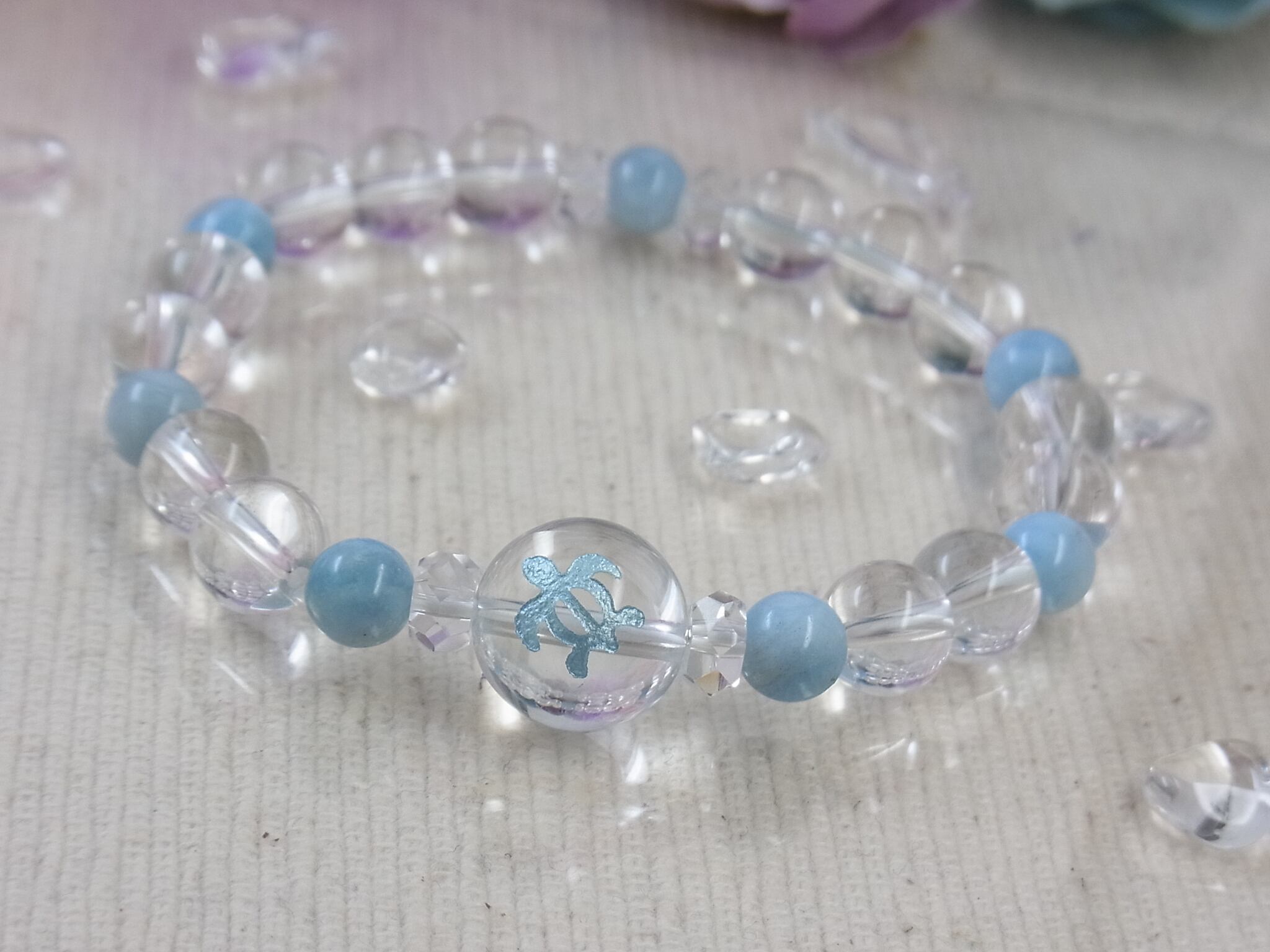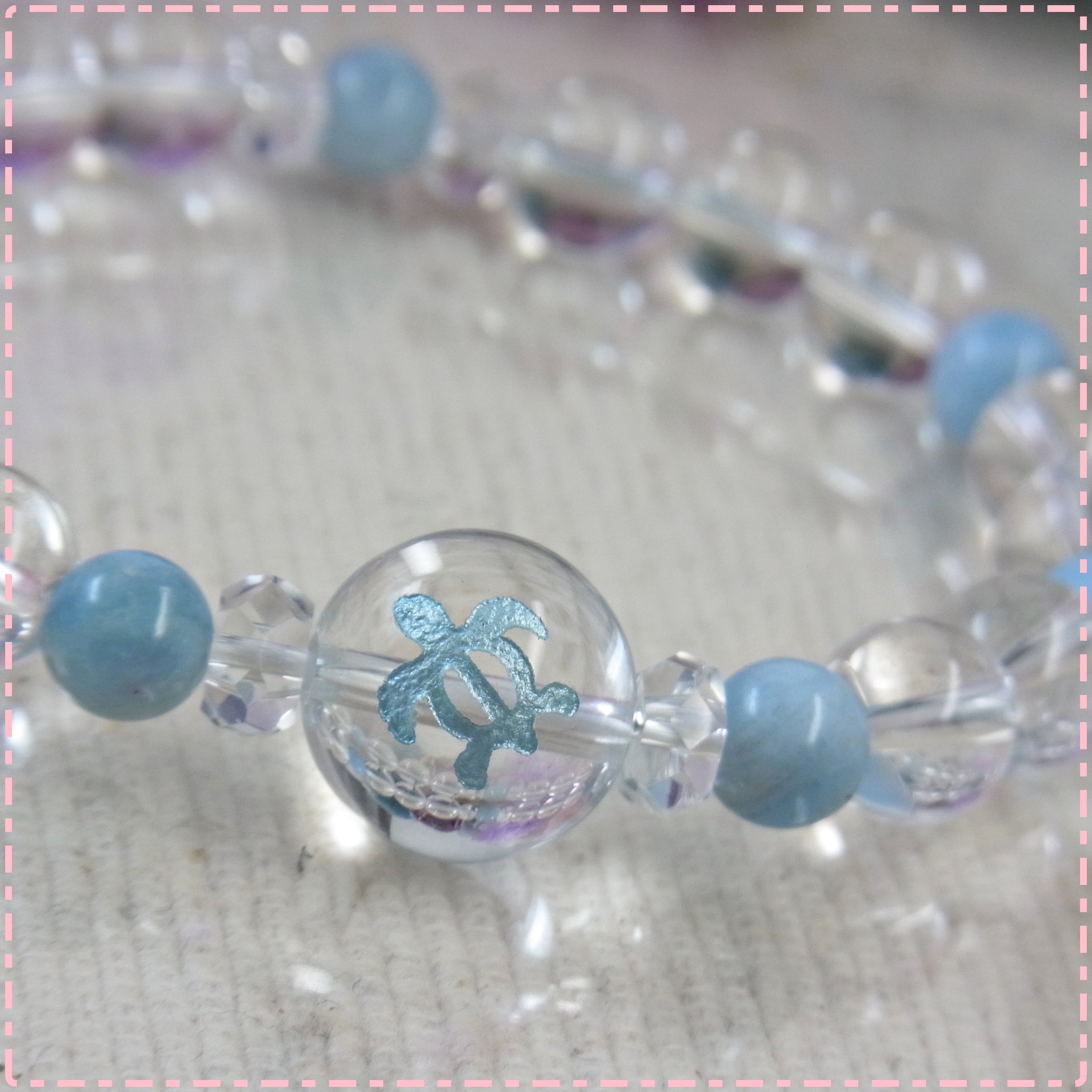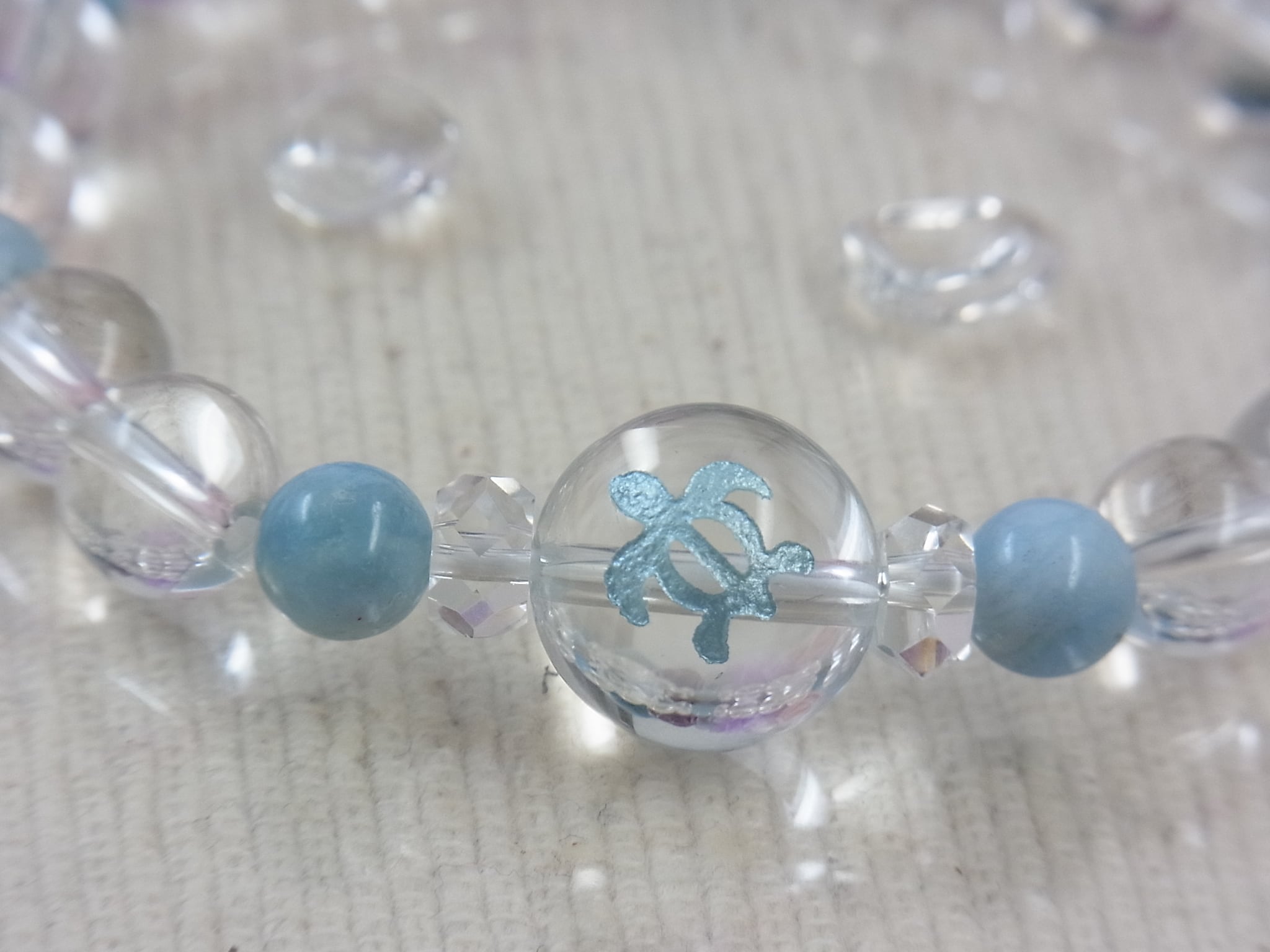 ◆ホヌ水晶と海石 アクアマリン、天然水晶を組み合わせた、