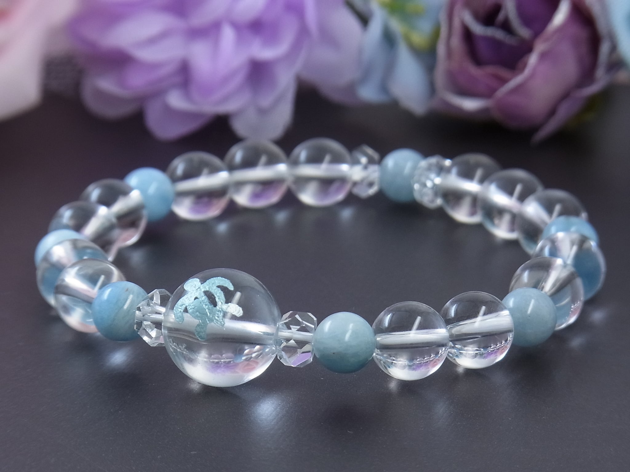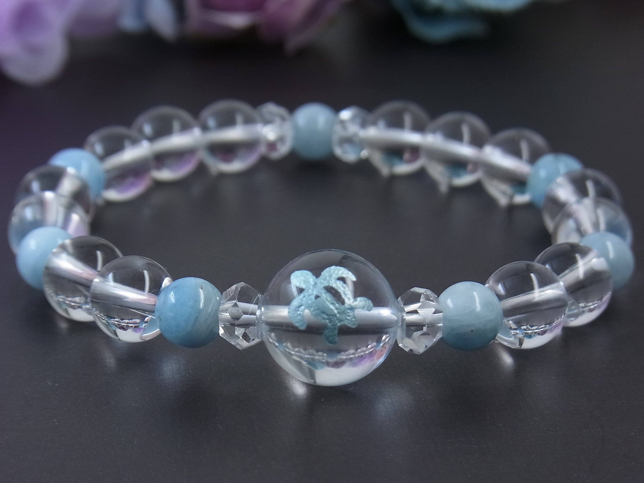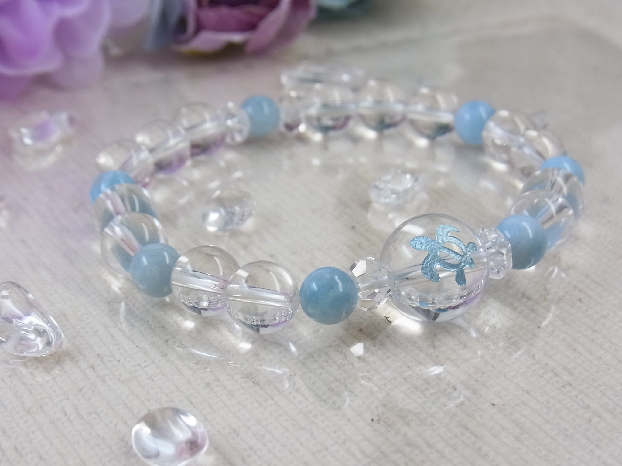 ◆ホヌ水晶と海石 アクアマリン、天然水晶を組み合わせた、