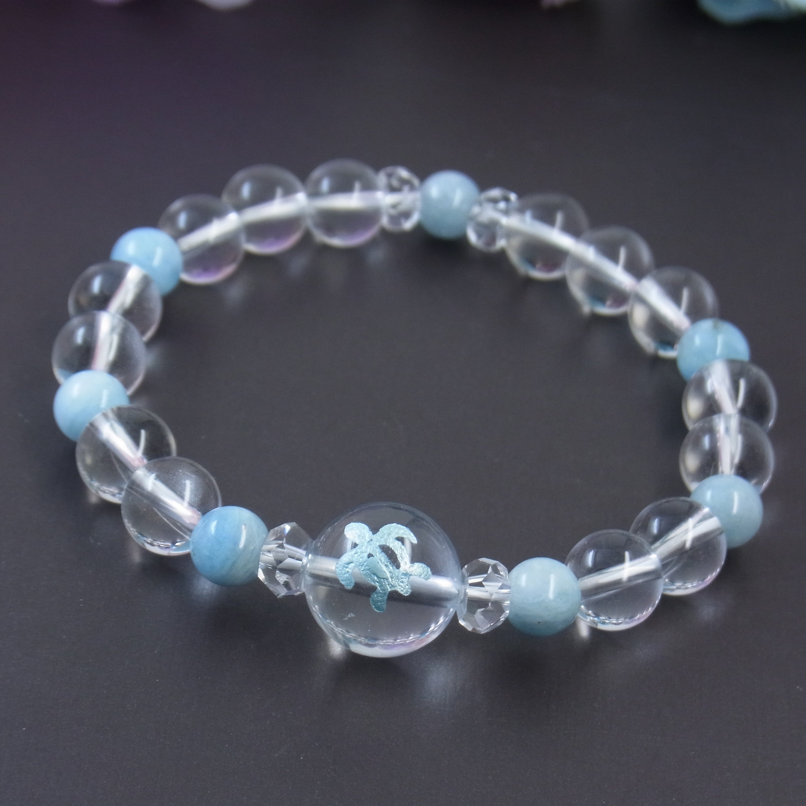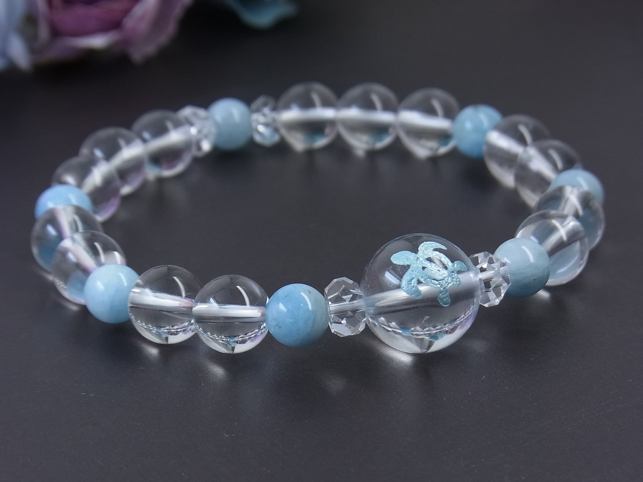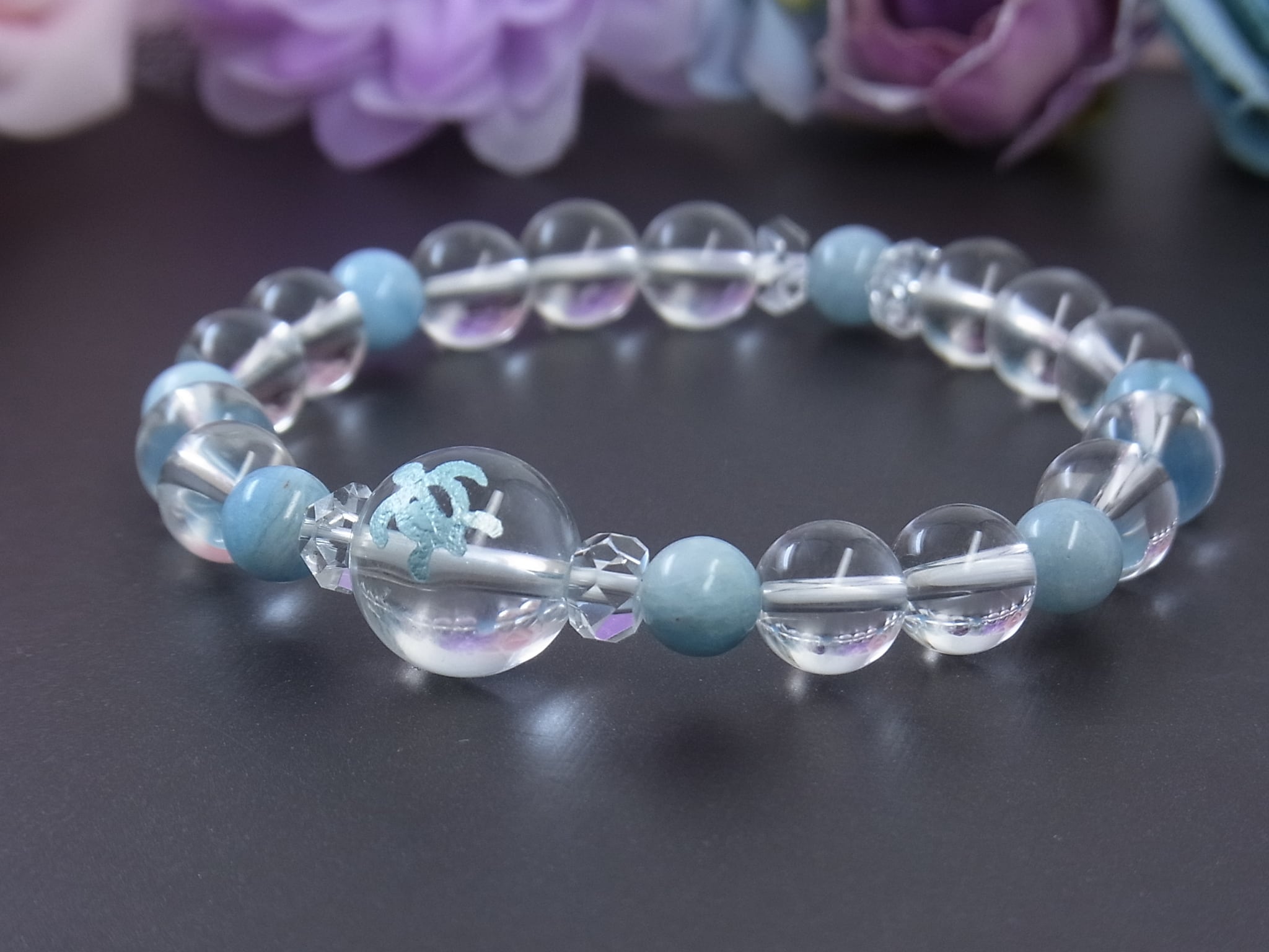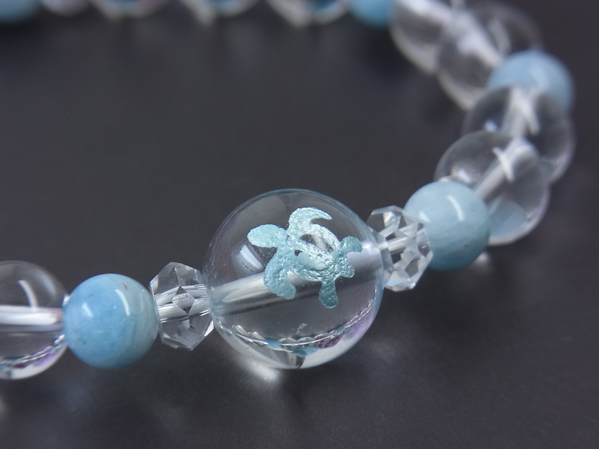 ◆ホヌ水晶と海石 アクアマリン、天然水晶を組み合わせた、